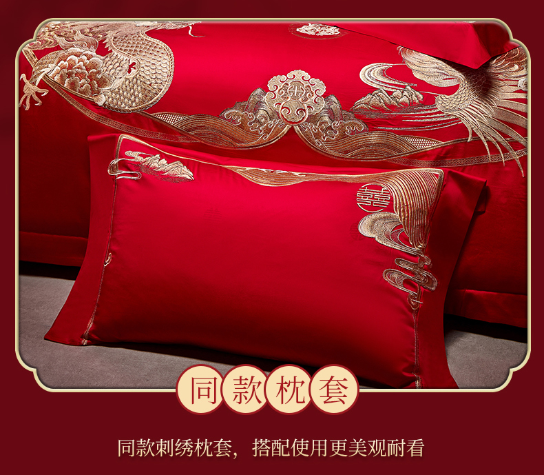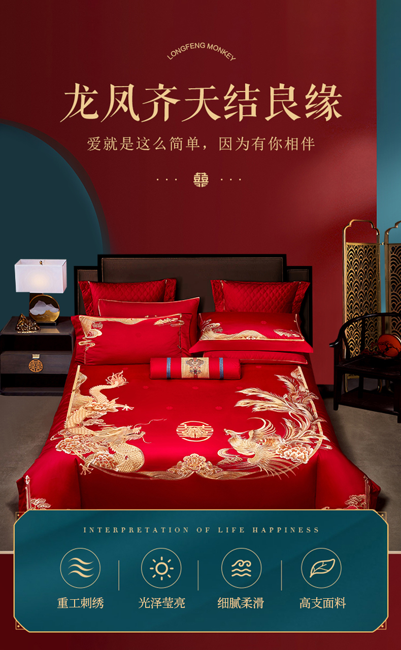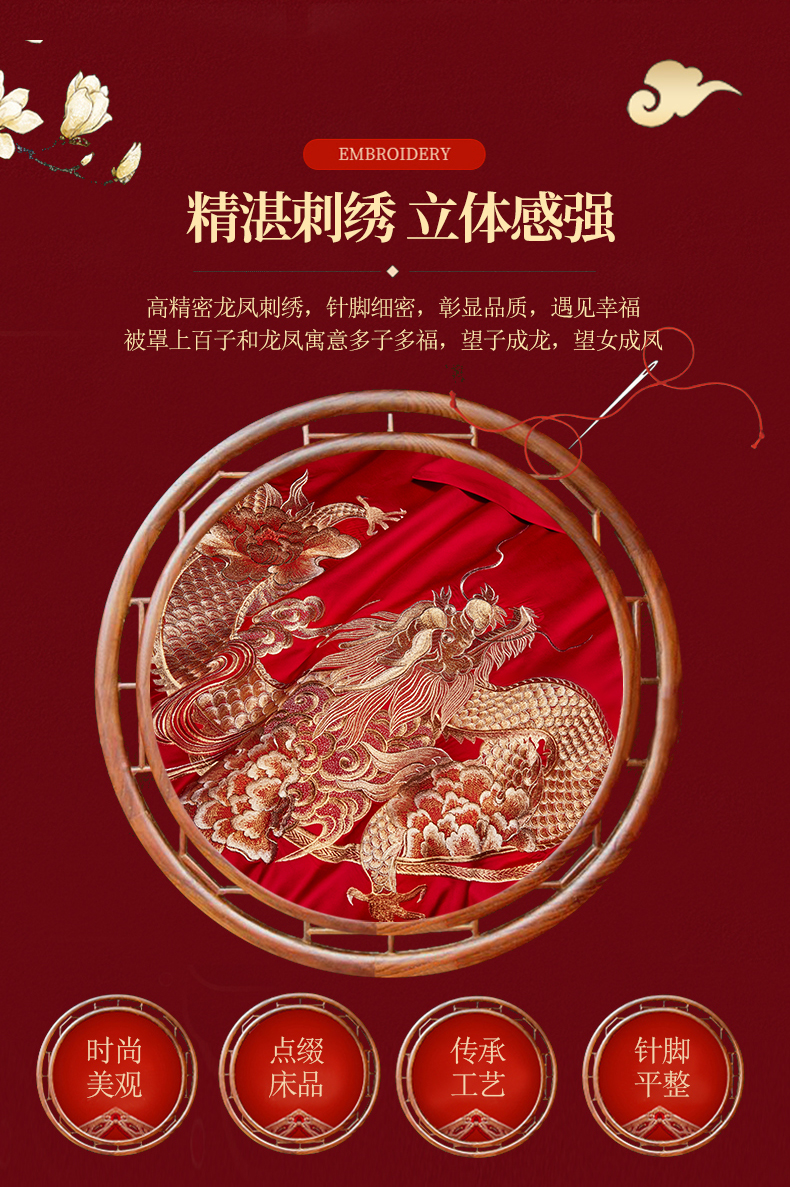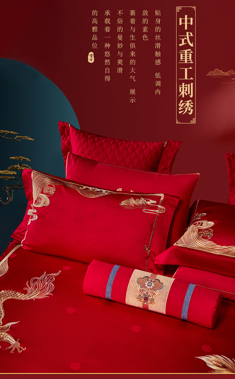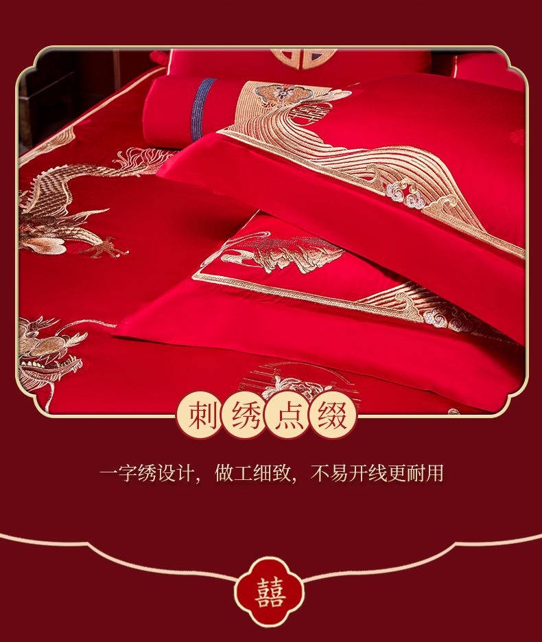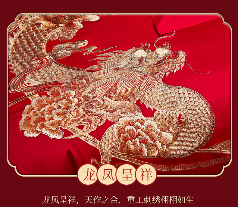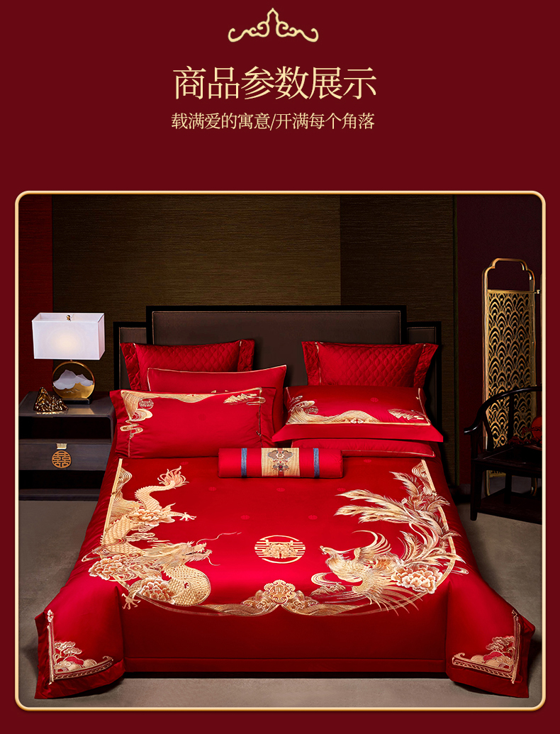 当前位置: 91家纺网 > 商品网购 > 床品套件 > 四件套 > 长绒棉四件套 > 2025新款长绒棉长绒棉贡缎提花款新中式古典韵味精美刺绣婚庆四件套多件套 金龙玉凤