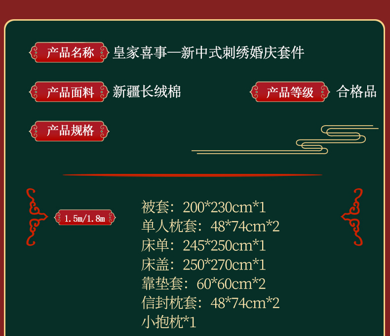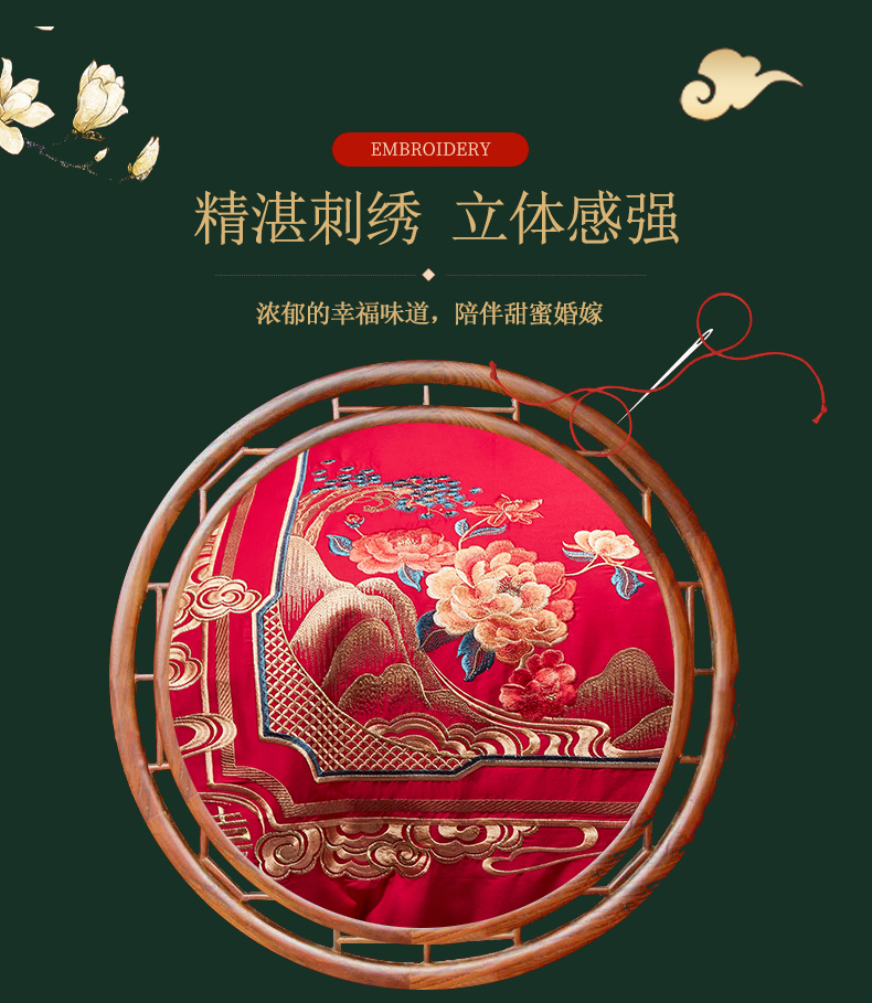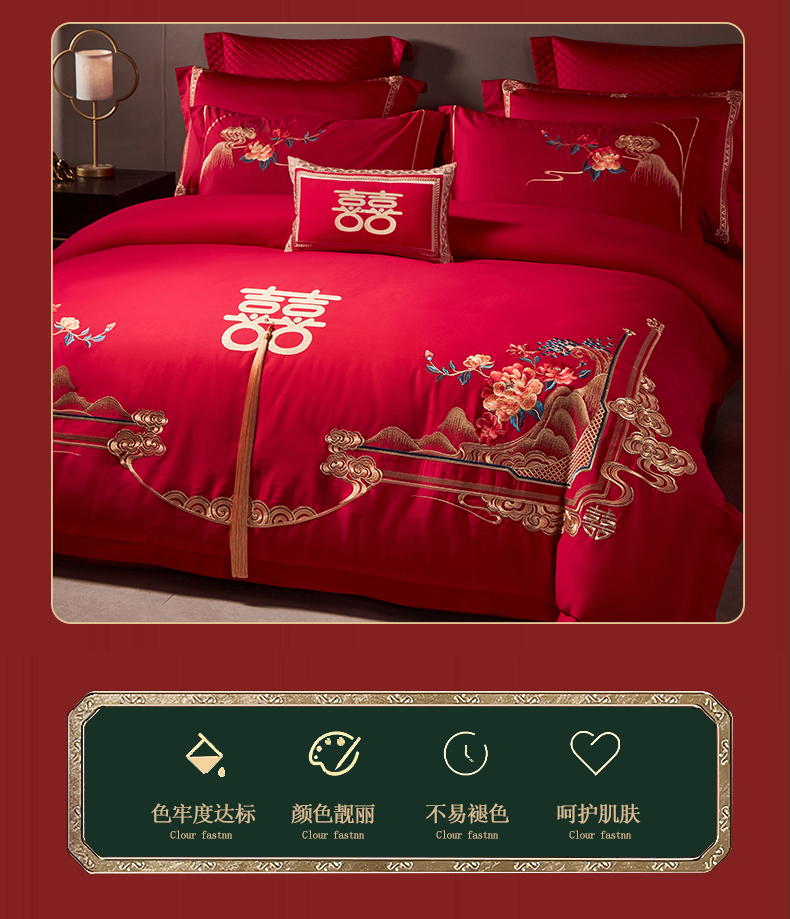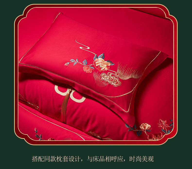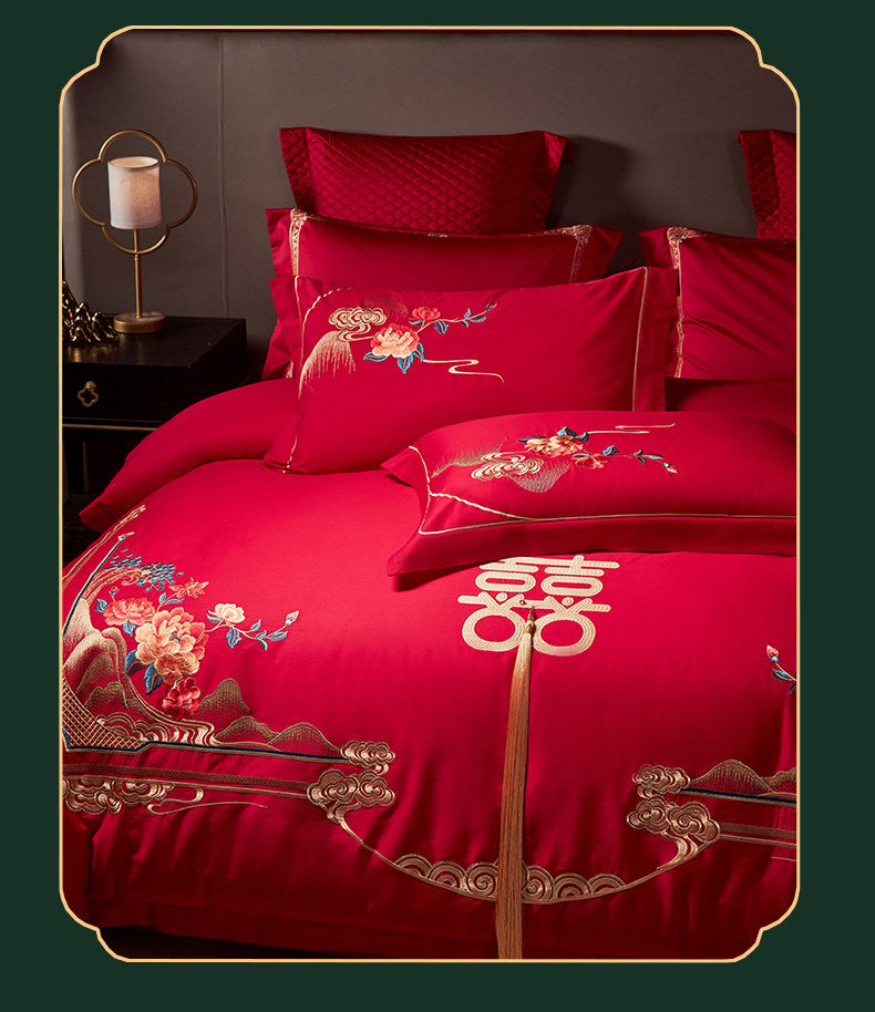 当前位置: 91家纺网 > 商品网购 > 床品套件 > 四件套 > 全棉普通四件套 > 2025新款40s全棉长绒棉新中式刺绣婚庆四件套多件套 皇家喜事