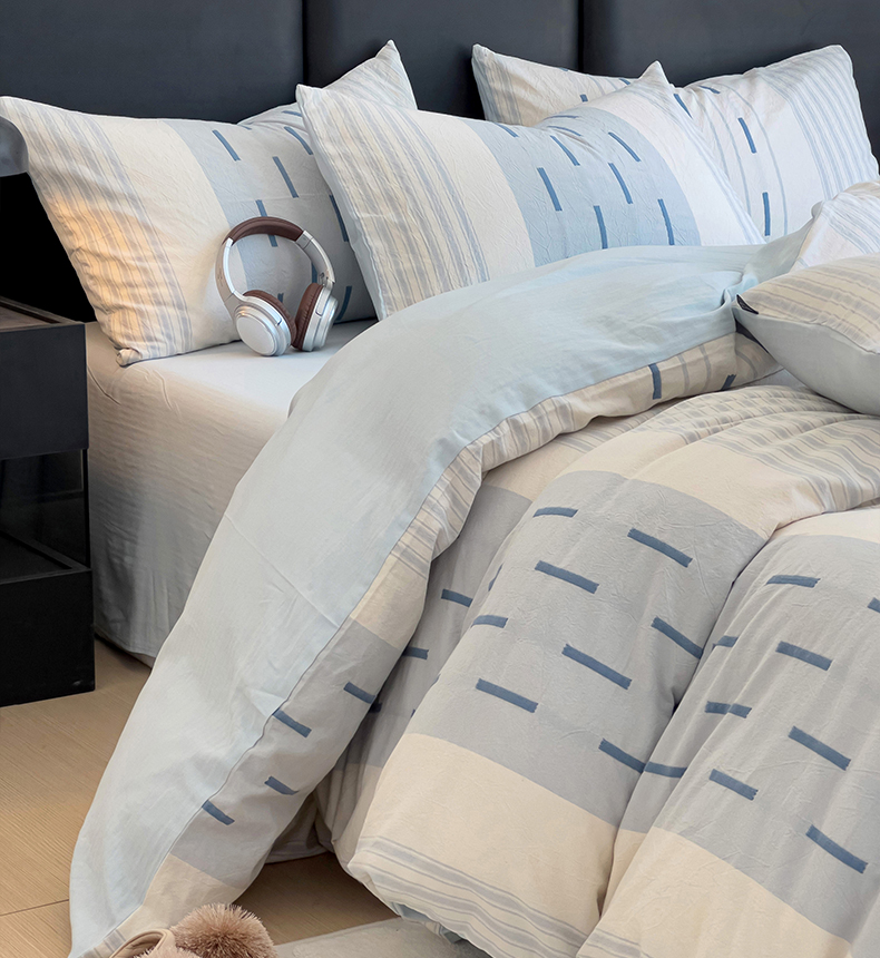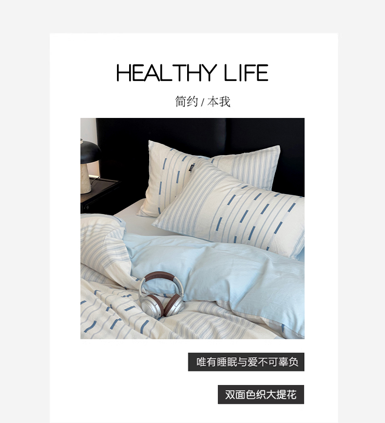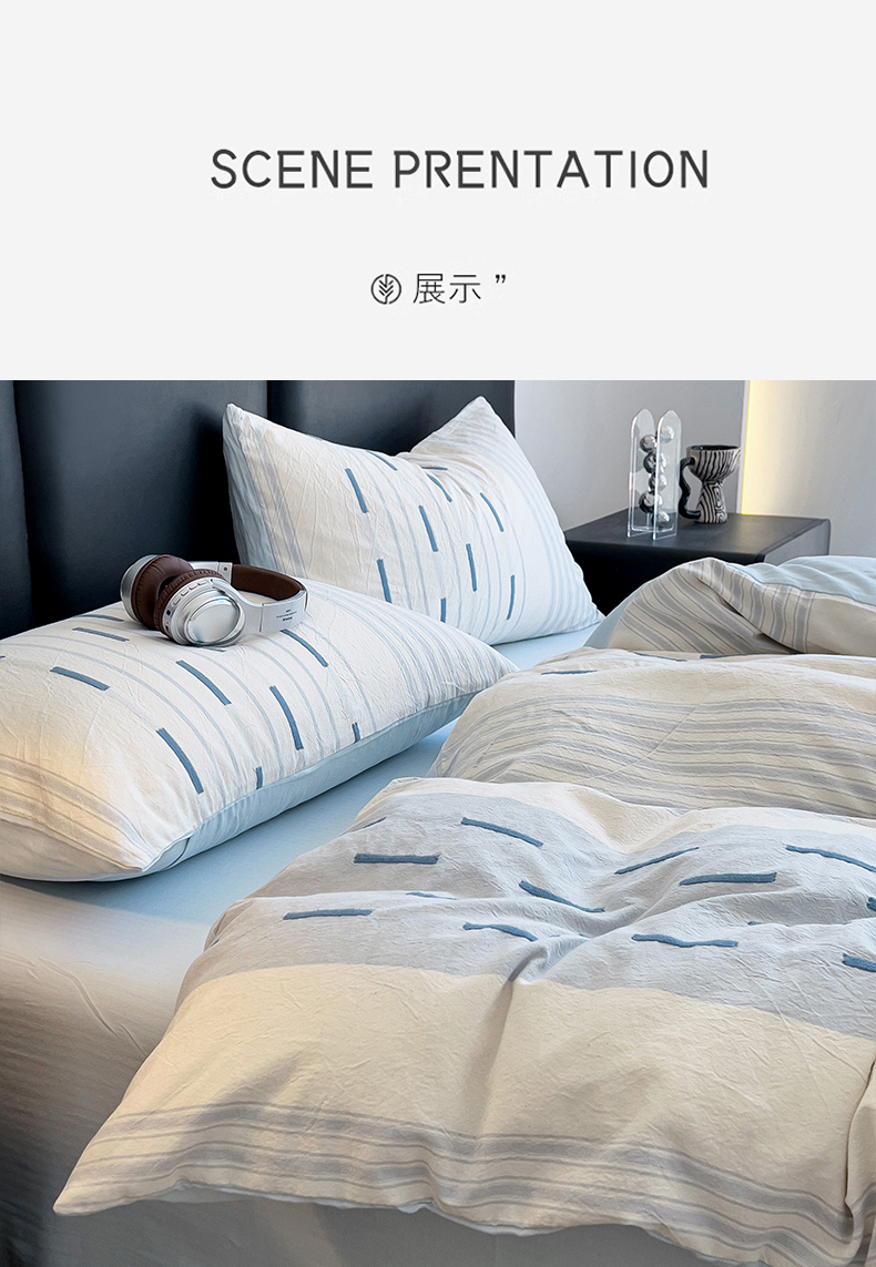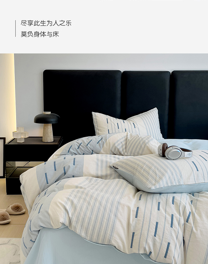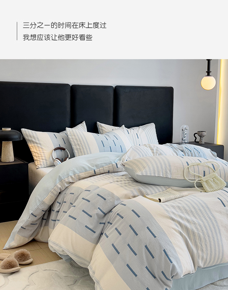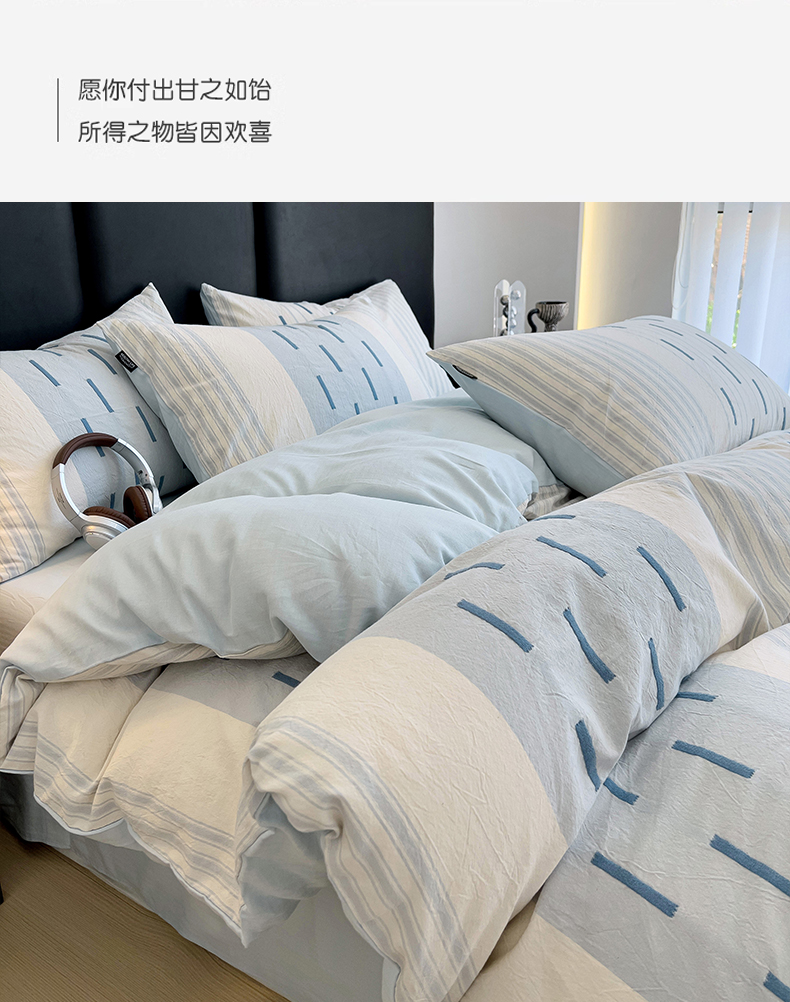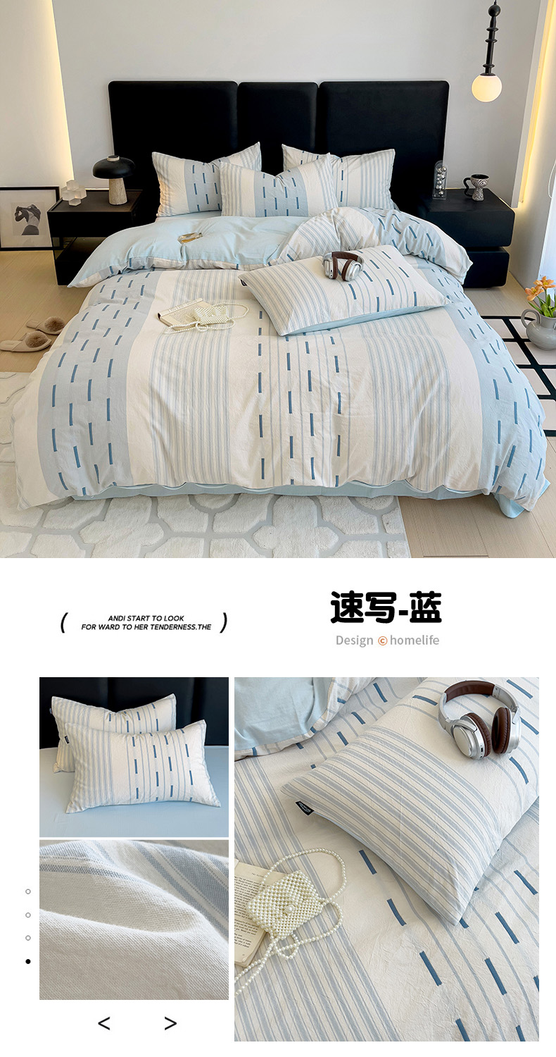 商品名称:2024新款双面色织大提花纯棉四件套--速写系列 速写-蓝