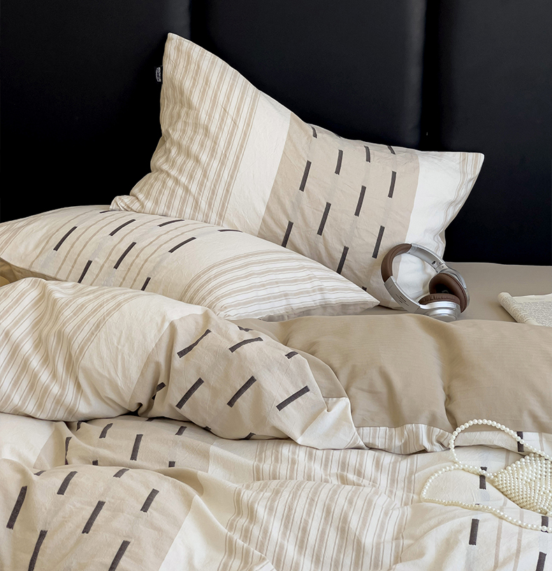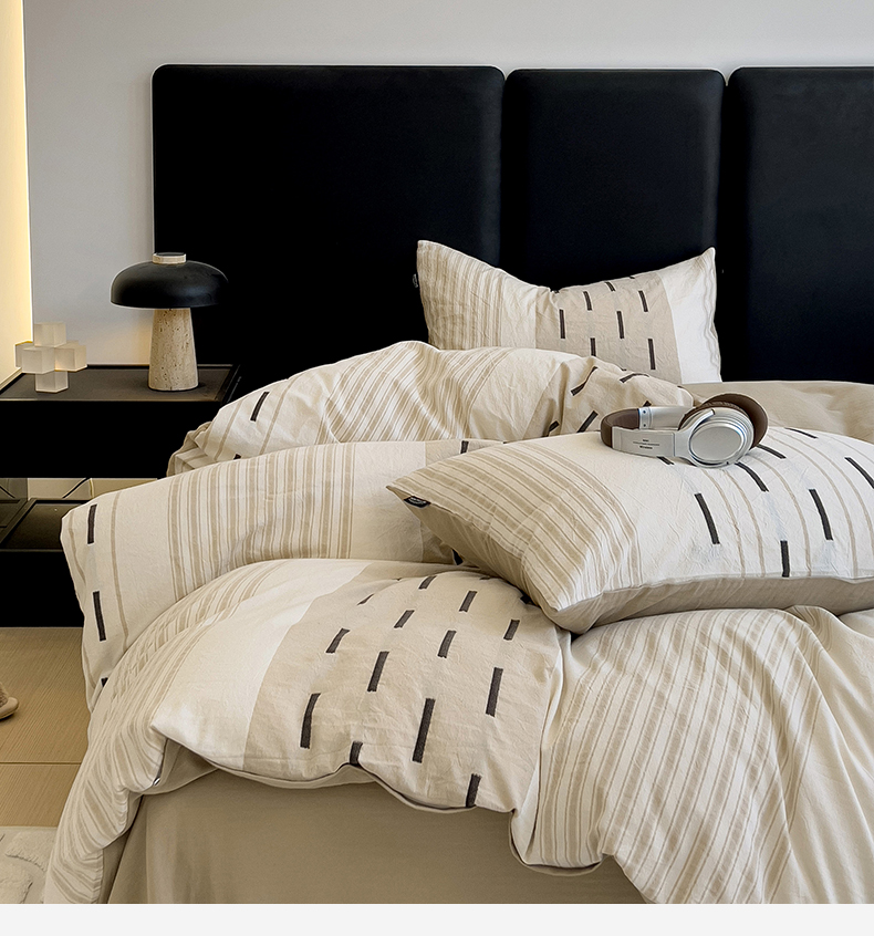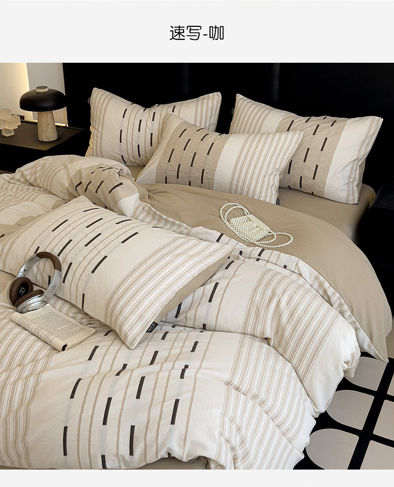 (总)静家居-简约原创家纺 2025新款A类色织水洗棉贝壳针系列四件套,北欧-黑格,北欧-咖格,北欧-绿格