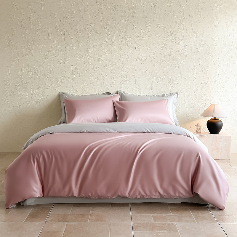 Mr.pig猪先生水洗棉 2024新品A类100全棉高支高密贡缎新疆长绒棉四件套纯棉床单被套学生宿舍三件套枕套床笠床上用品 清新粉+藕灰