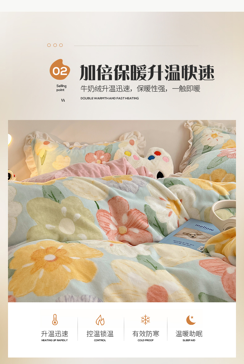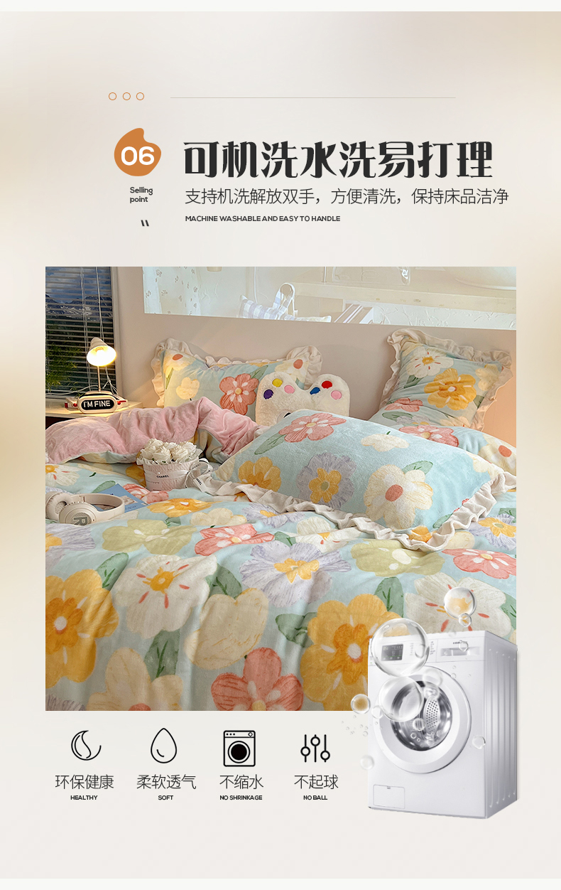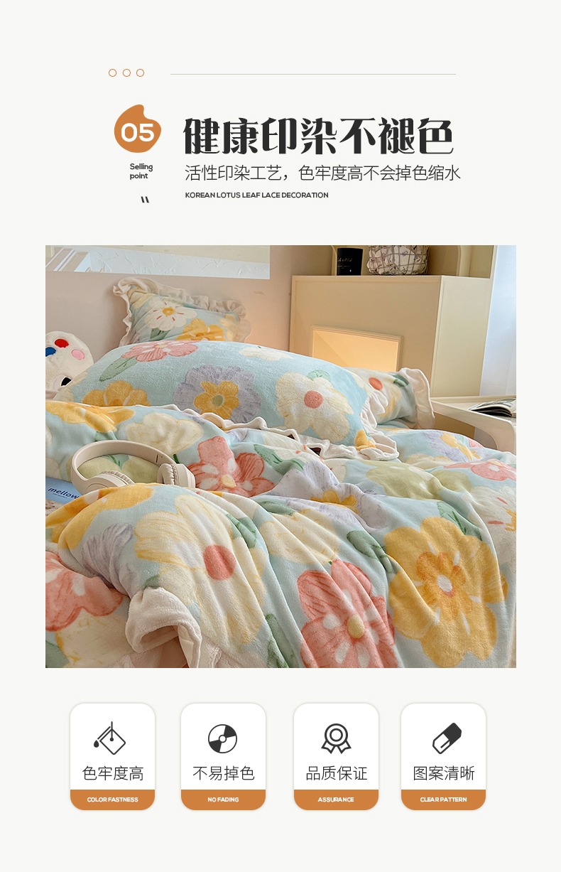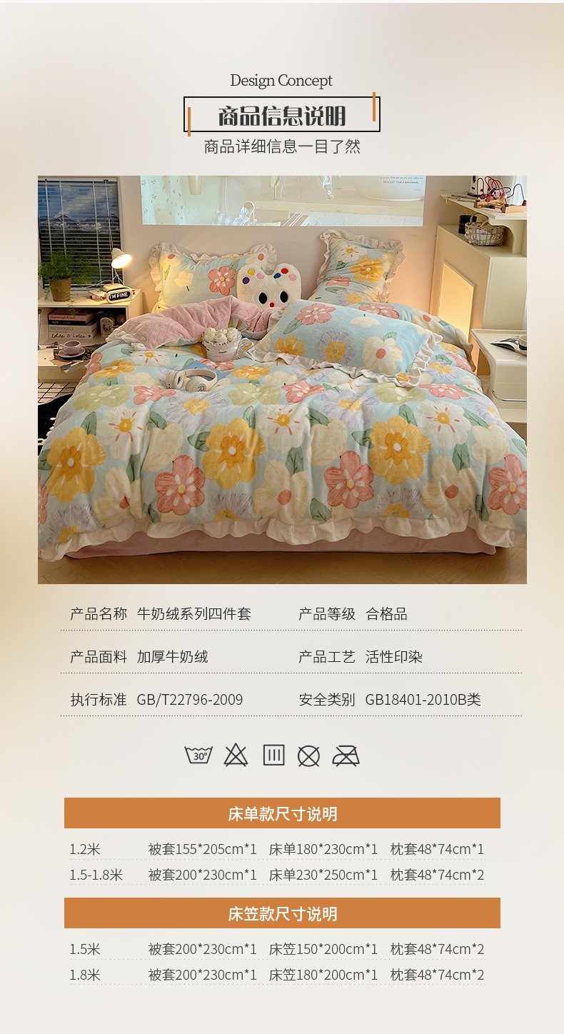 商品名称:桃子家居 2024新款A类ins韩版花边少女心加厚牛奶绒四件套 绒-花边花儿多多