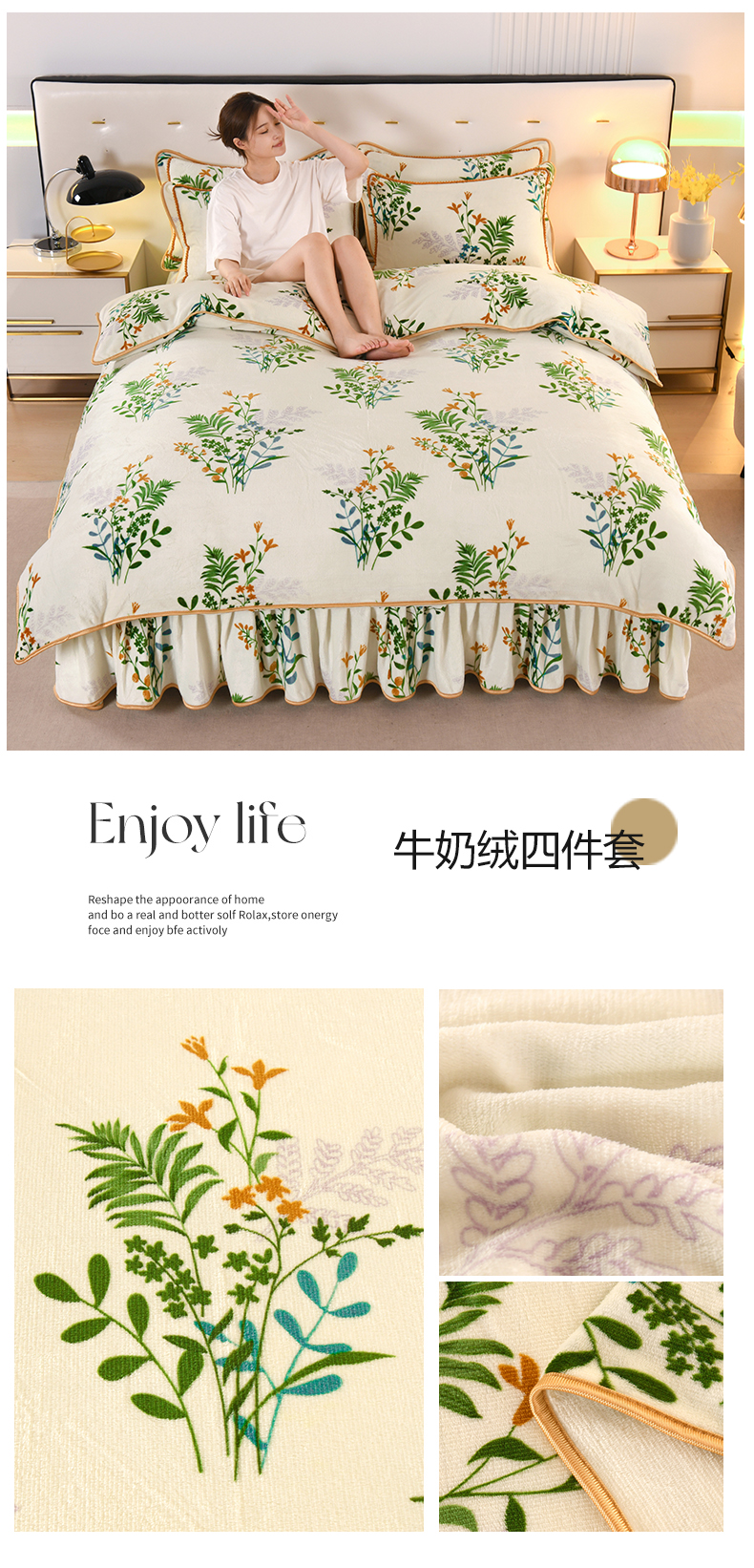 爱洛家纺 2024新款高克重牛奶绒印花四件套 阳光花语