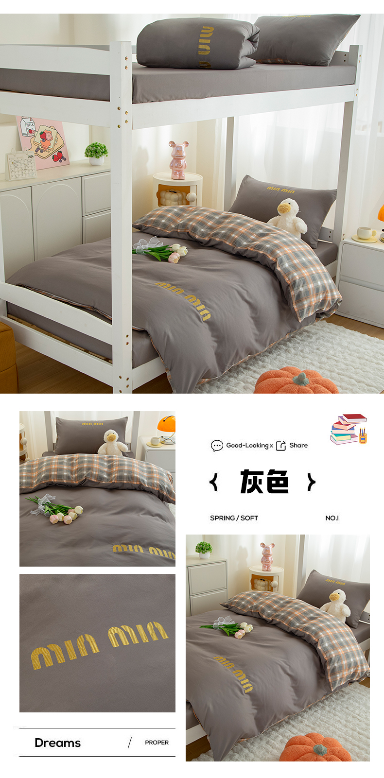 富宁家纺 2025新款亲肤磨毛学生三件套学生床场景二-青春格子 灰色