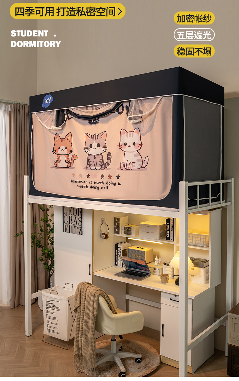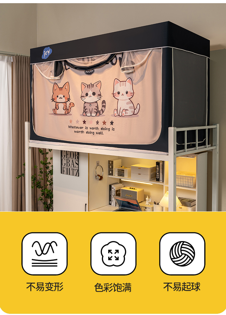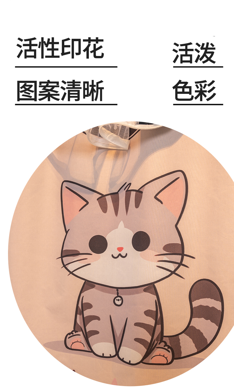 商品名称:新太阳蚊帐 2025新款大空间卡通印花窗帘款学生宿舍涂层强遮光加密网纱蚊帐 三只小猫