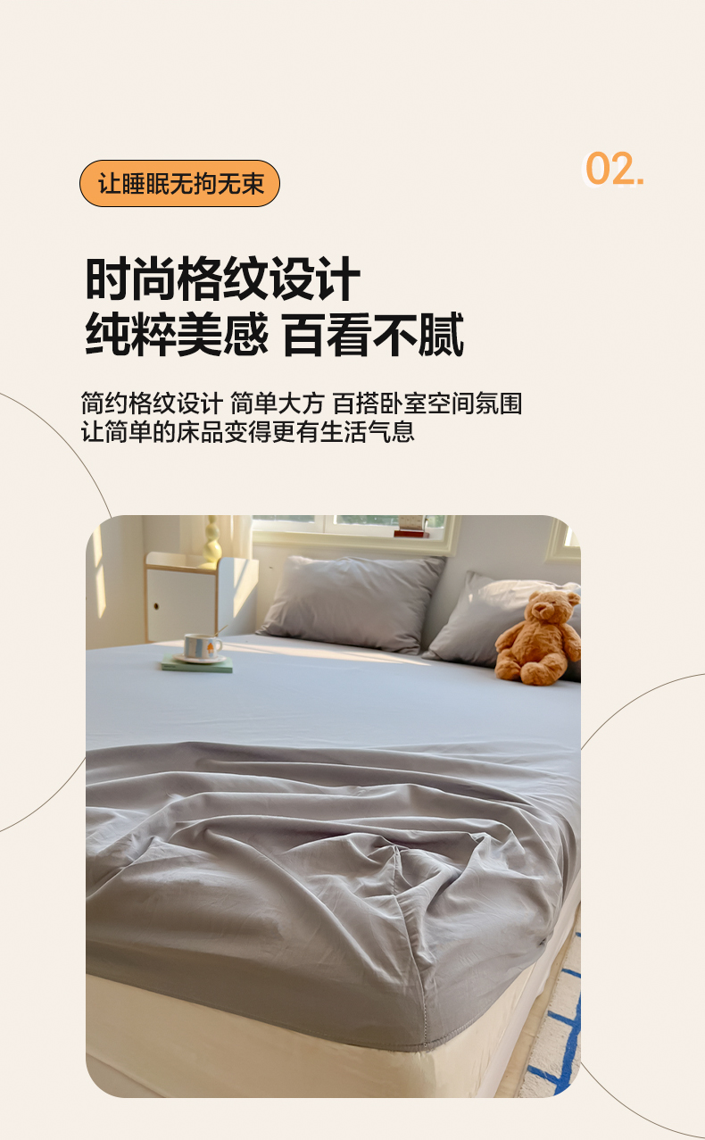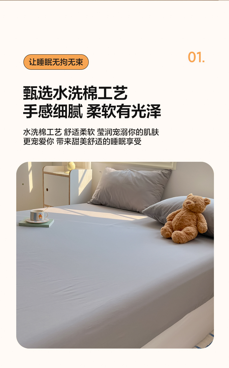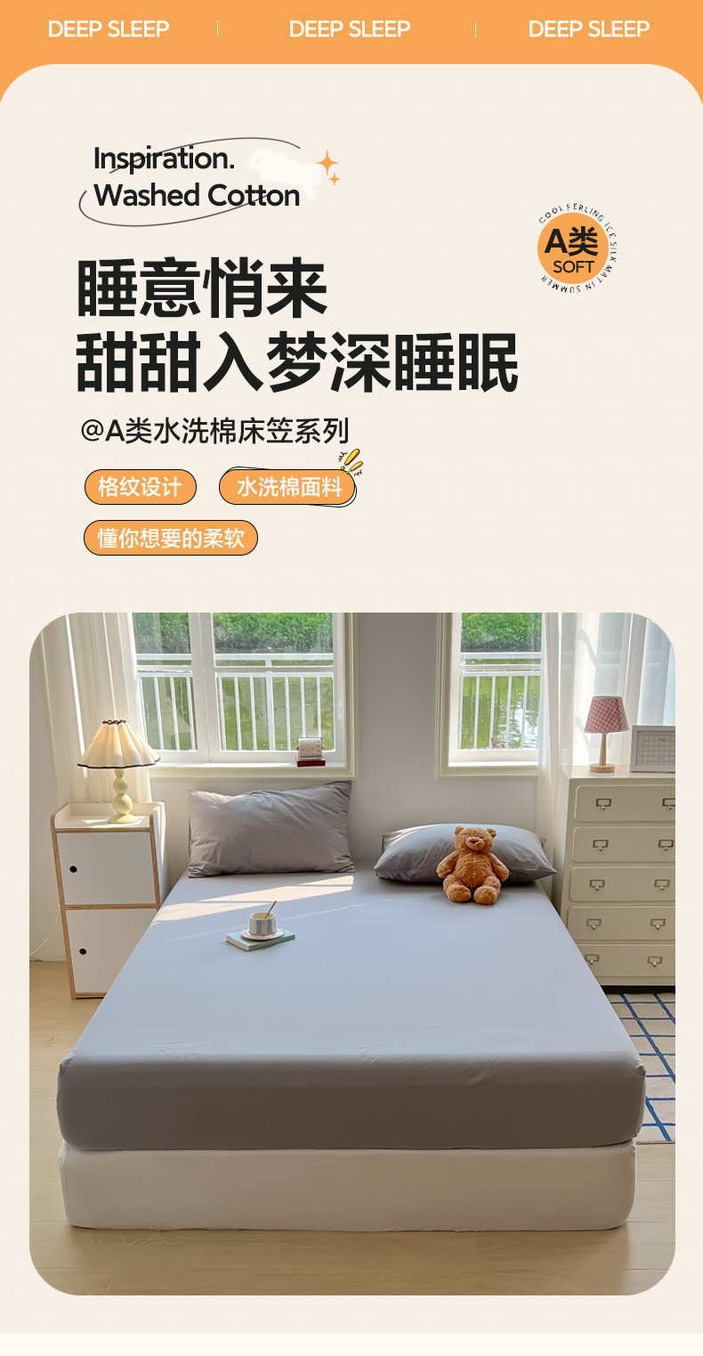 • 91家纺网 家纺一手货源 找家纺 韩巢家纺 2024新款A类纯色良品格子水洗棉床笠单件全包围防滑床单床罩保护套 A类浅灰-床笠