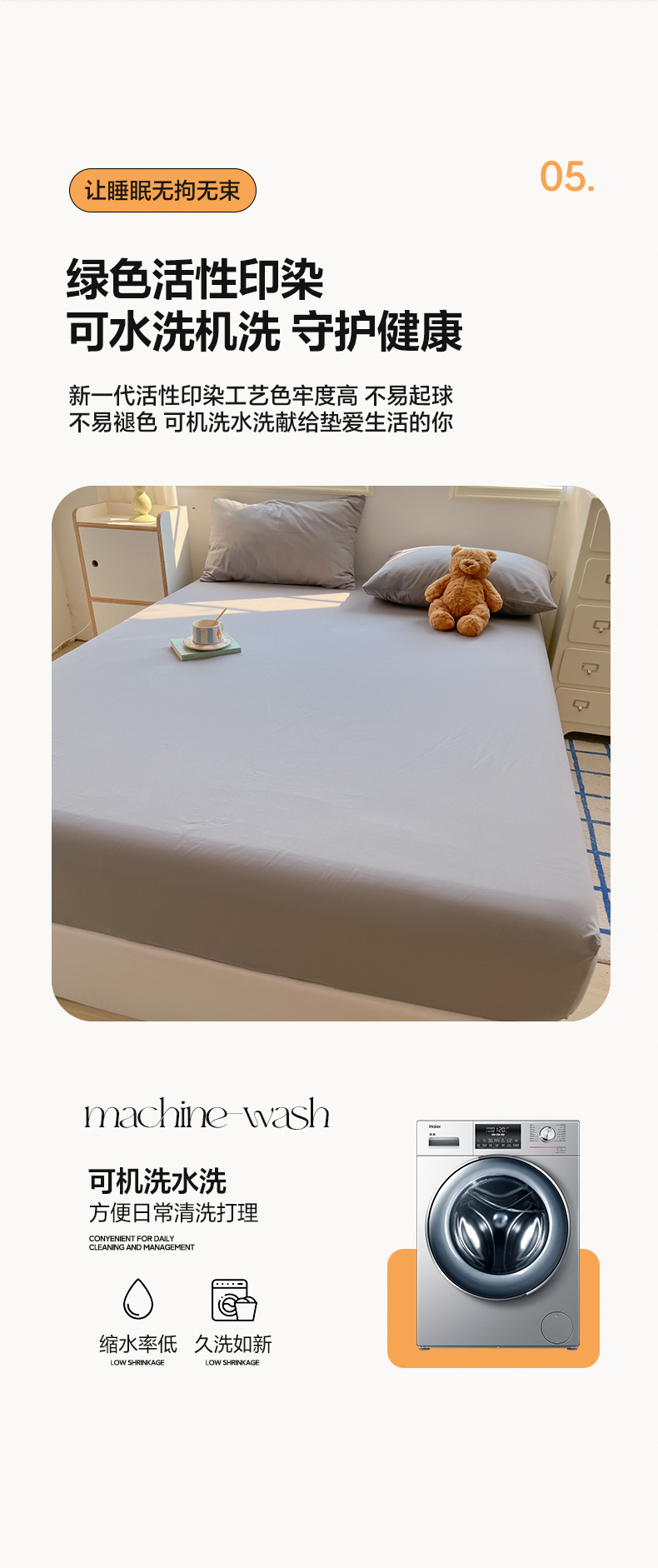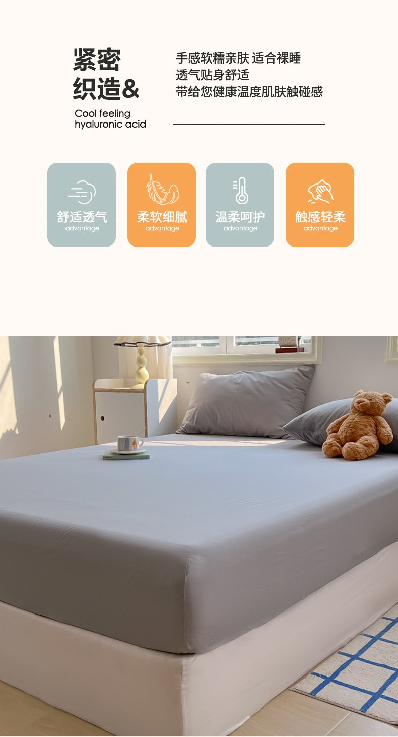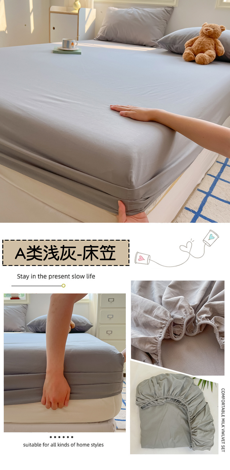 • 91家纺网 家纺一手货源 找家纺 韩巢家纺 2024新款A类纯色良品格子水洗棉床笠单件全包围防滑床单床罩保护套 A类浅灰-床笠