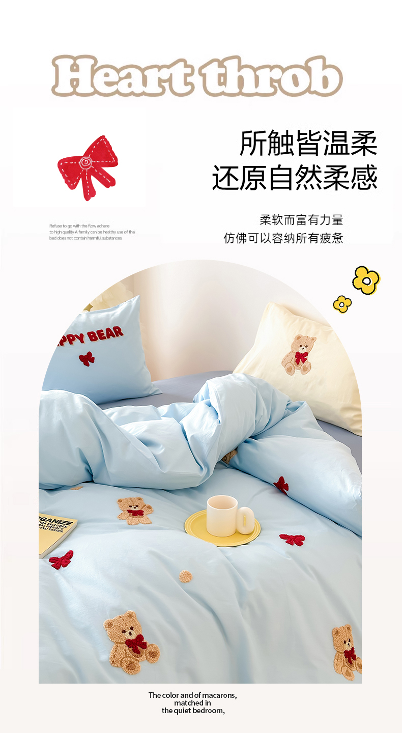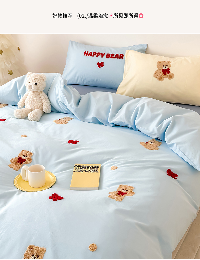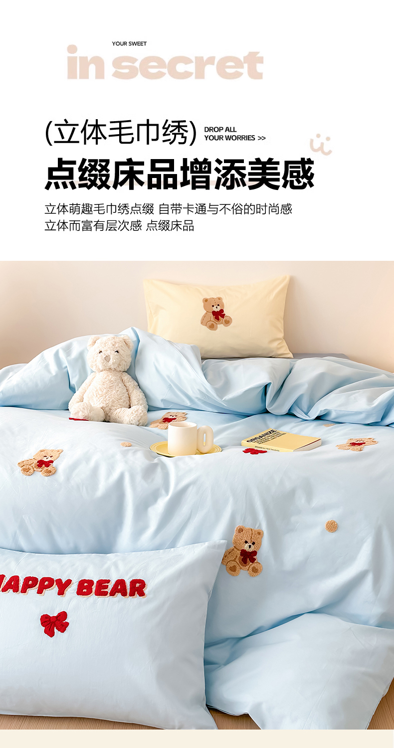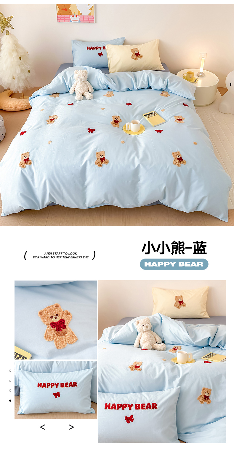 当前位置: 91家纺网 > 商品网购 > 床品套件 > 四件套 > 全棉普通四件套 > 我心家纺 2024新款全棉毛巾绣四件套-小熊系列 小小熊-蓝