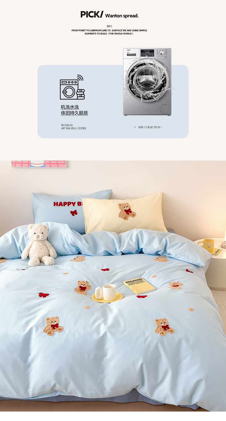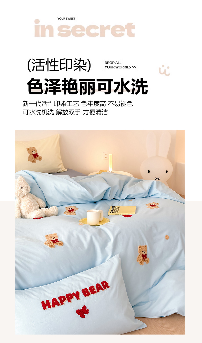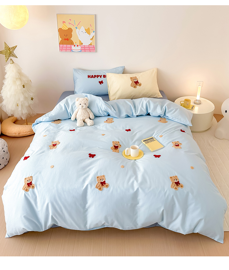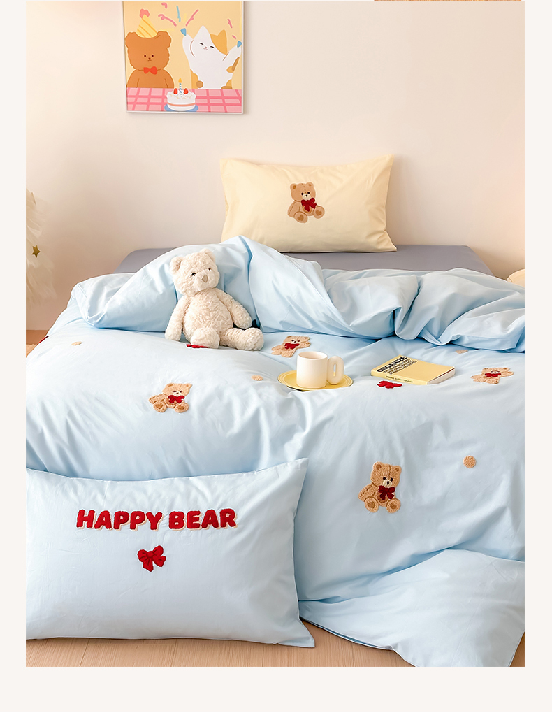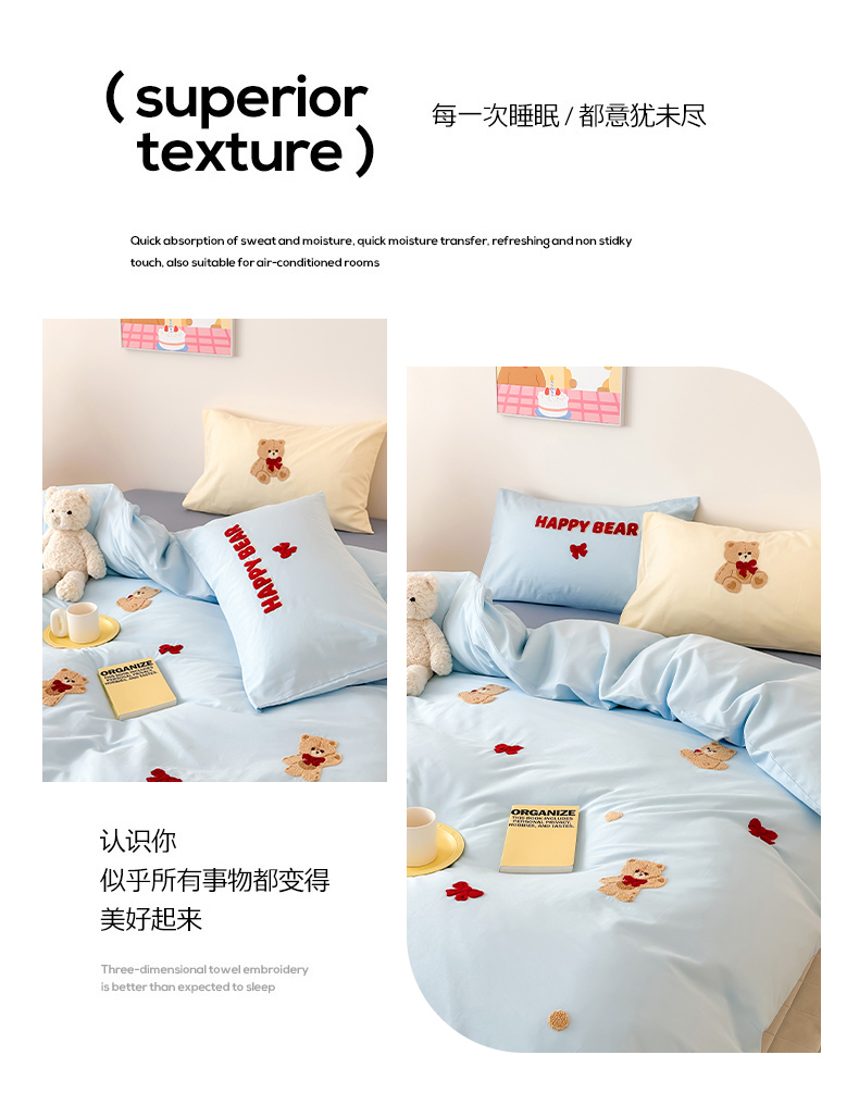 当前位置: 91家纺网 > 商品网购 > 床品套件 > 四件套 > 全棉普通四件套 > 我心家纺 2024新款全棉毛巾绣四件套-小熊系列 小小熊-蓝