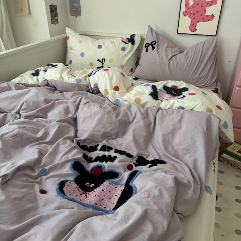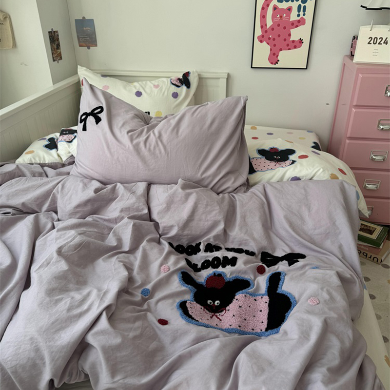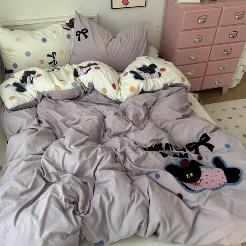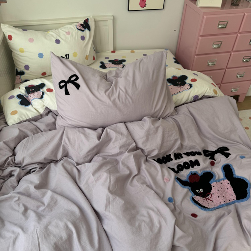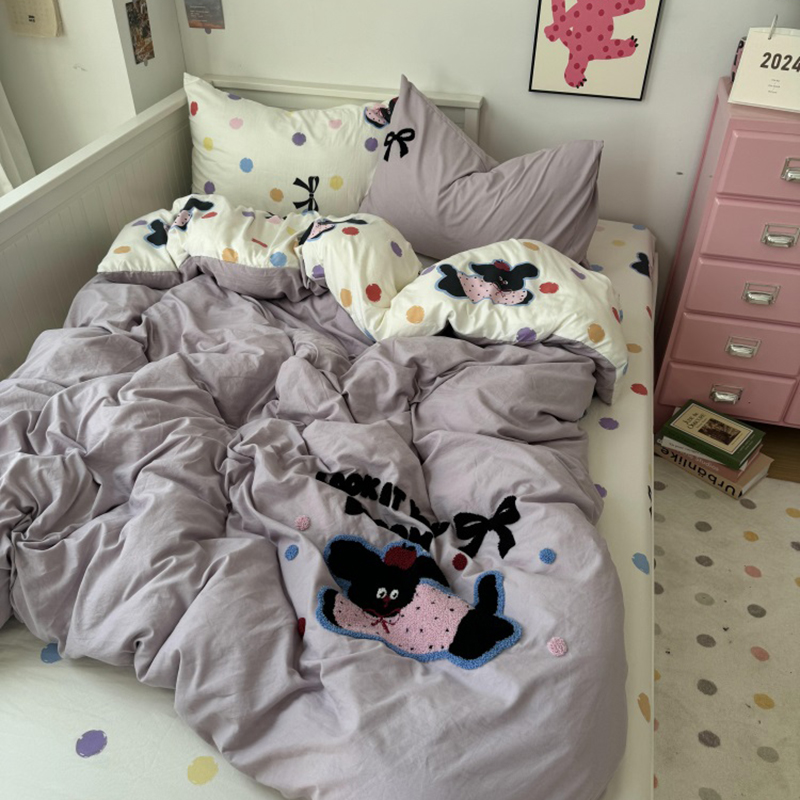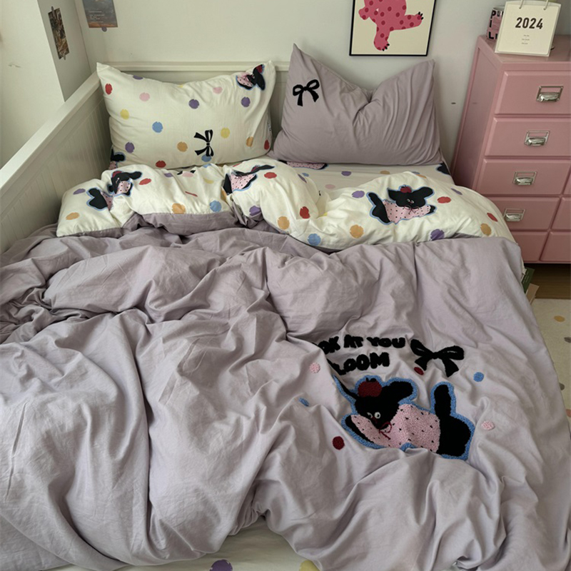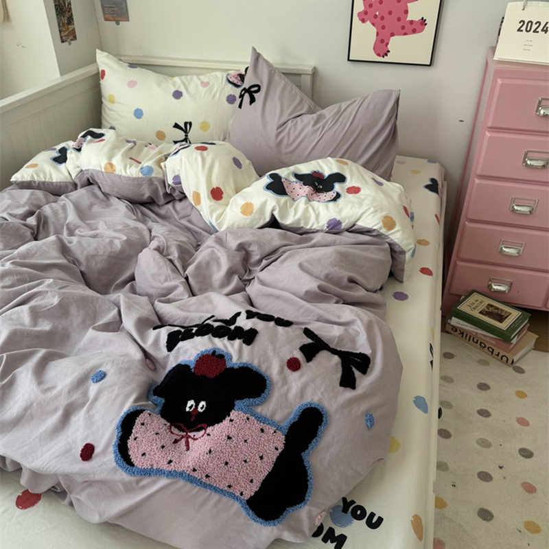 当前位置: 91家纺网 > 商品网购 > 床品套件 > 四件套 > 毛巾绣四件套 > 2024新款高克重印花毛巾绣爆款四件套-实拍图 苹果狗狗-柔紫