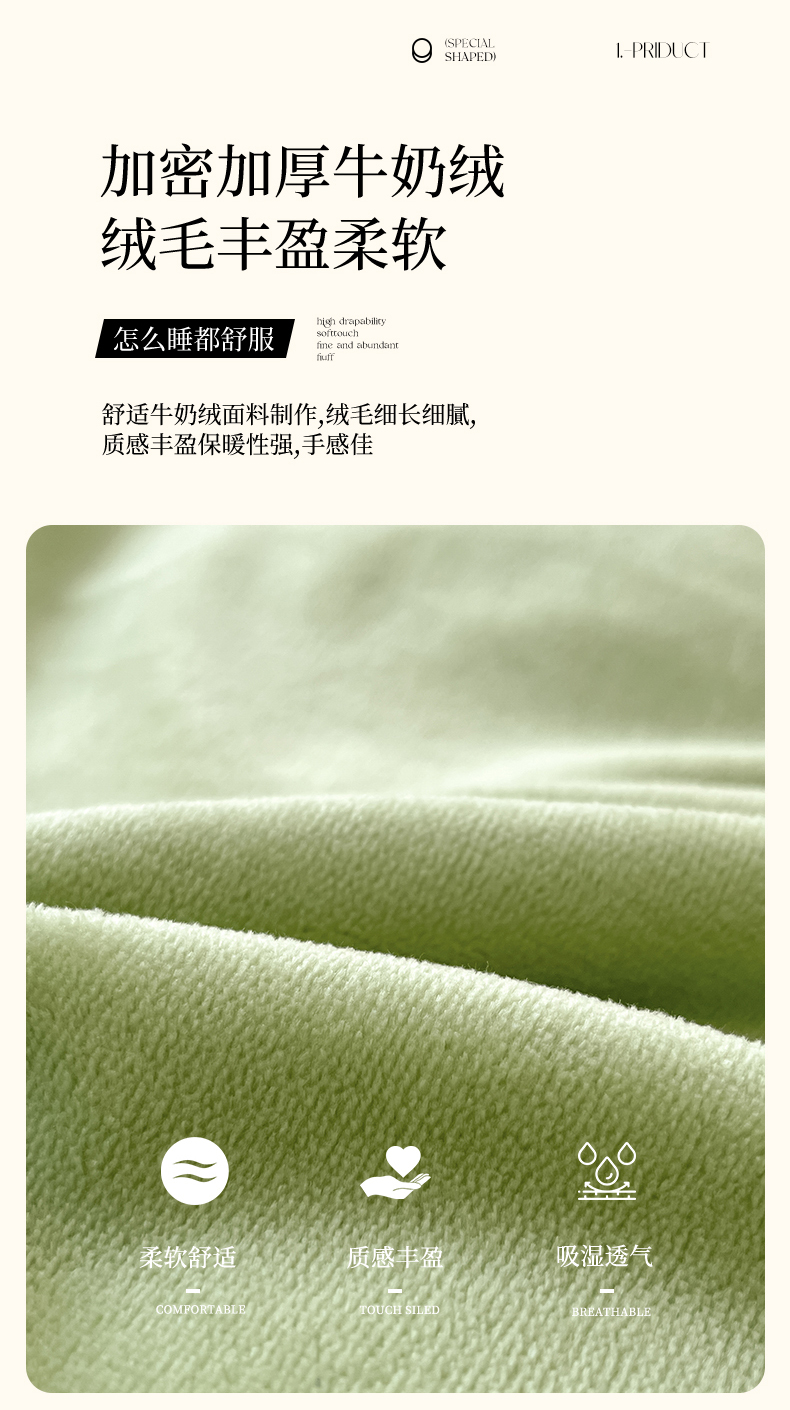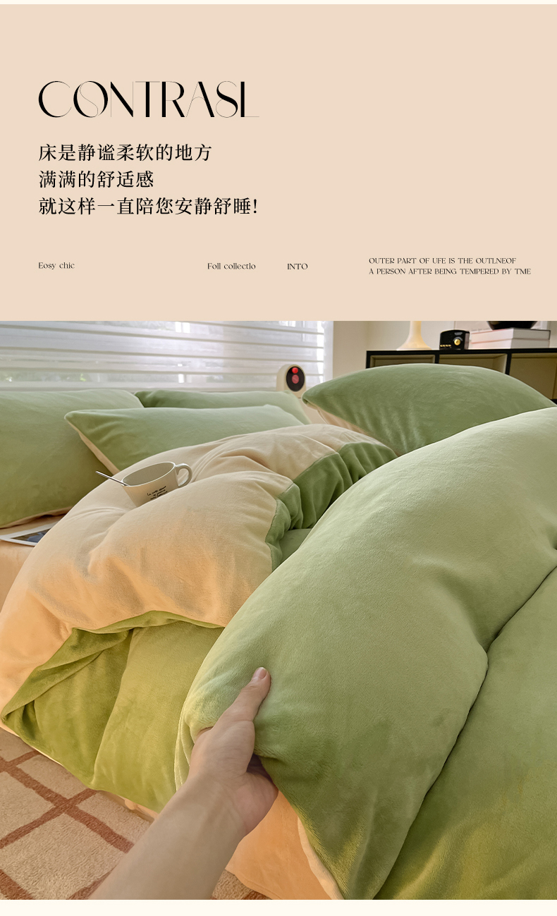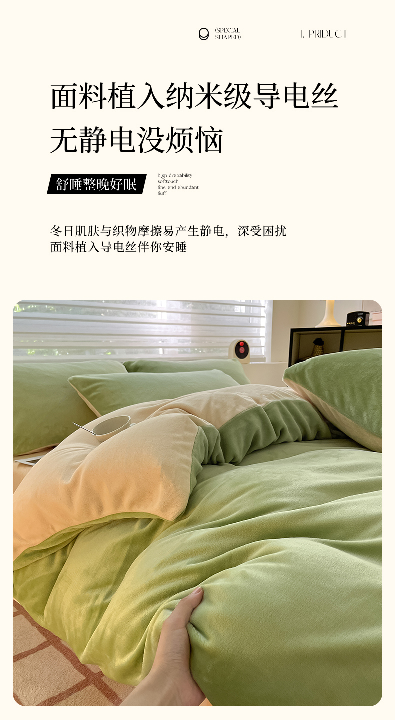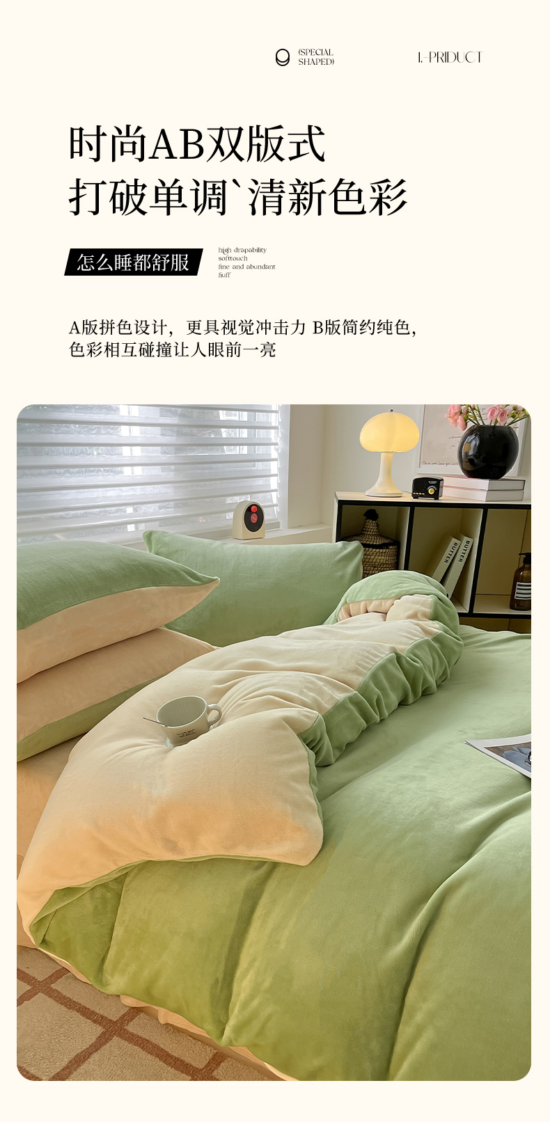 商品名称:绘萱 2025新款高克重纯色双拼牛奶绒四件套 奶油绿黄