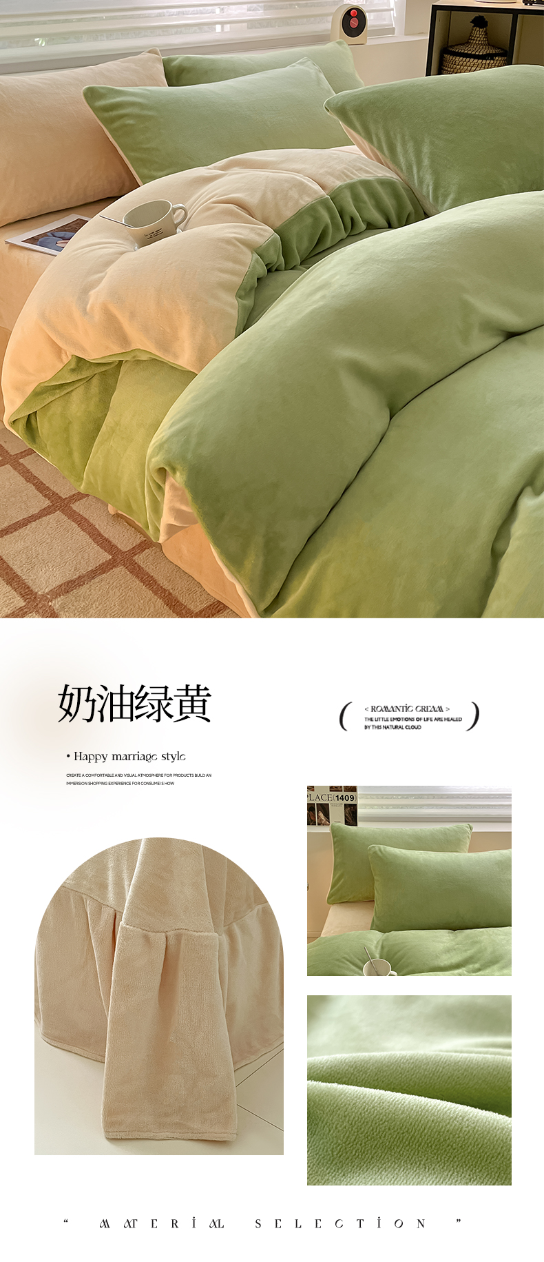 绘萱 2025新款高克重纯色双拼牛奶绒四件套 奶油绿黄