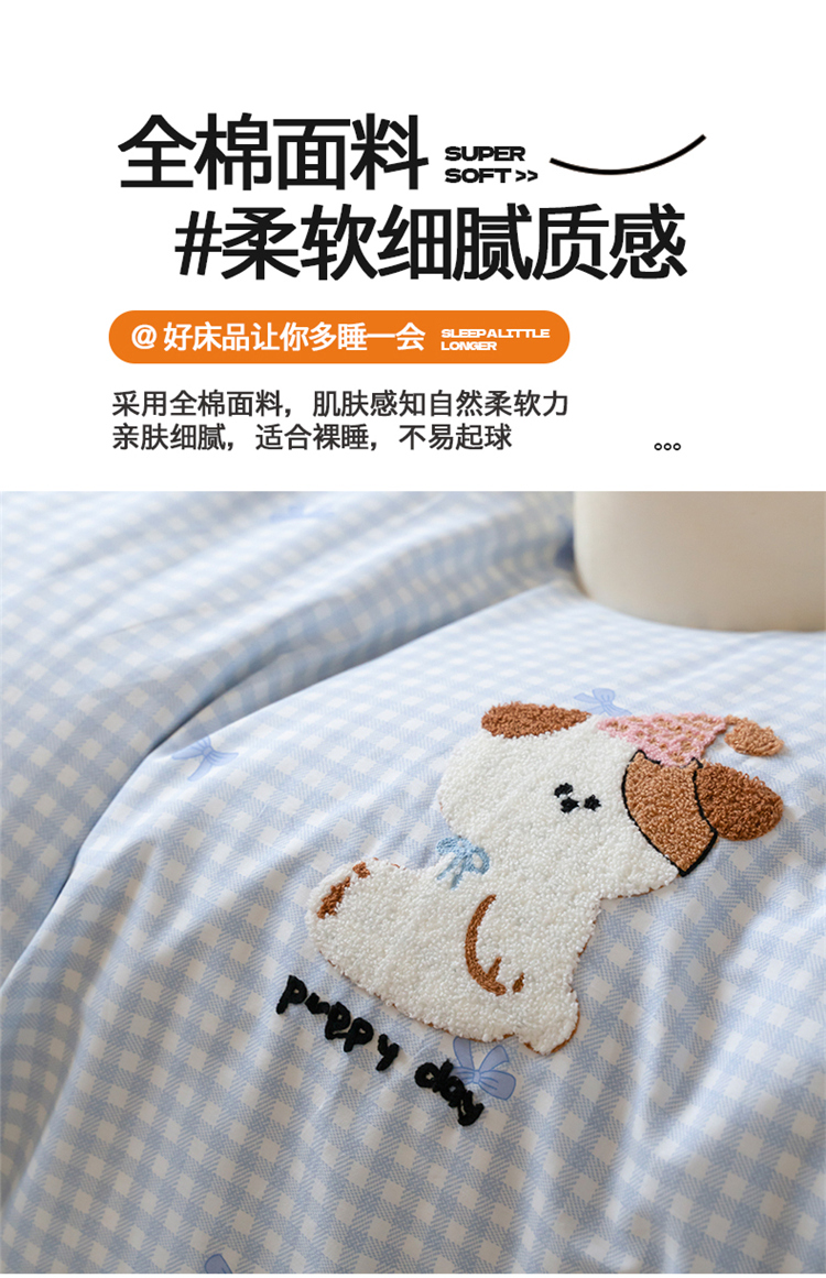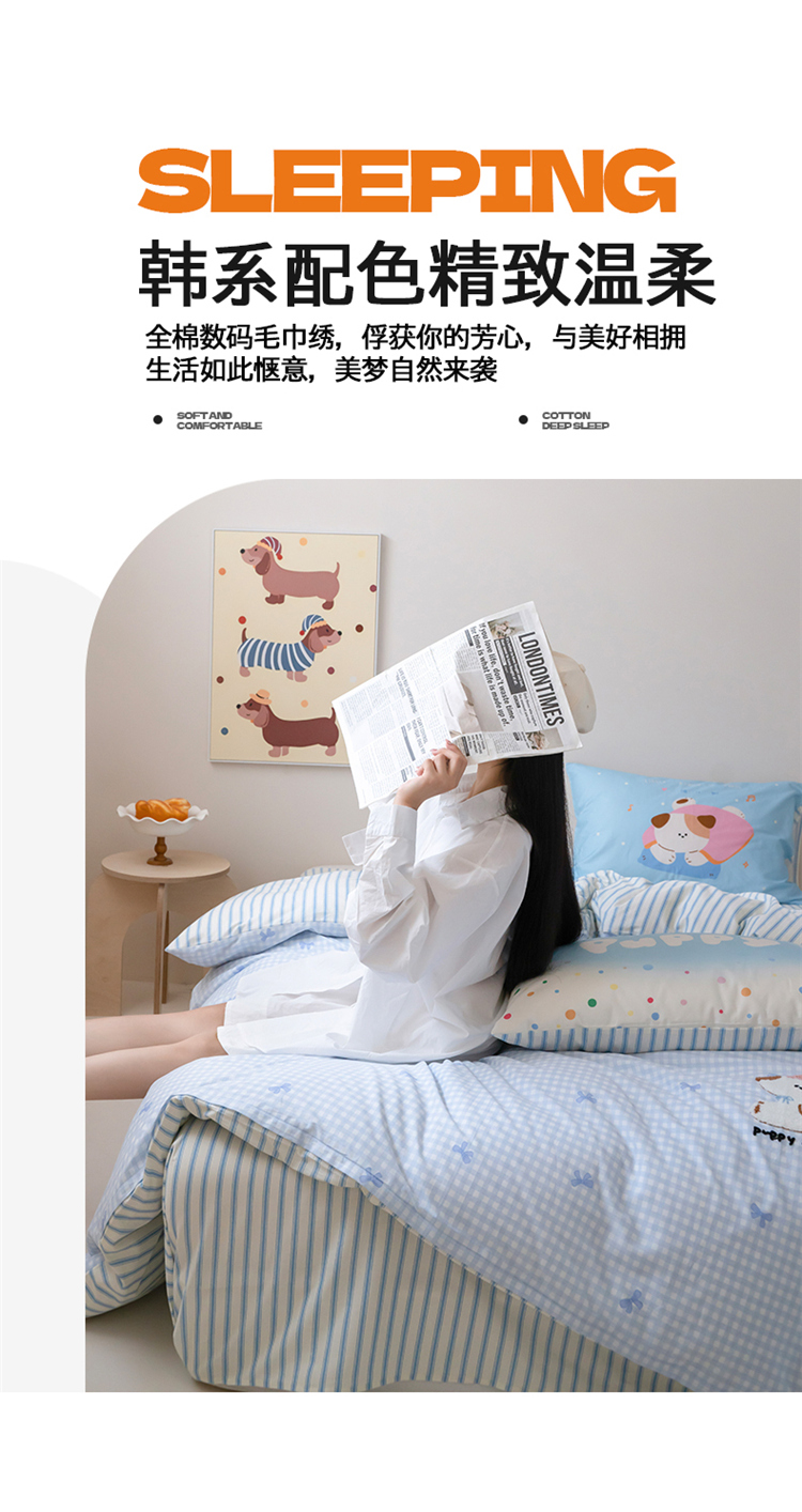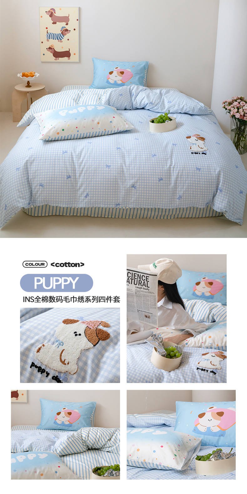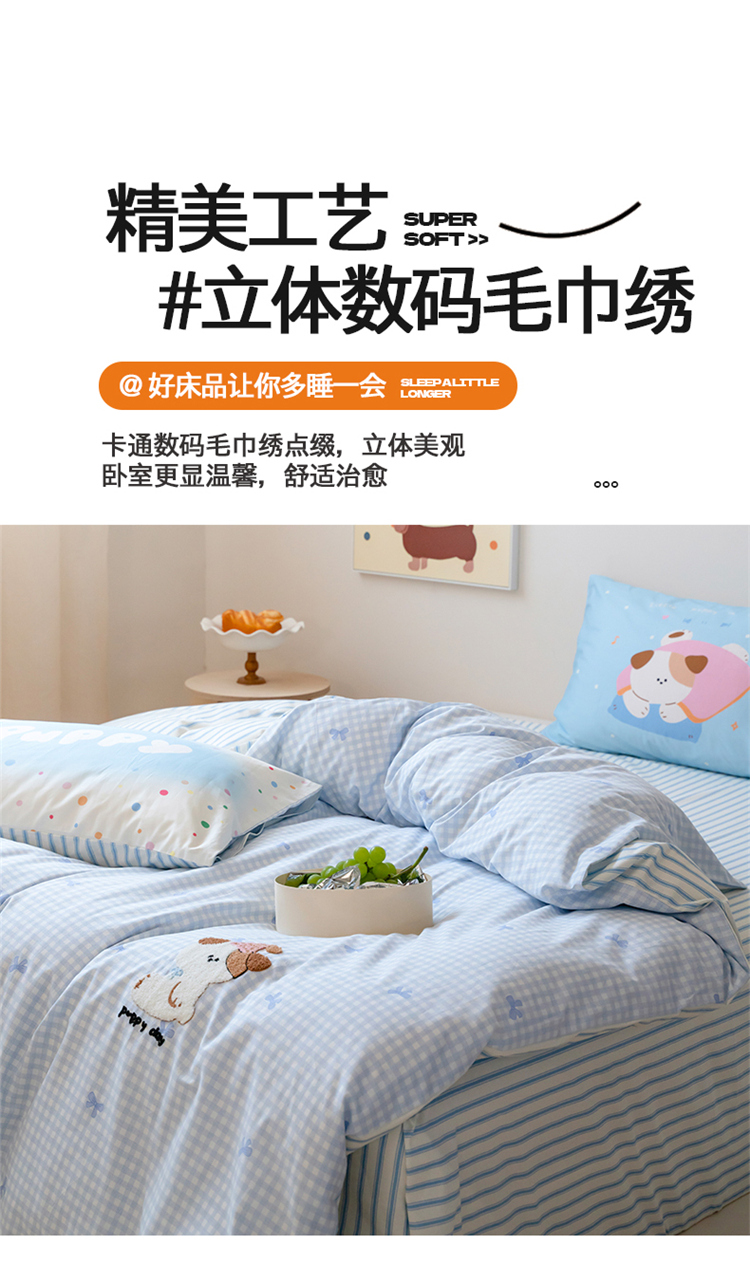 窝米2024毛巾绣x数码 13370全棉撞色卡通系列四件套 puppy