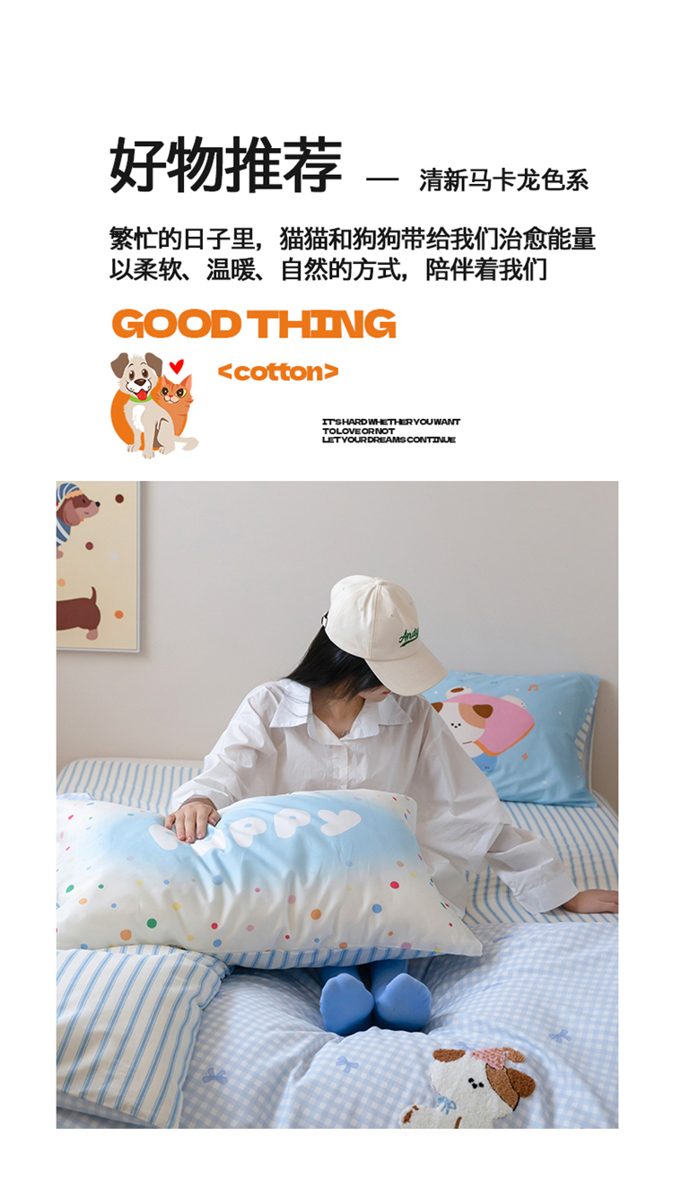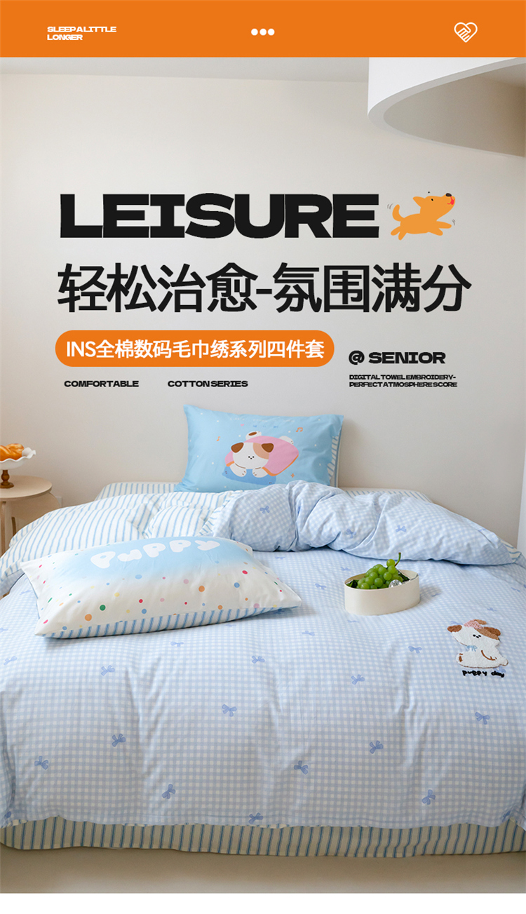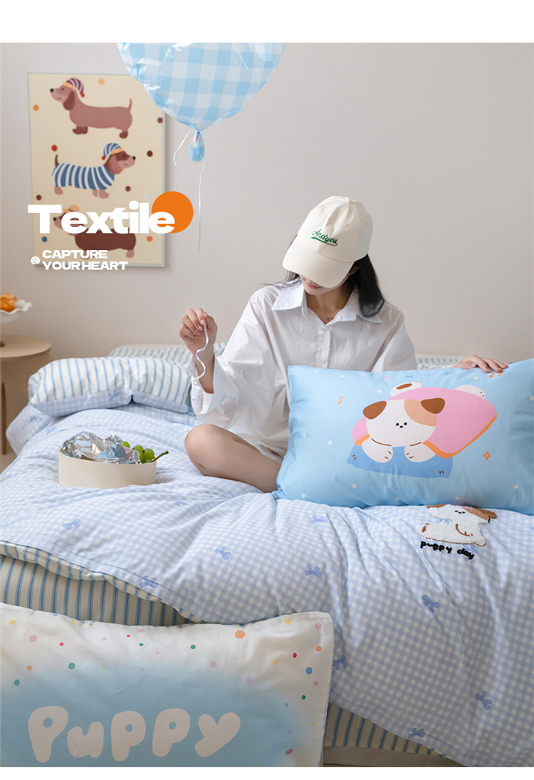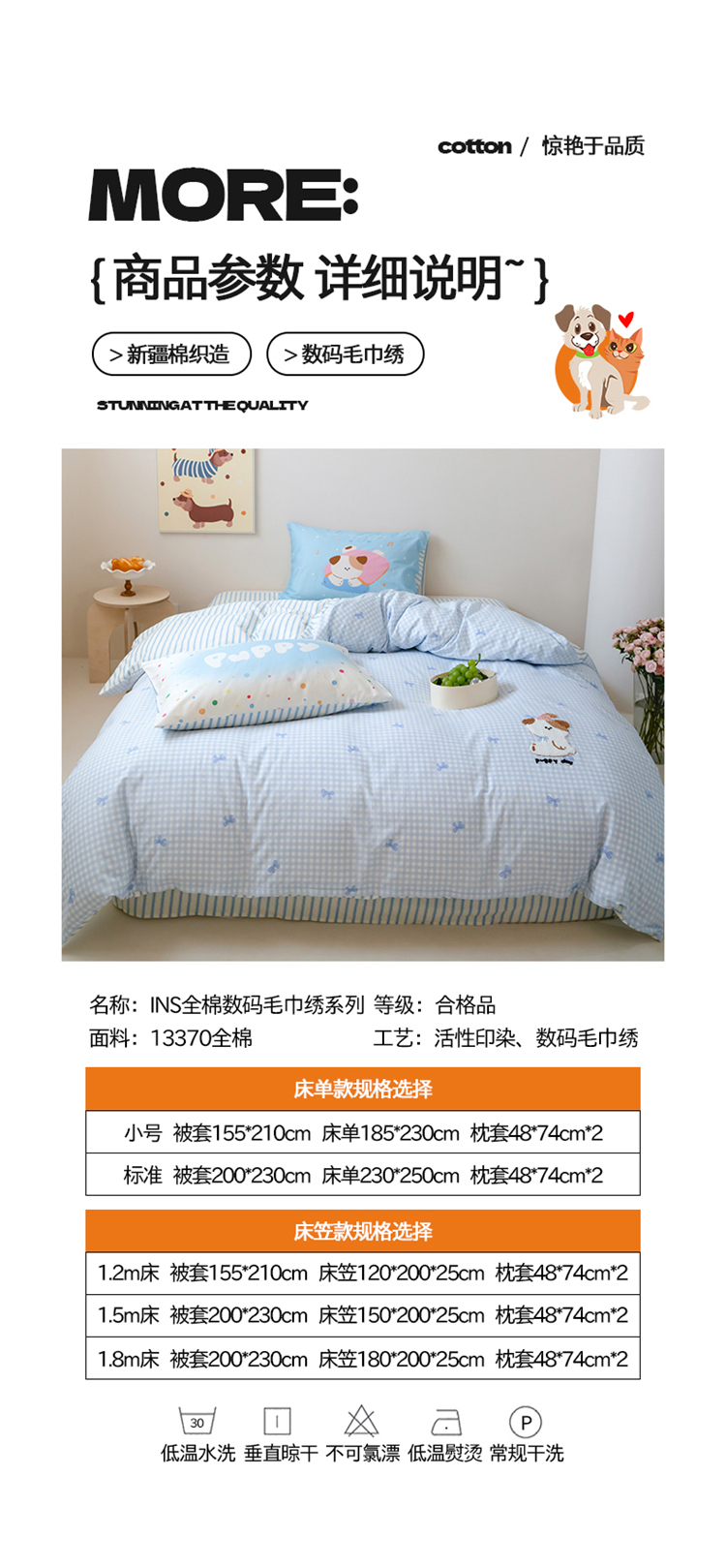 窝米2024毛巾绣x数码 13370全棉撞色卡通系列四件套 puppy