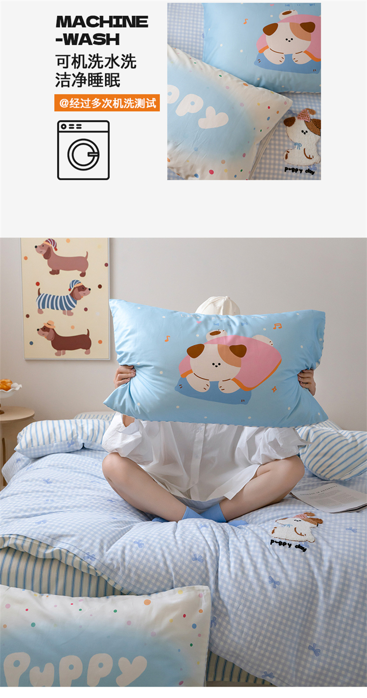 商品名称:窝米2024毛巾绣x数码 13370全棉撞色卡通系列四件套 puppy