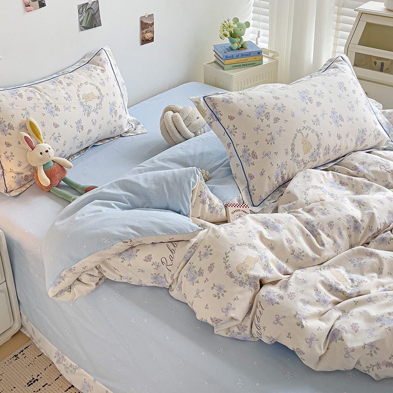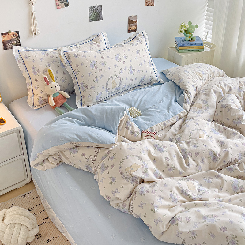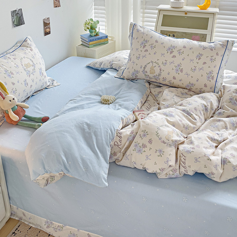 乐童家纺 2024新款直播热款13070纯棉印花吊边款一字绣四件套(十一) 铃语小兔