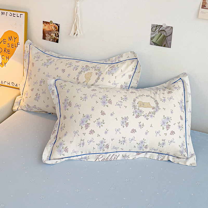 商品名称:乐童家纺 2024新款直播热款13070纯棉印花吊边款一字绣四件套(十一) 铃语小兔