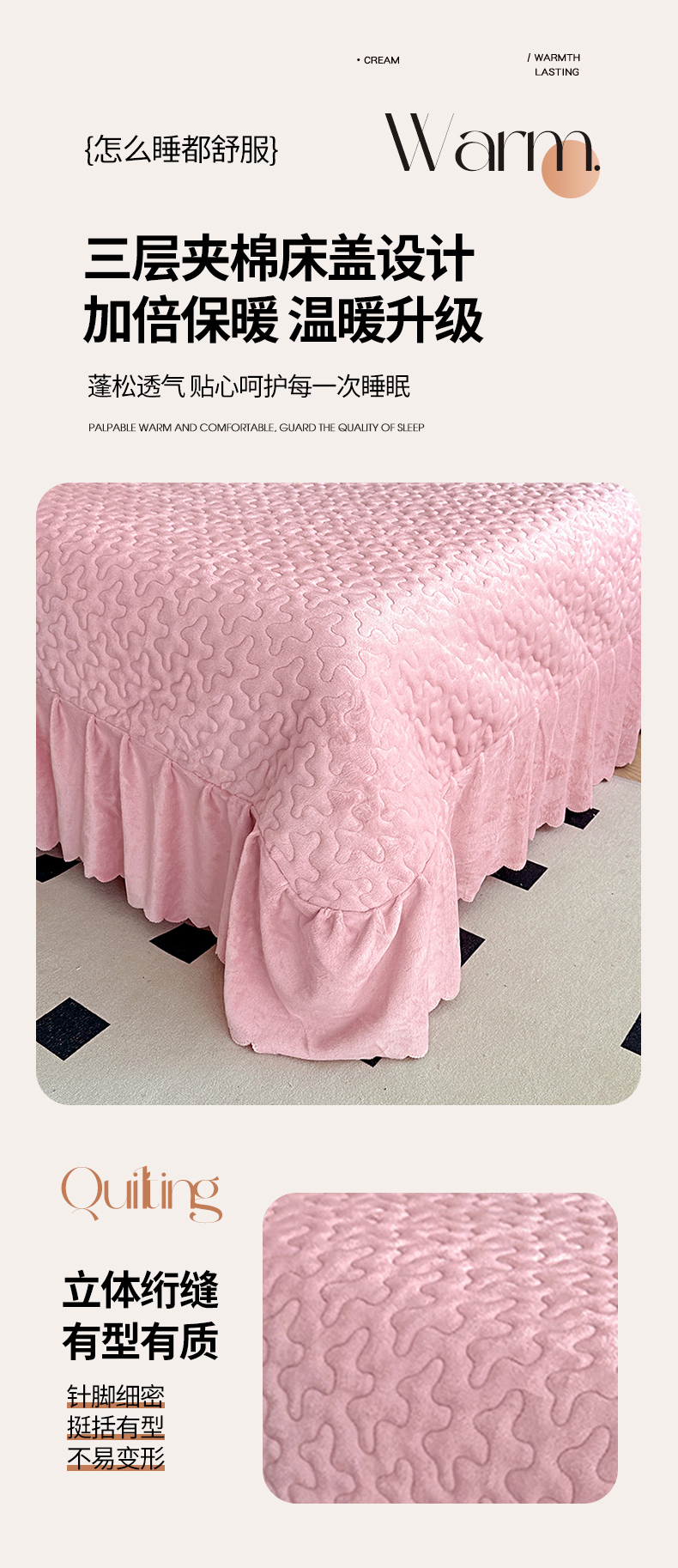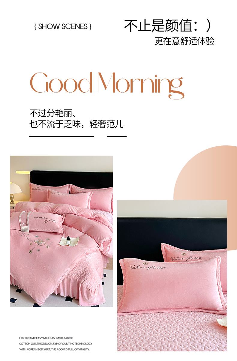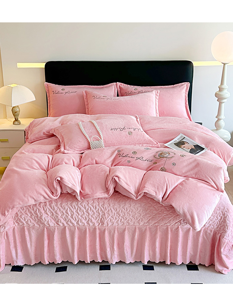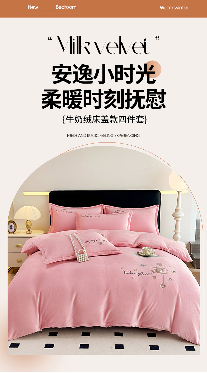 陌乘坊家纺 2024新款牛奶绒床盖款四件套-香奈 香奈-樱花粉
