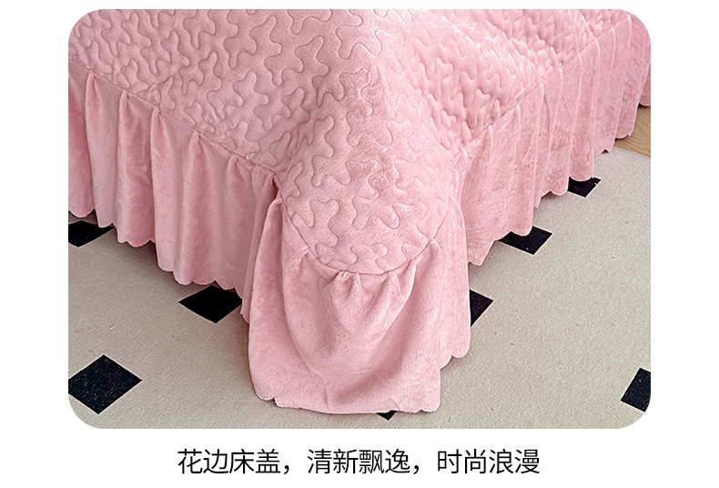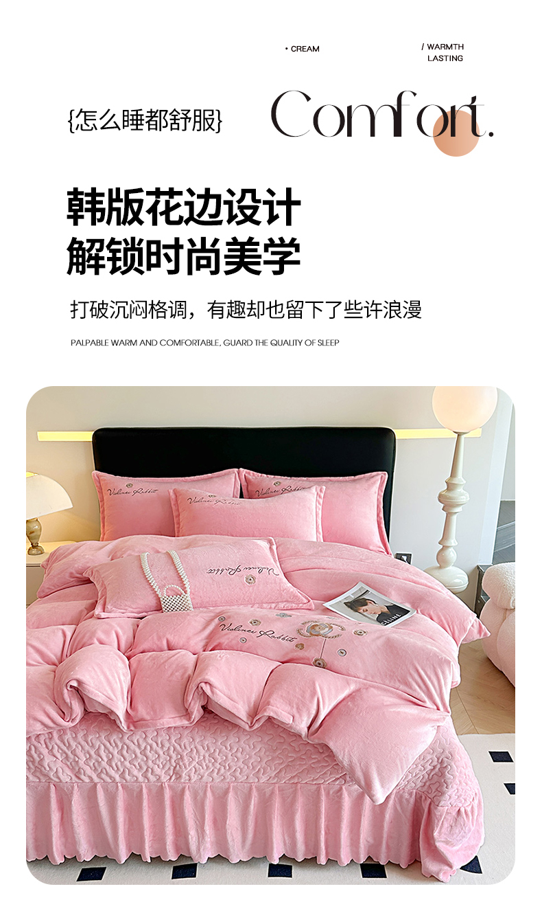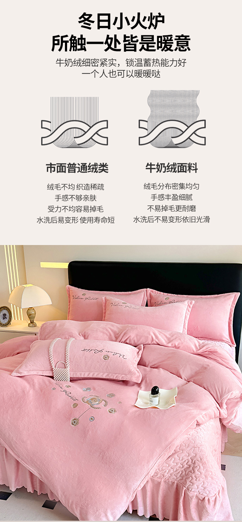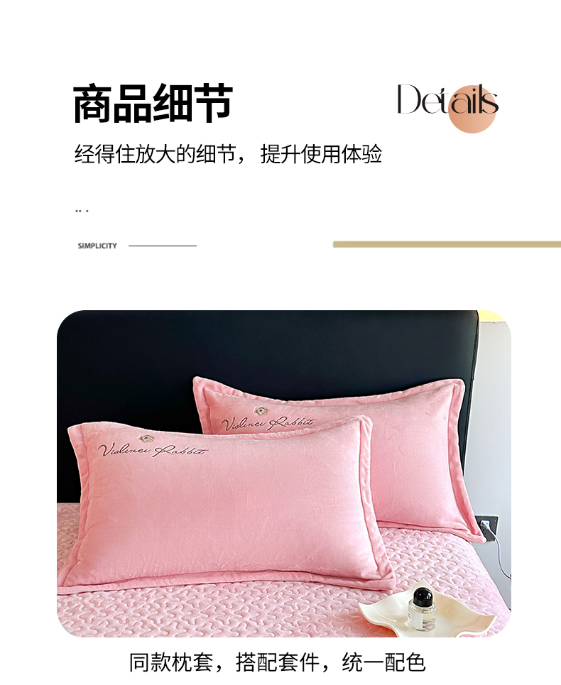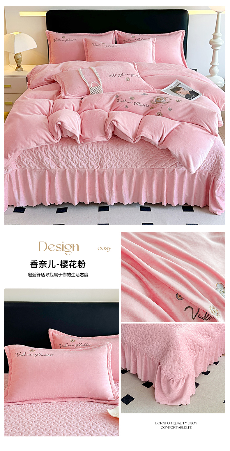 商品名称:陌乘坊家纺 2024新款牛奶绒床盖款四件套-香奈 香奈-樱花粉
