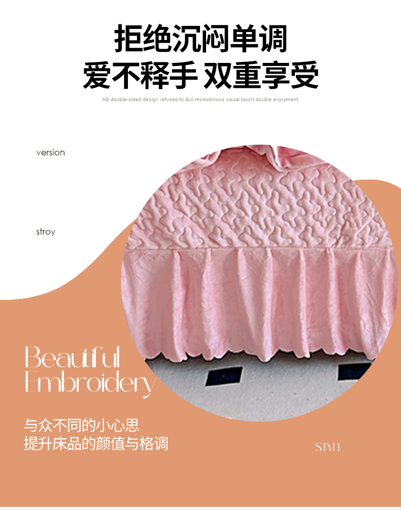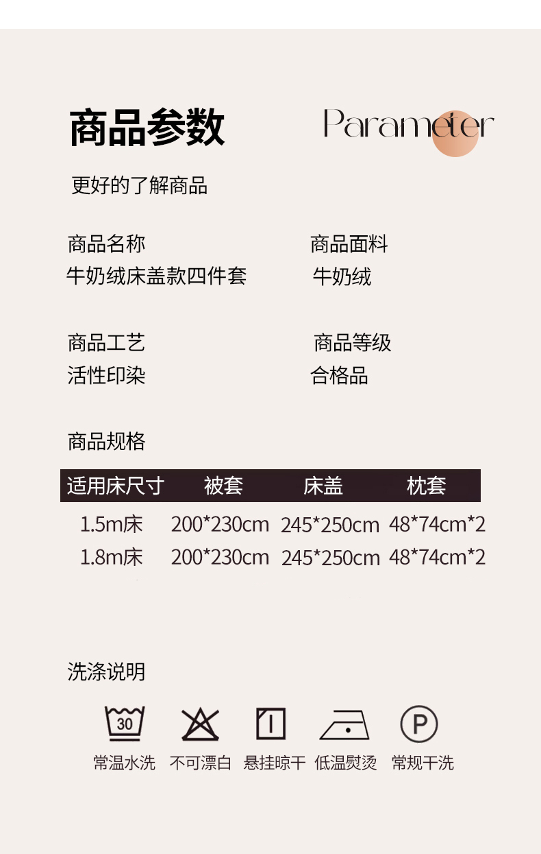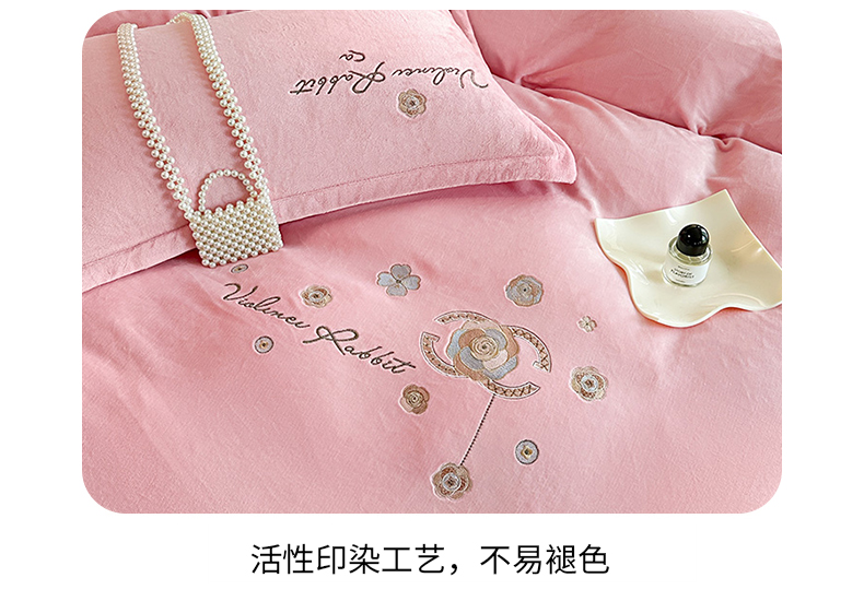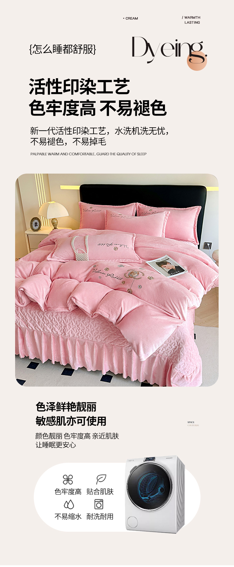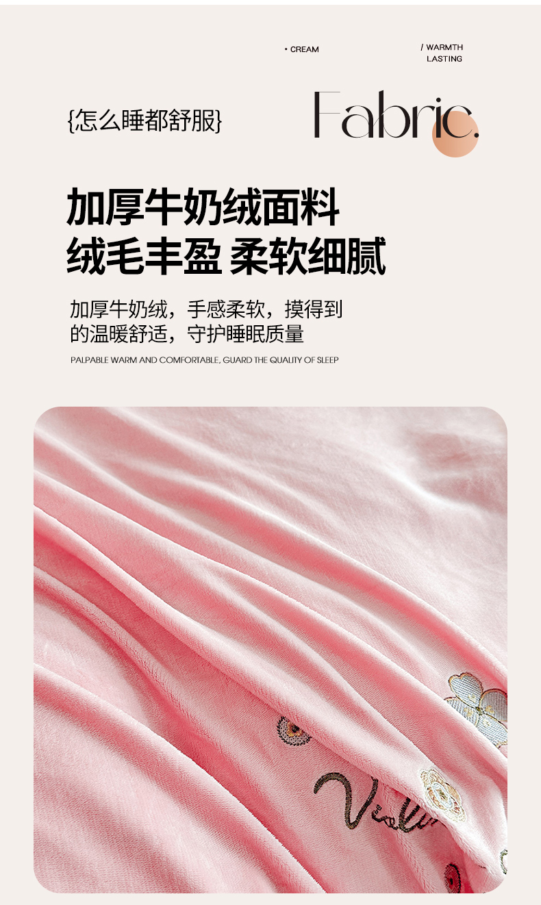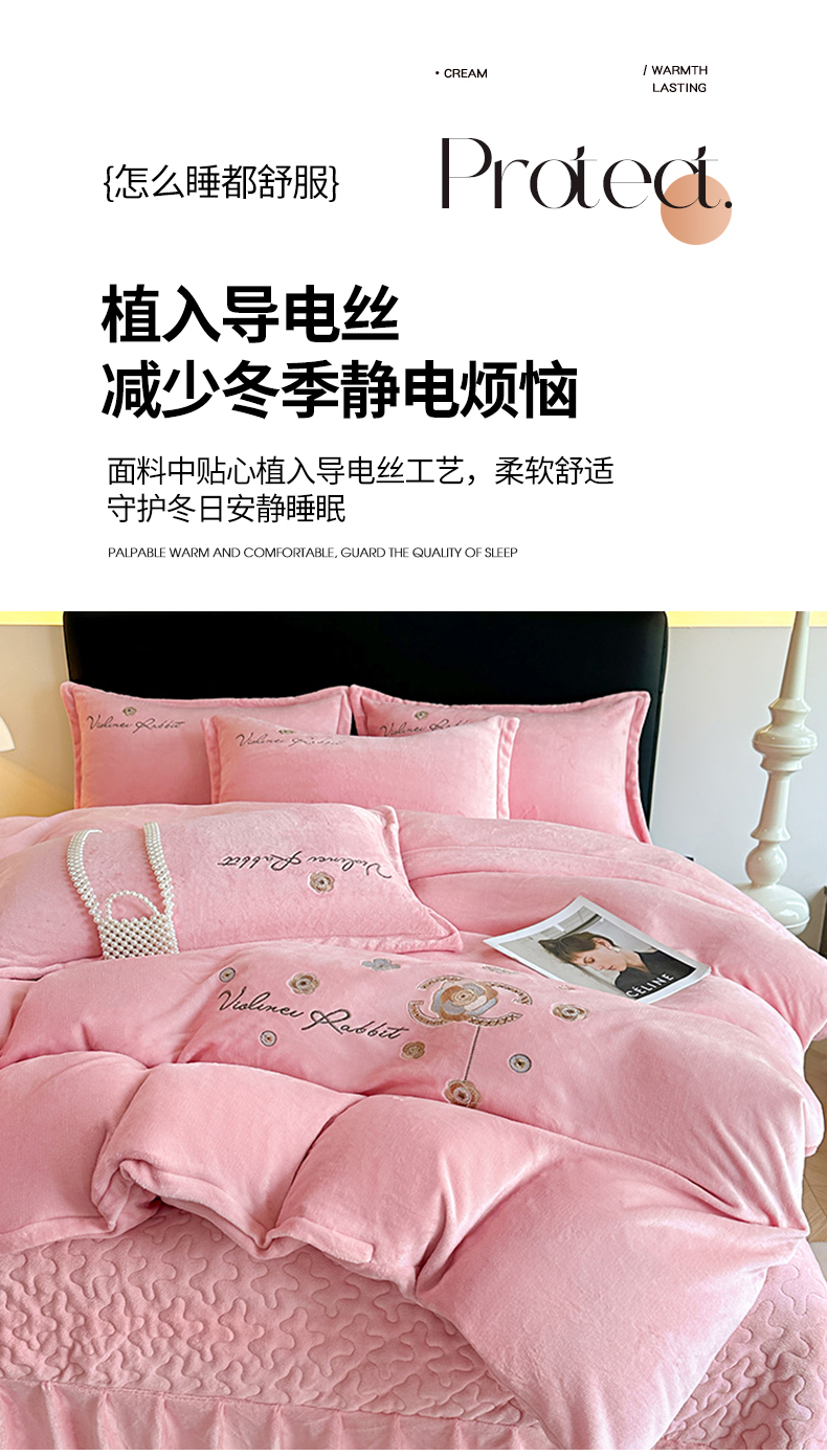 商品名称:陌乘坊家纺 2024新款牛奶绒床盖款四件套-香奈 香奈-樱花粉
