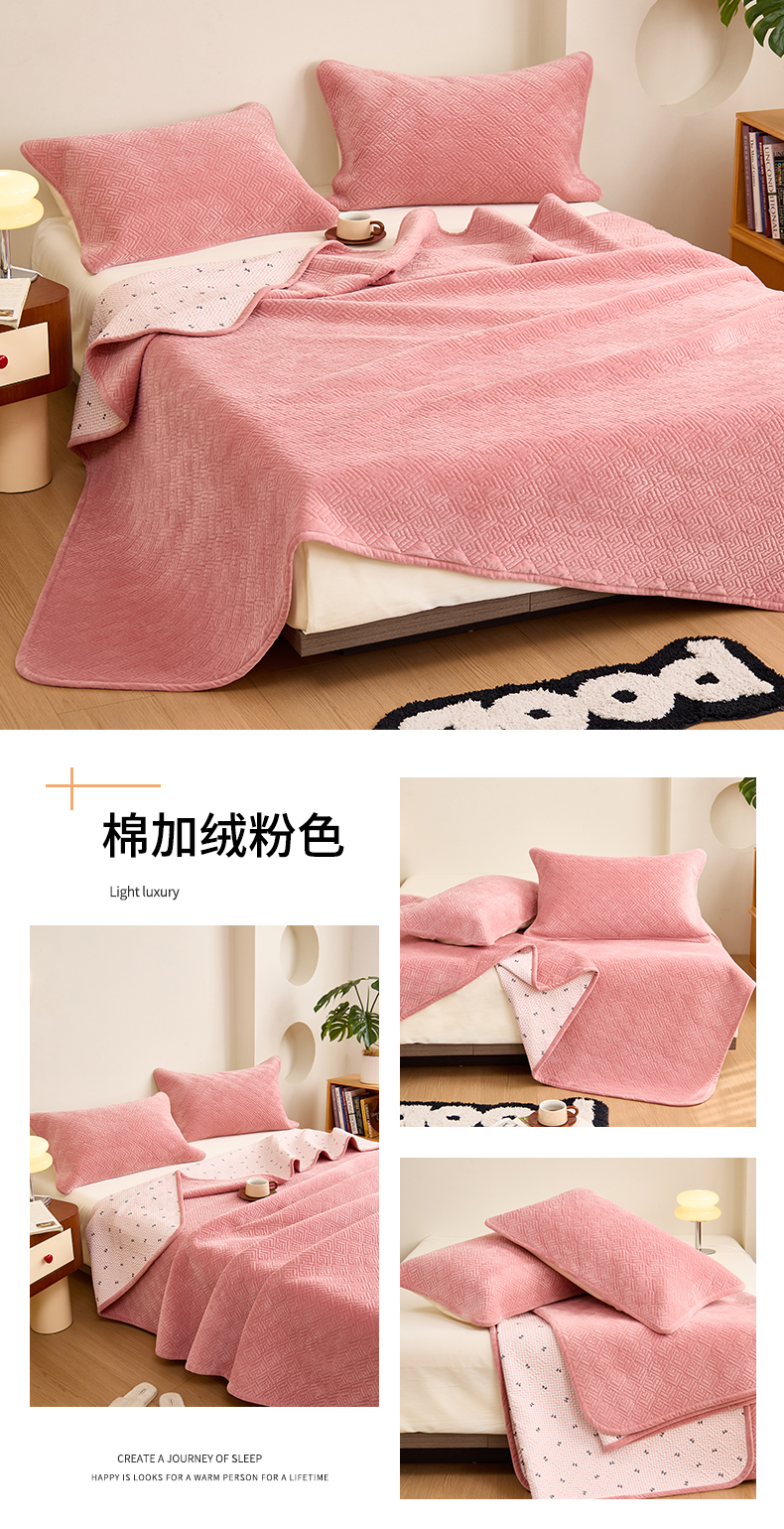 美优兰 2025秋冬新款棉加绒床盖单品床盖三件套 棉加绒粉色
