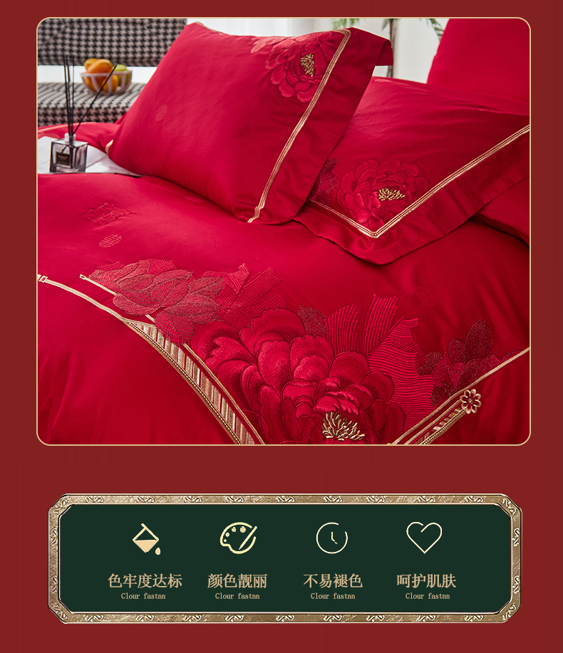 当前位置: 91家纺网 > 商品网购 > 床品套件 > 四件套 > 长绒棉四件套 > 2025新款长绒棉长绒棉贡缎提花款新中式古典韵味精美刺绣婚庆四件套多件套 至爱