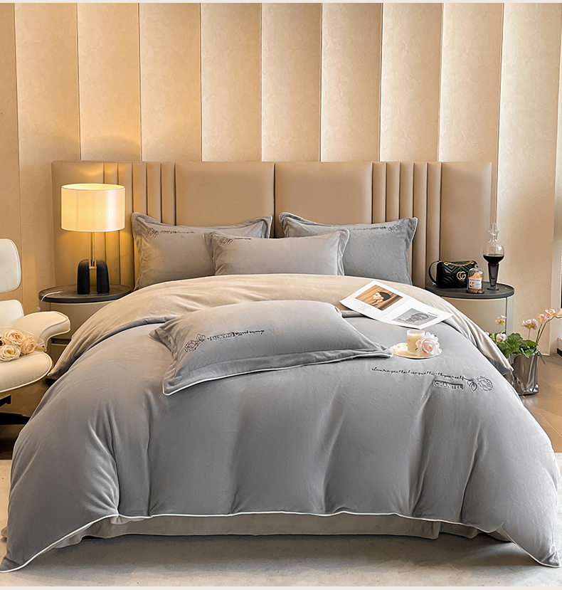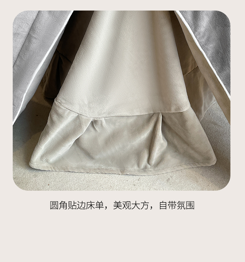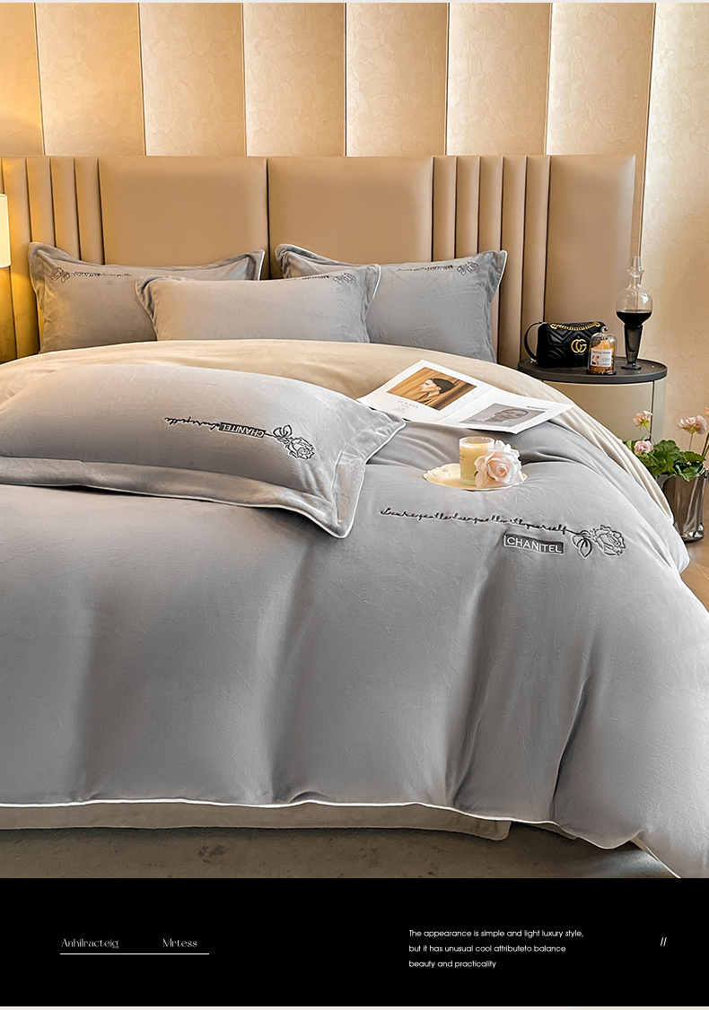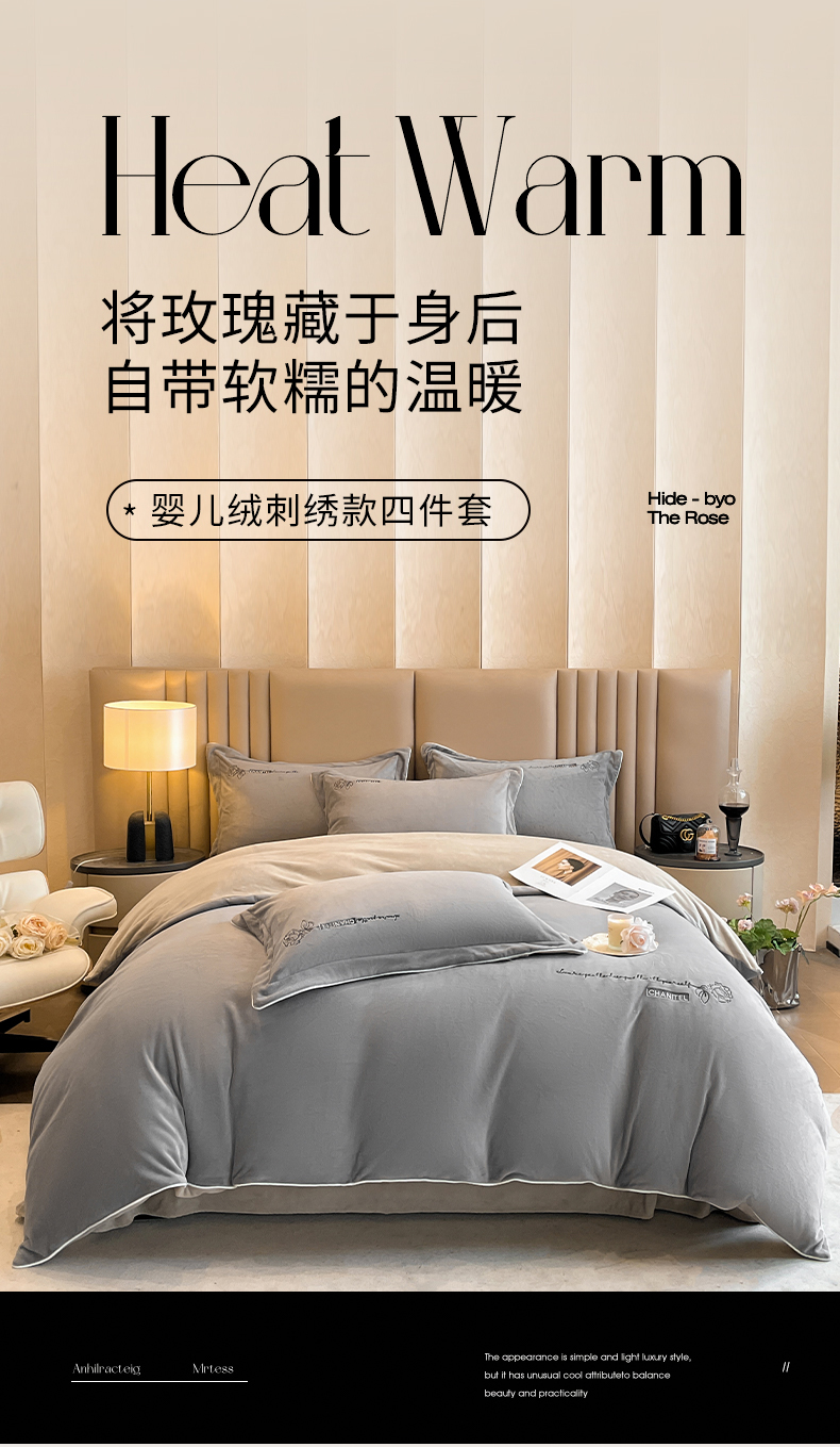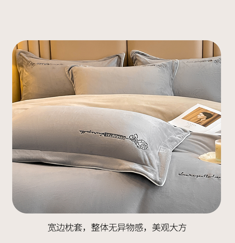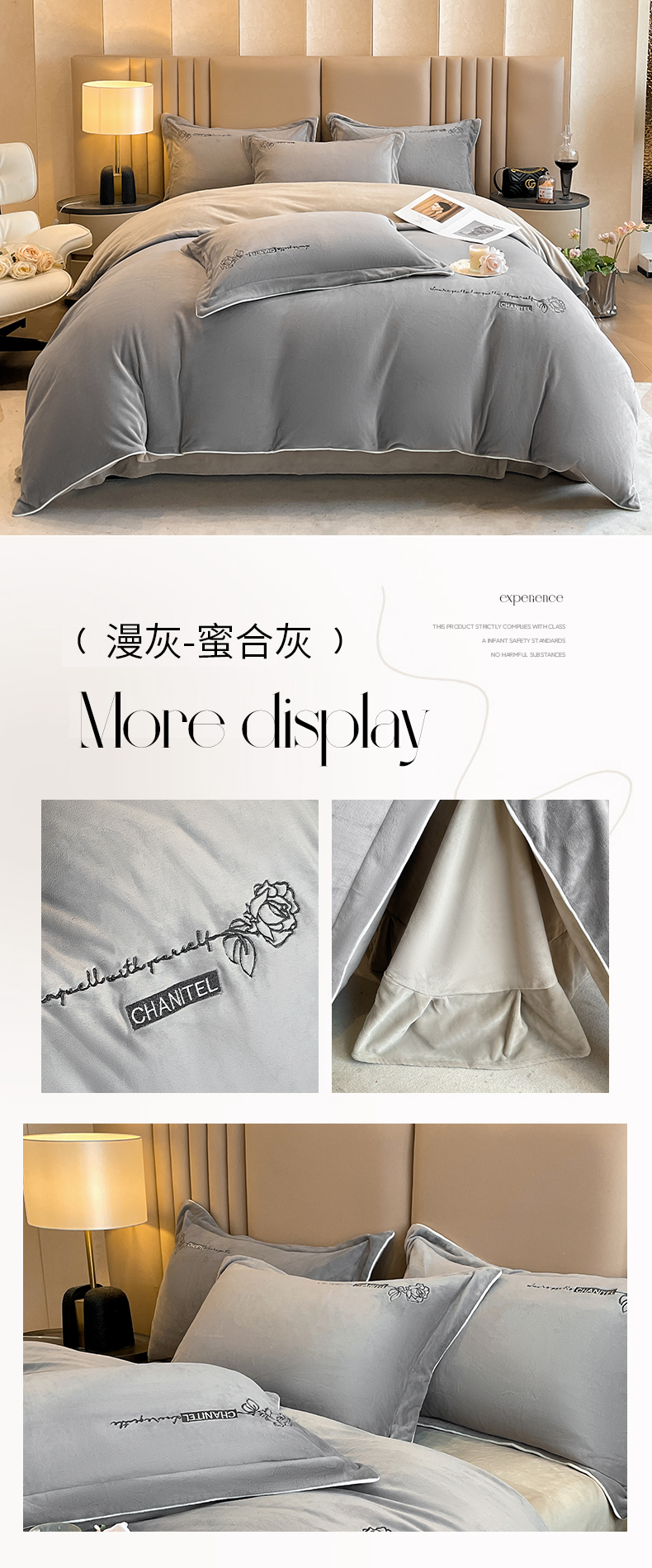 商品名称:嗯呢家纺 2024新款A类高克重全消光婴儿绒刺绣双拼四件套 漫灰-蜜合灰
