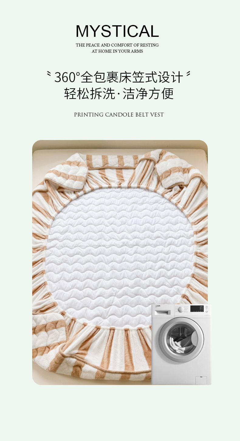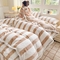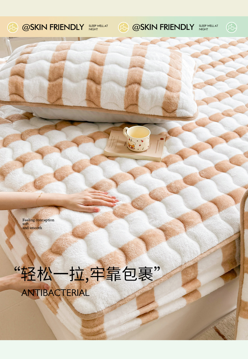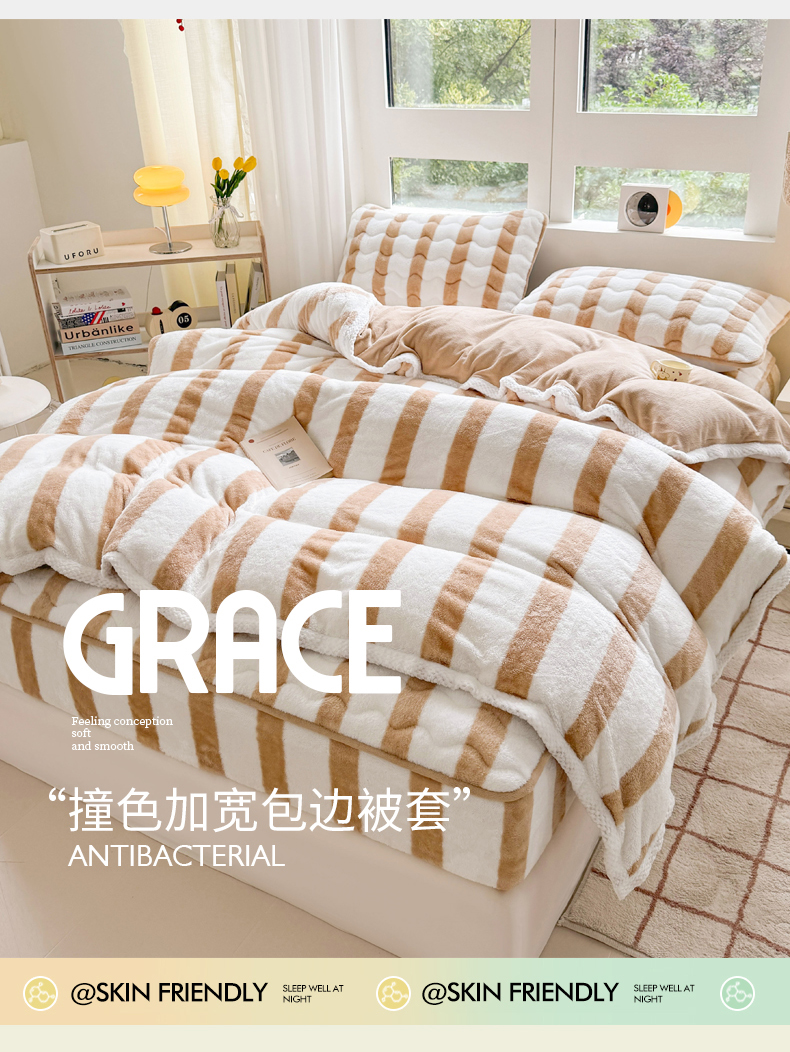 2024秋冬新款A类北极绒加厚夹棉床笠+北极绒宽包边被套四件套(自然光图) 条纹-奶咖