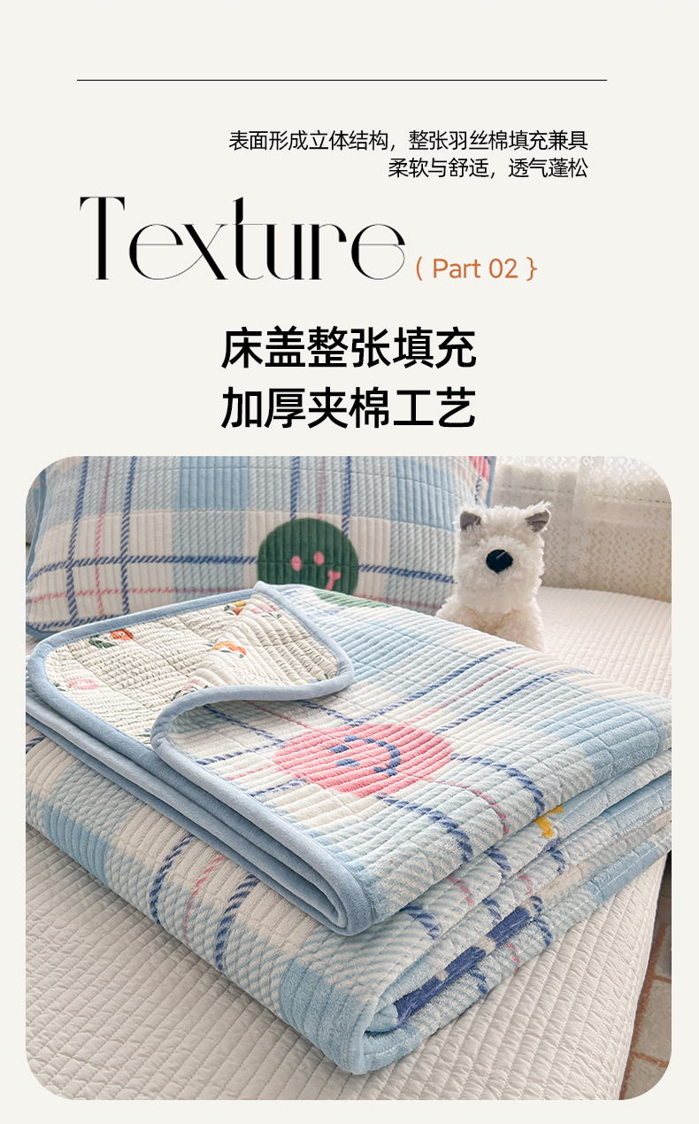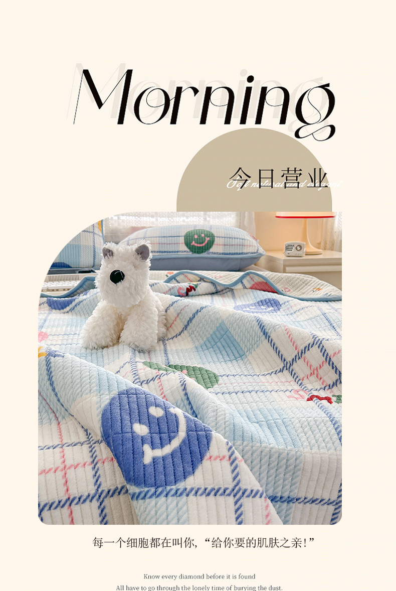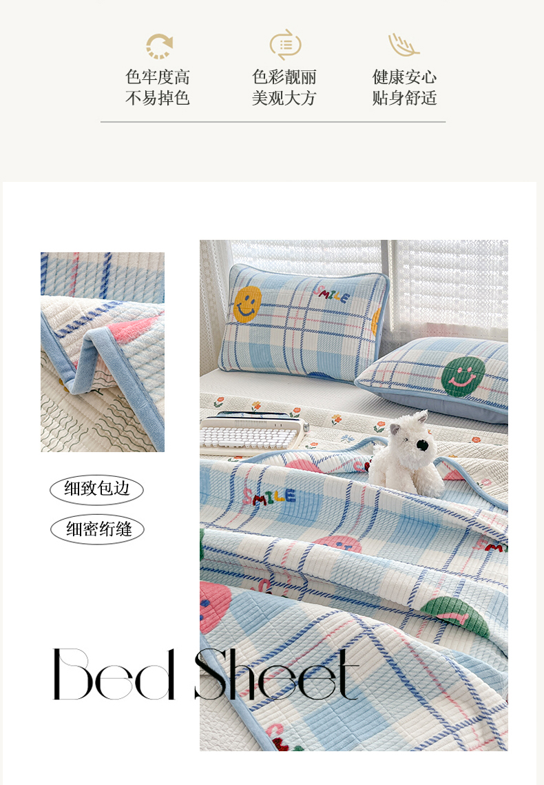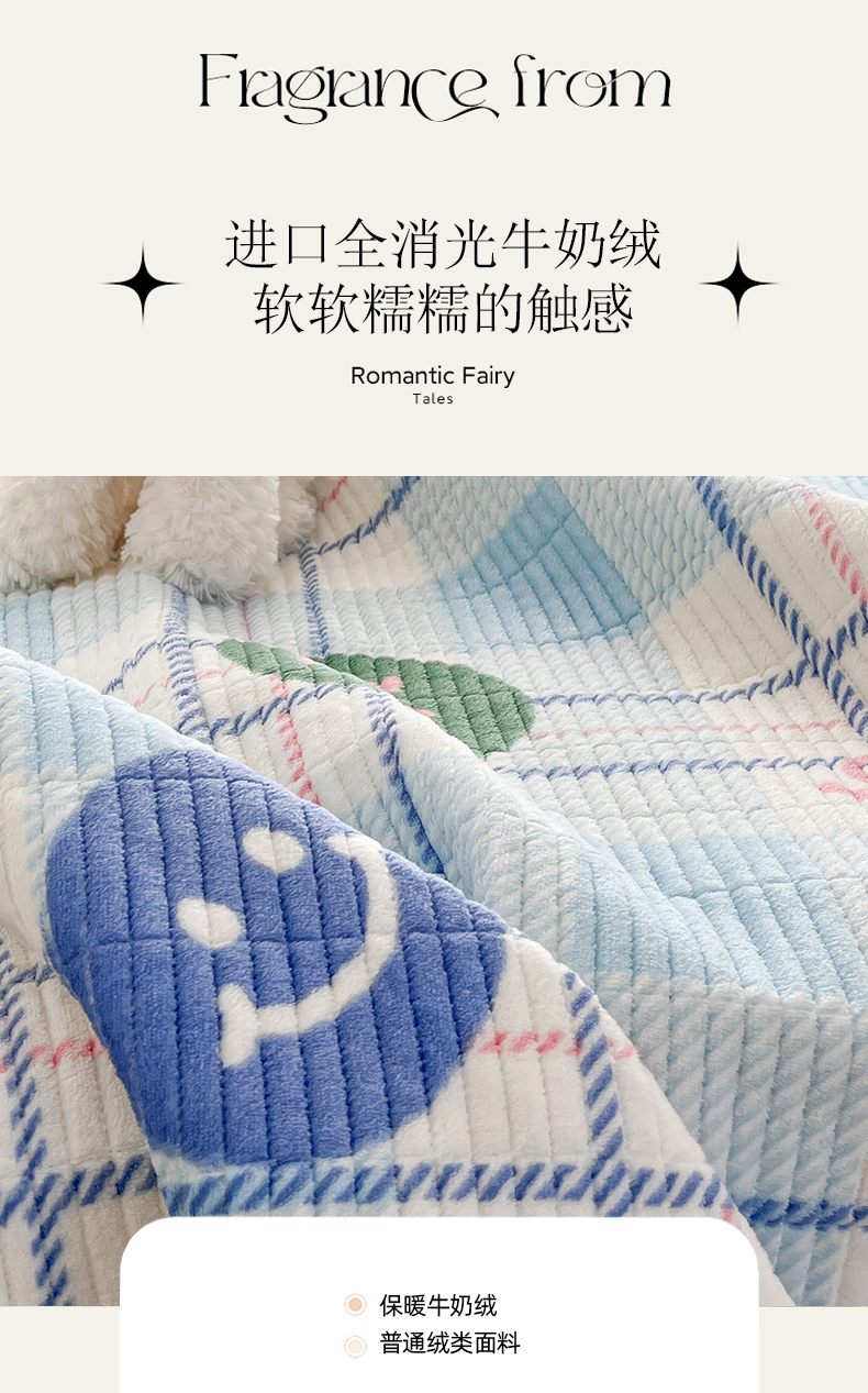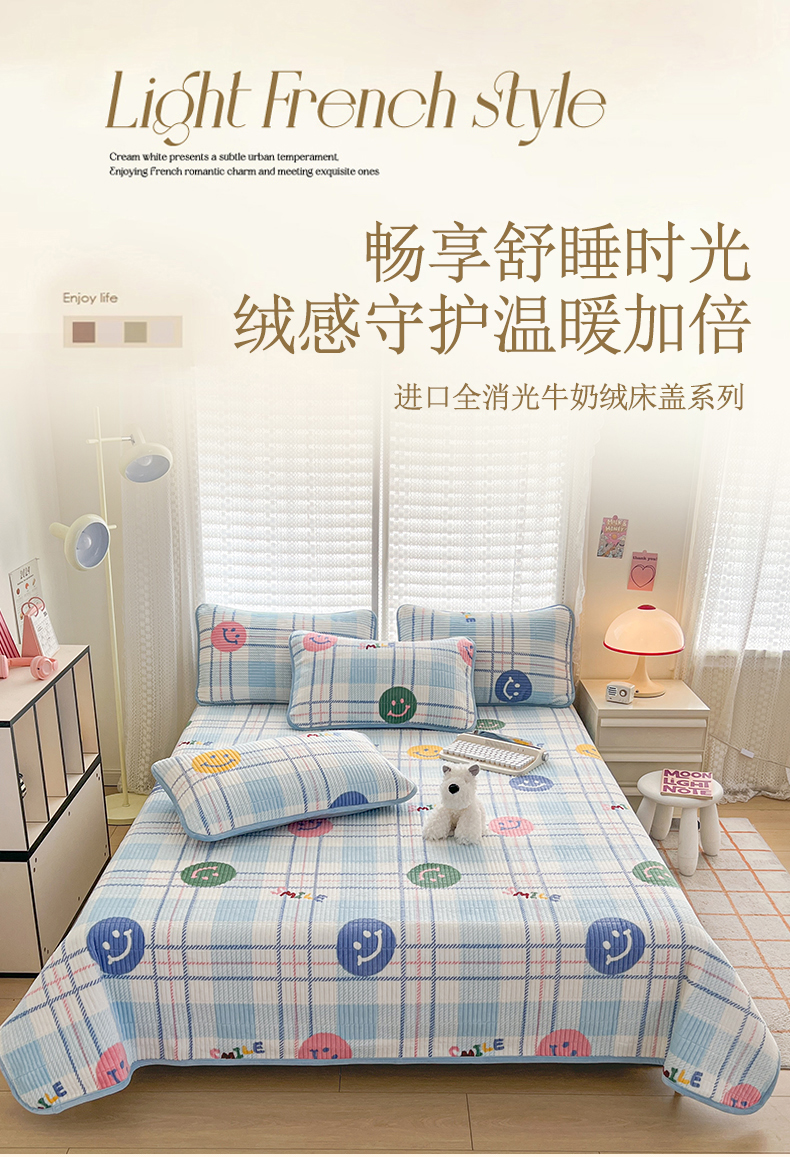 • 91家纺网 家纺一手货源 找家纺 茉夕家纺 2024新款奶芙纯棉印花牛奶绒水洗床盖 奶芙-开心豆