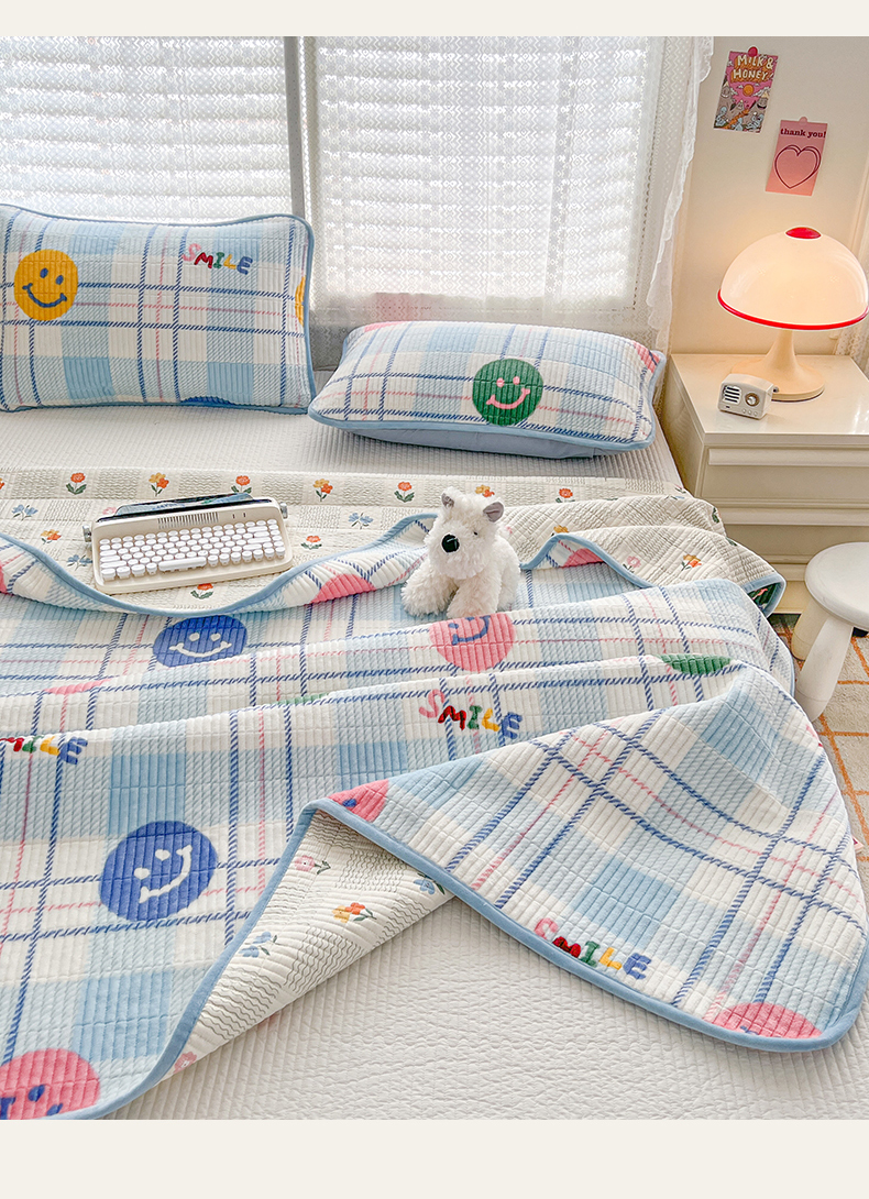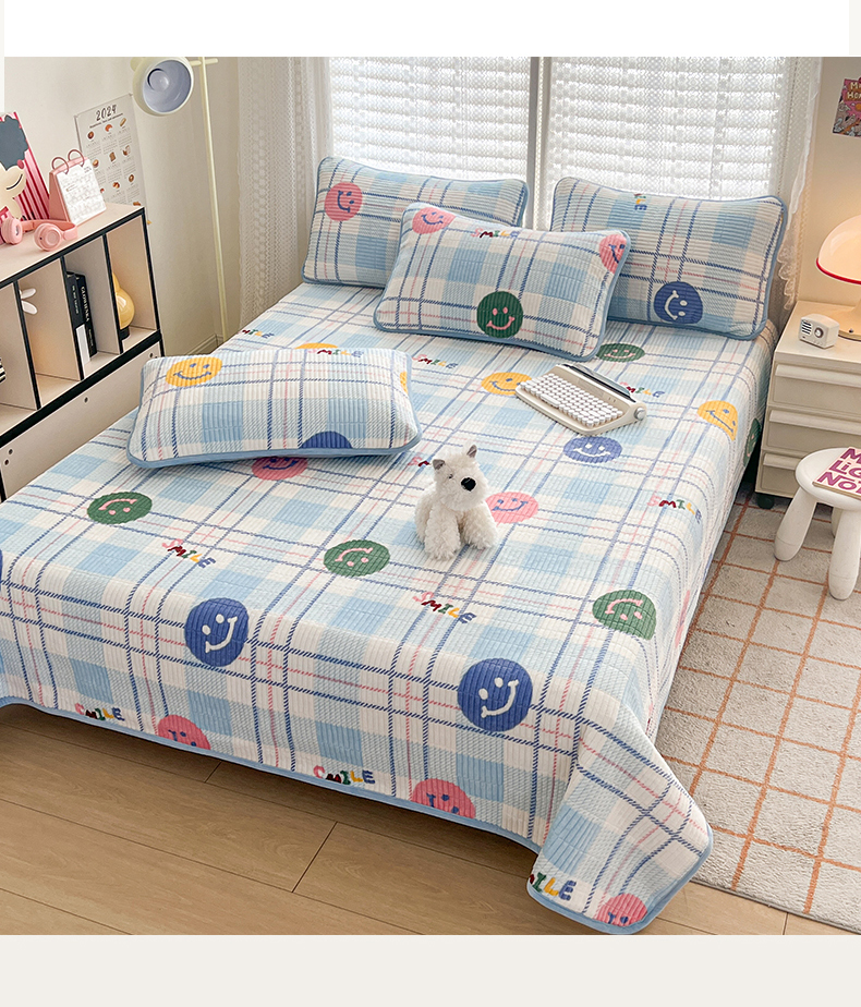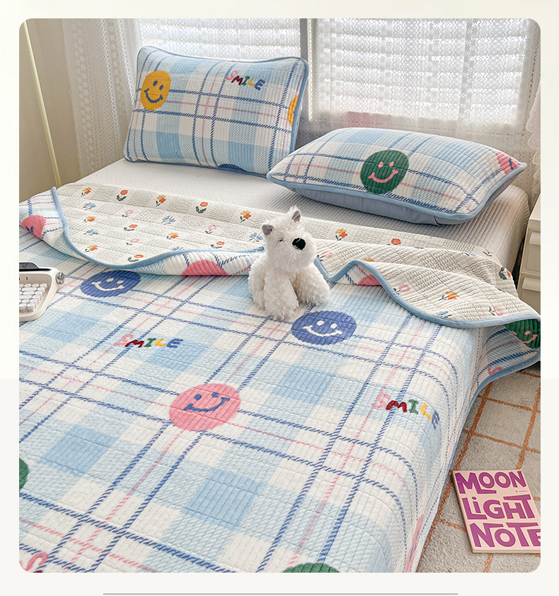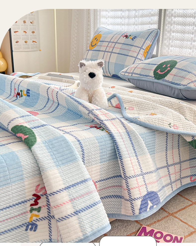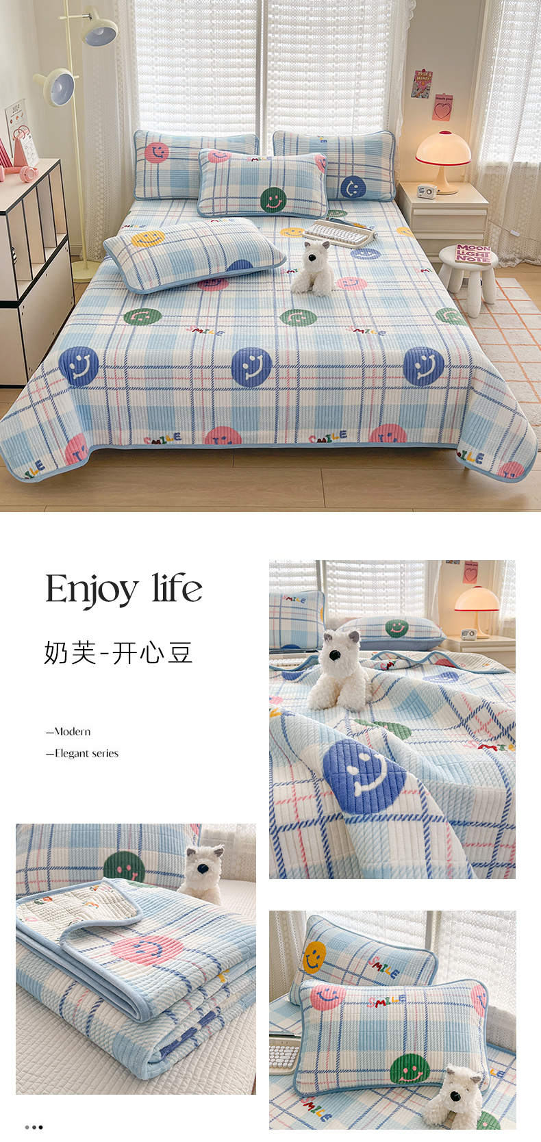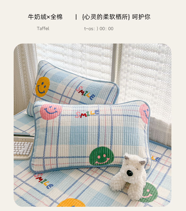 茉夕家纺 2024新款奶芙纯棉印花牛奶绒水洗床盖 奶芙-开心豆