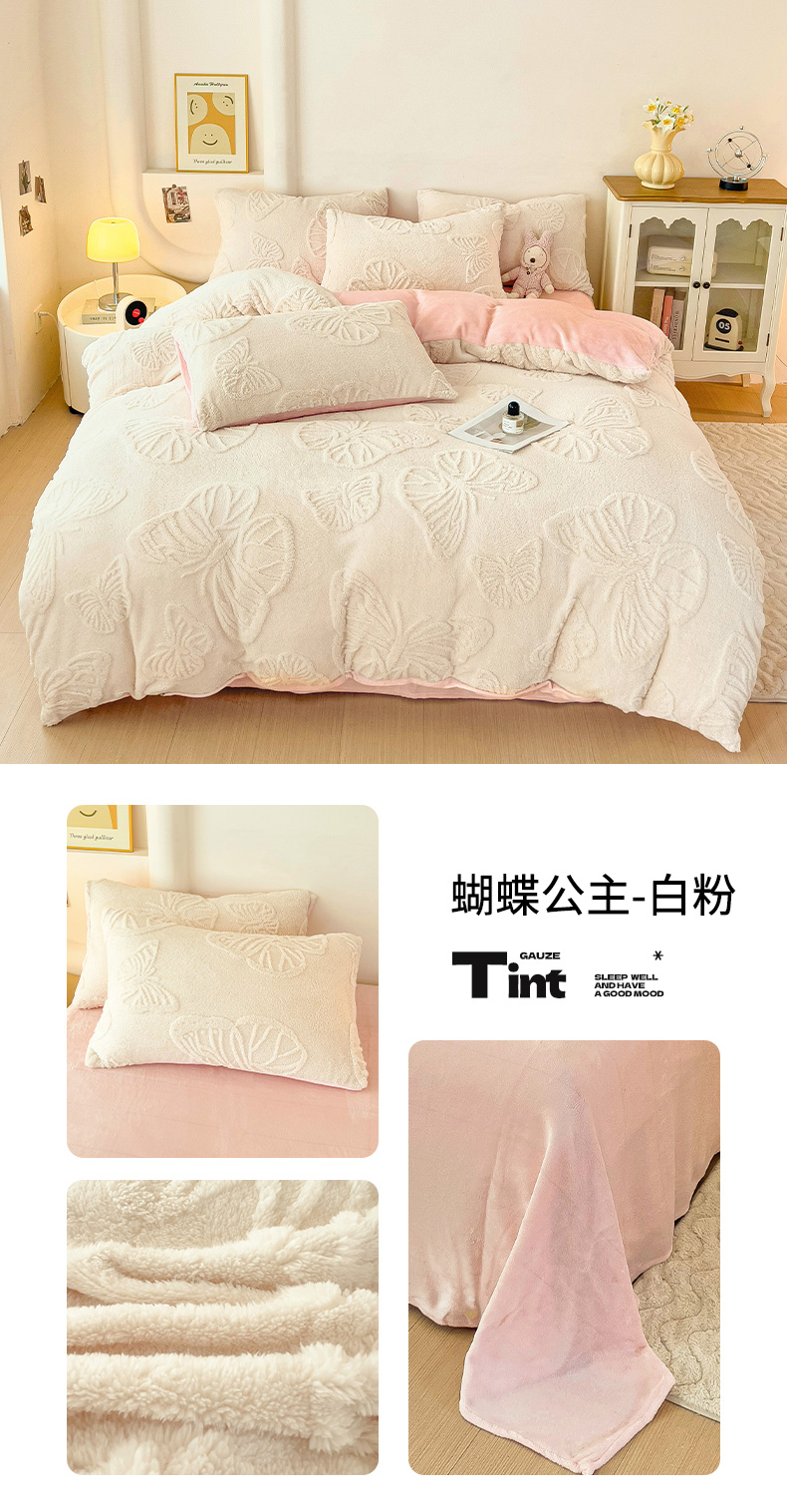 (总)梦之岛 2025新款韩版蝴蝶蕾丝花边牛奶绒四件套-梦语,梦语-玉,梦语-蓝,梦语-奶白,梦语-紫
