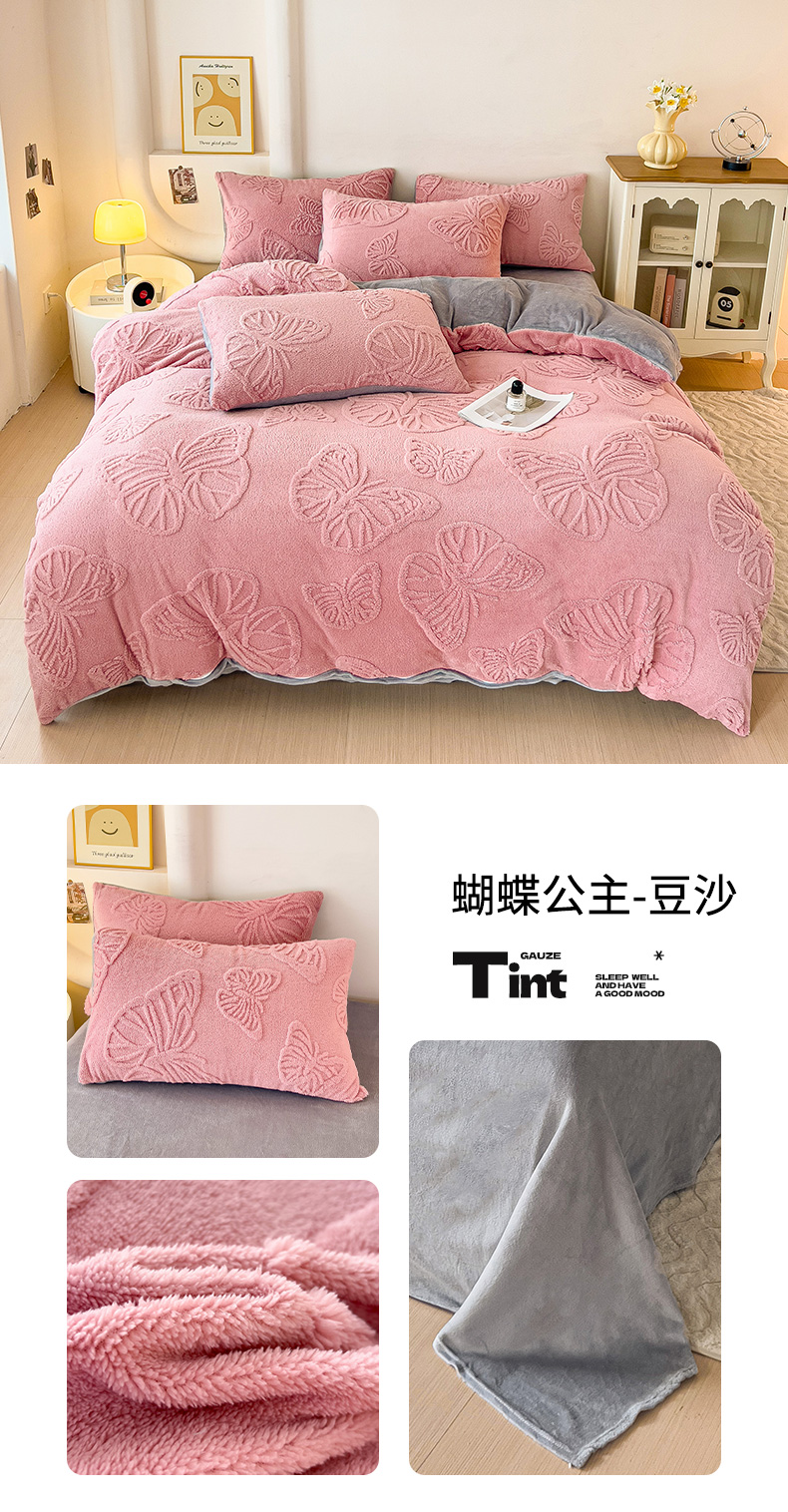 (总)梦之岛 2025新款韩版兔毛绒小泡泡牛奶绒四件套,泡芙公主-绿,泡芙公主-奶黄,泡芙公主-玉