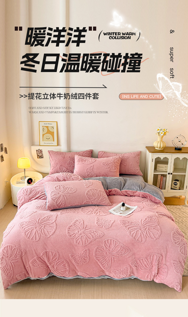 (总)梦之岛 2024新款高克重提花雕花牛奶绒四件套