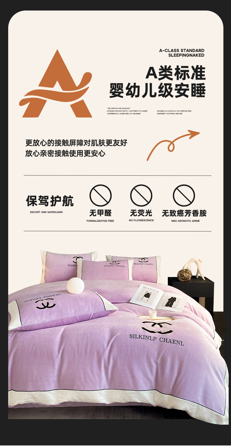 商品名称:丝印良品 2024秋冬新款小香风香奈系列牛奶绒四件套薰衣紫