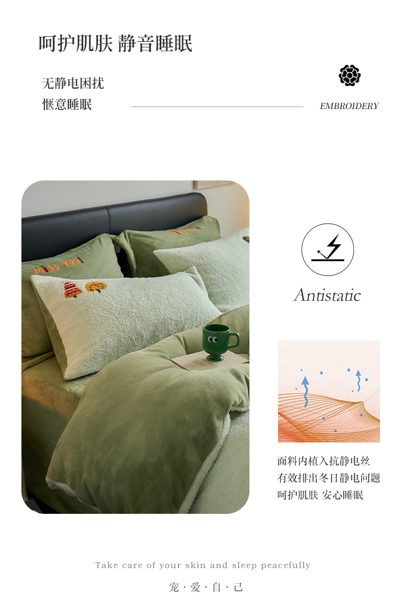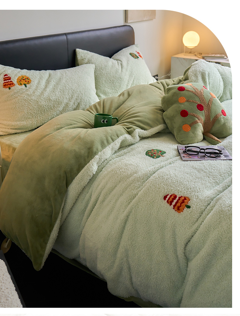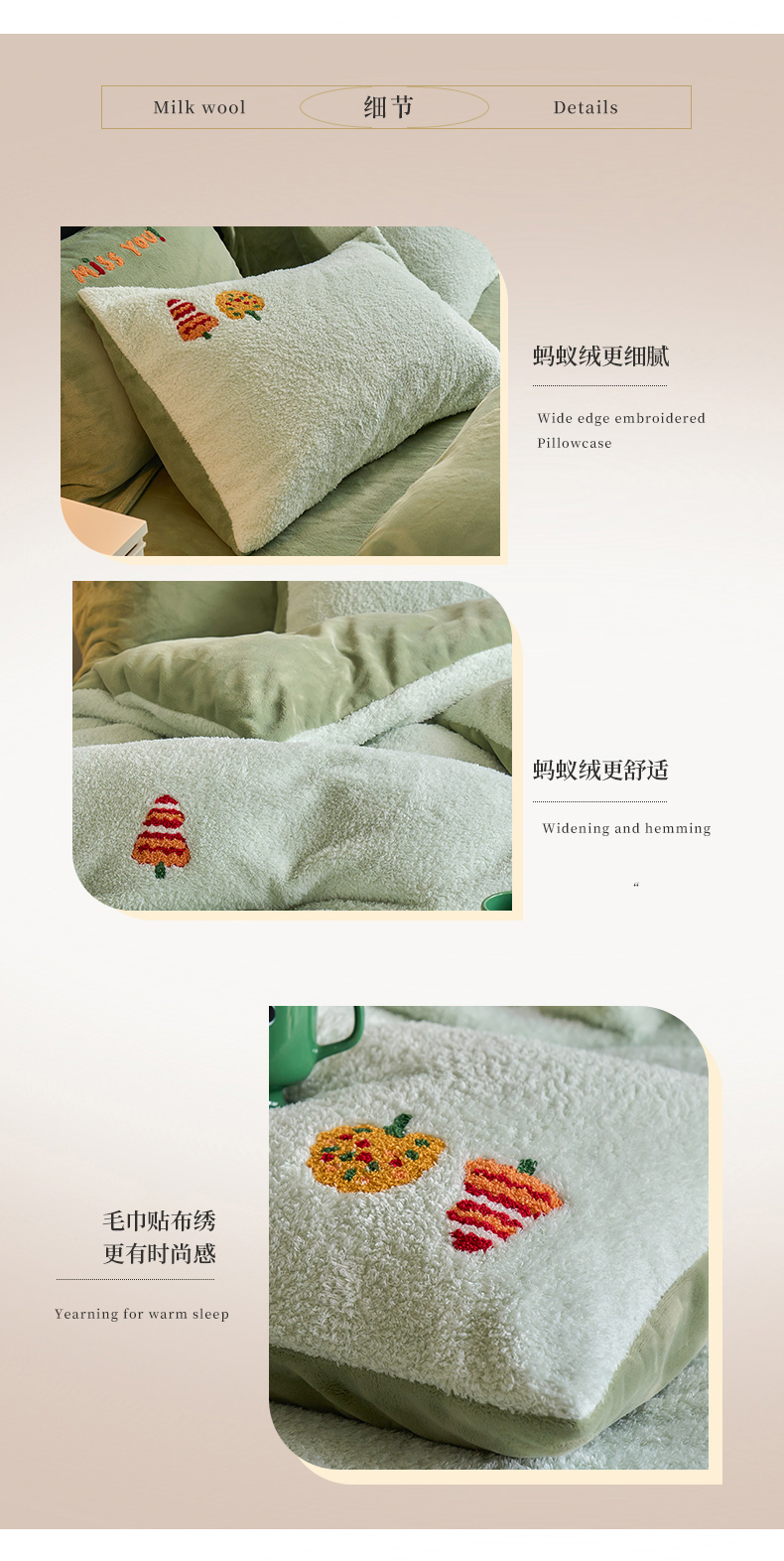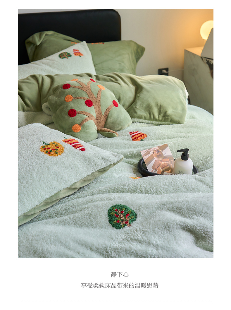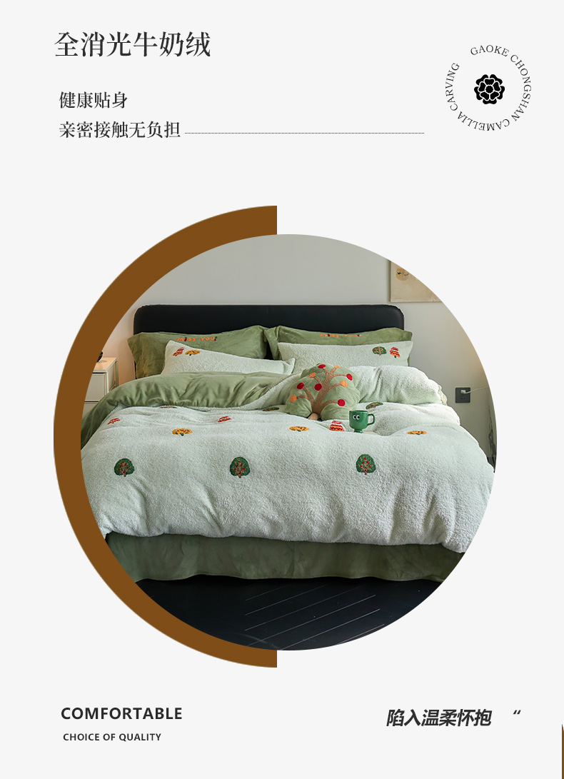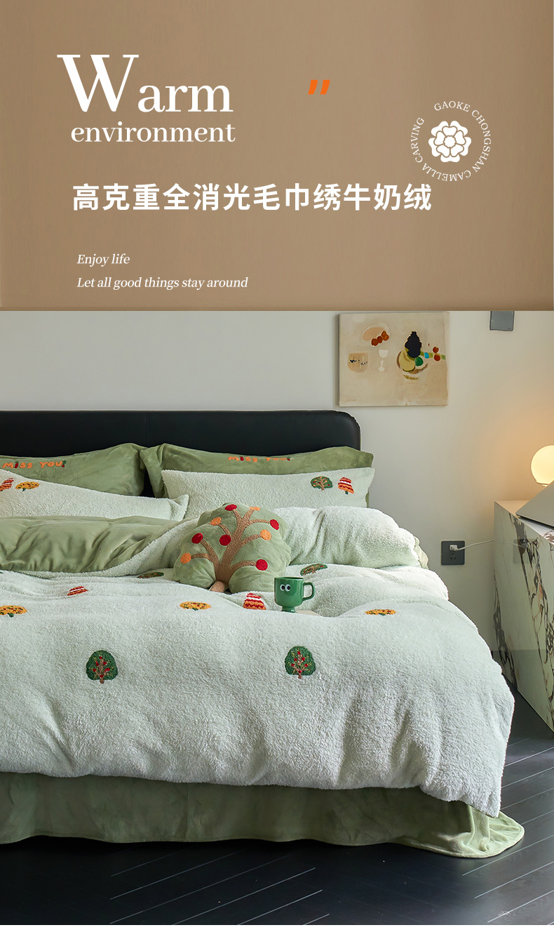 当前位置: 91家纺网 > 商品网购 > 床品套件 > 四件套 > 牛奶绒四件套 > 沐晴 2024秋冬新款高克重蚂蚁牛奶绒卡通毛巾绣花四件套 森林与鹿