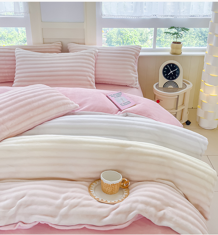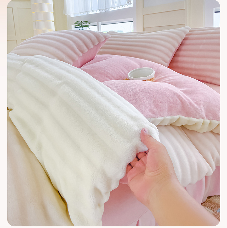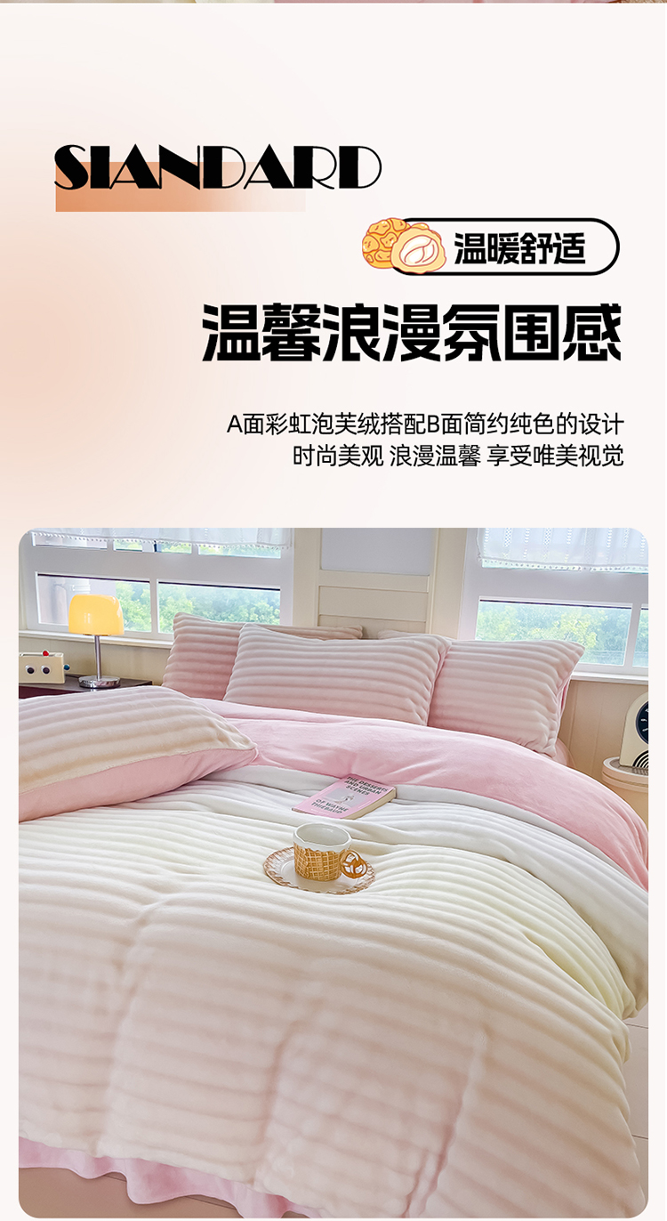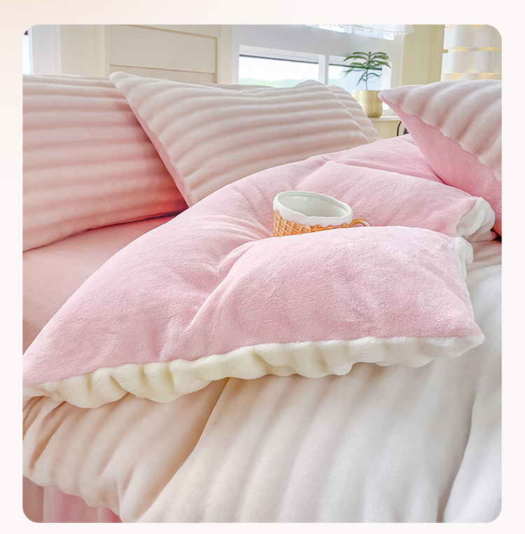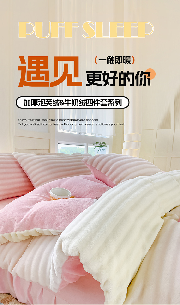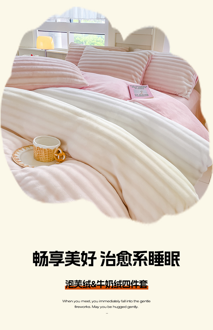 言熙居2024新款-A面泡芙绒B面全消光8到9斤牛奶绒三四件套 泡芙-粉白