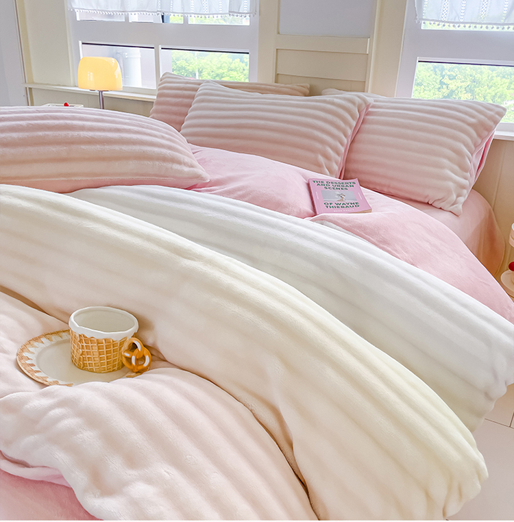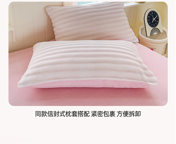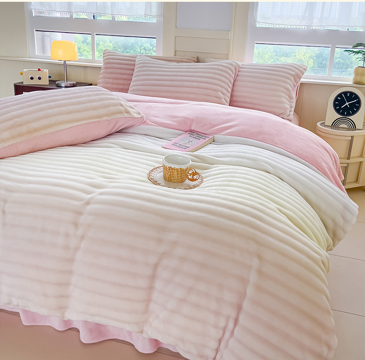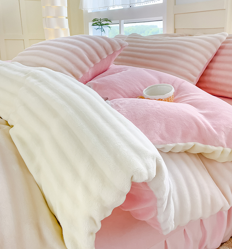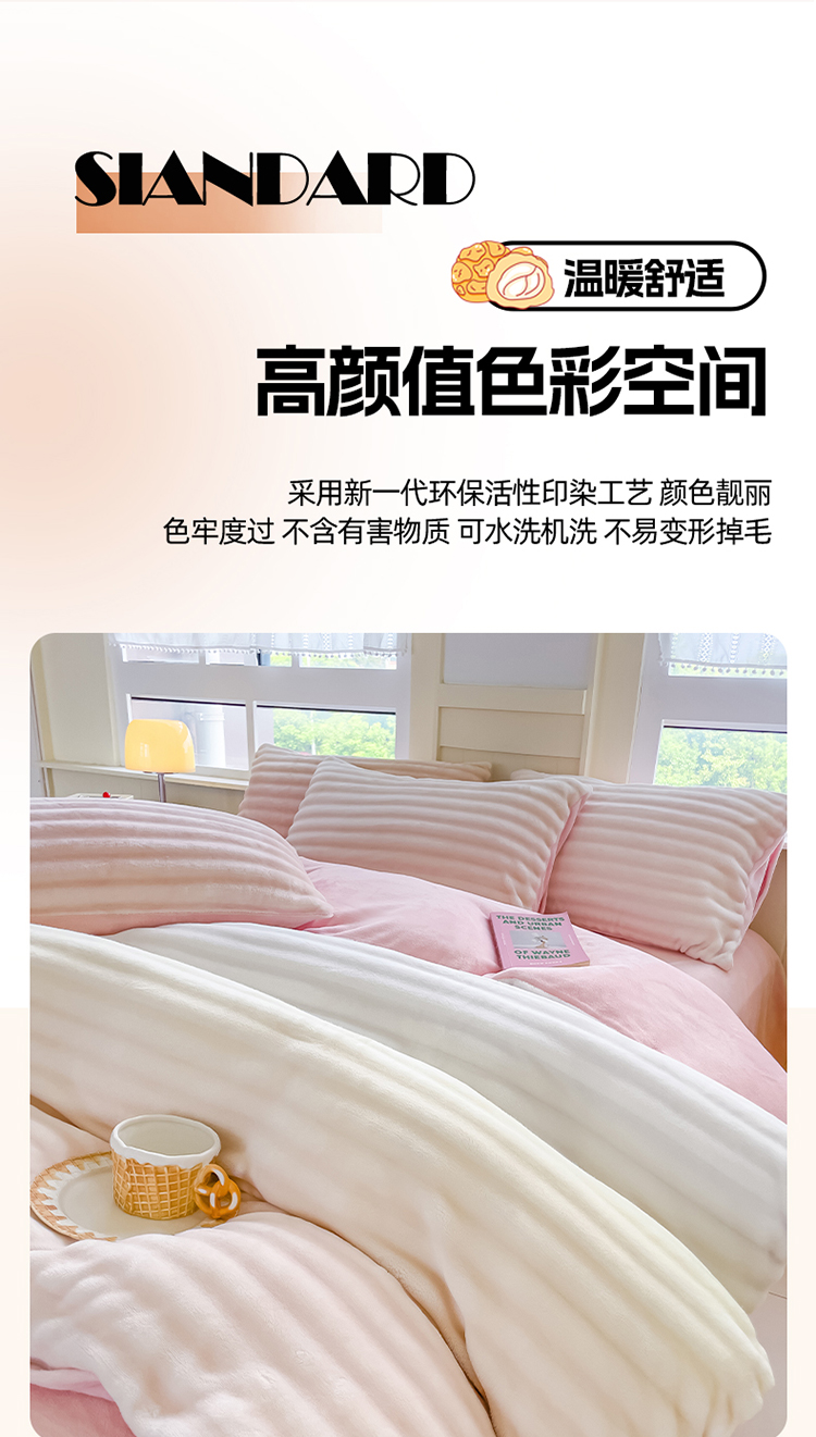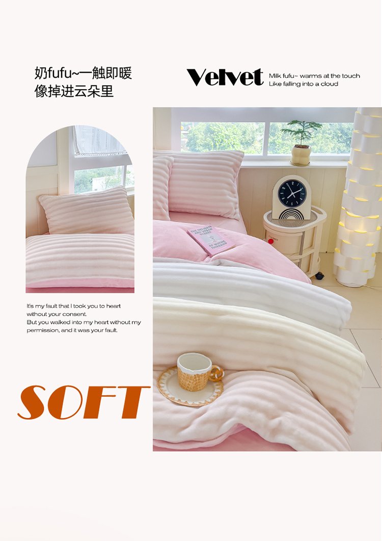 言熙居2024新款-A面泡芙绒B面全消光8到9斤牛奶绒三四件套 泡芙-粉白