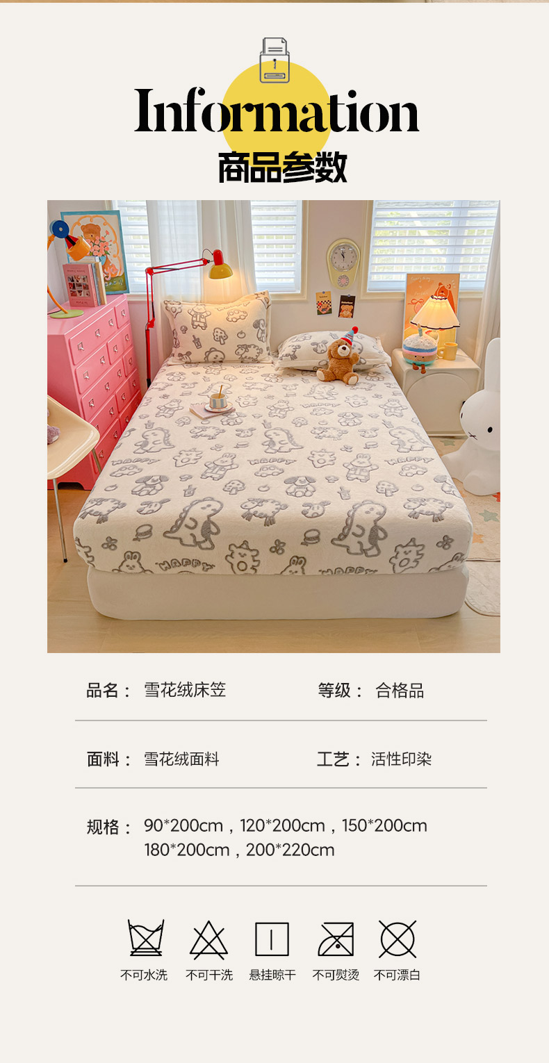 当前位置: 91家纺网 > 商品网购 > 床上用品 > 床笠 > 韩巢家纺 2024新款加厚雪花绒卡通印花保暖床笠三件套 灰色轨迹