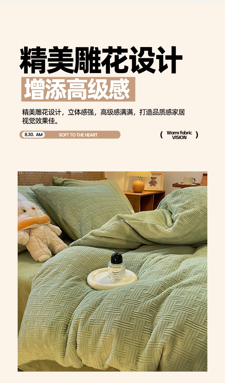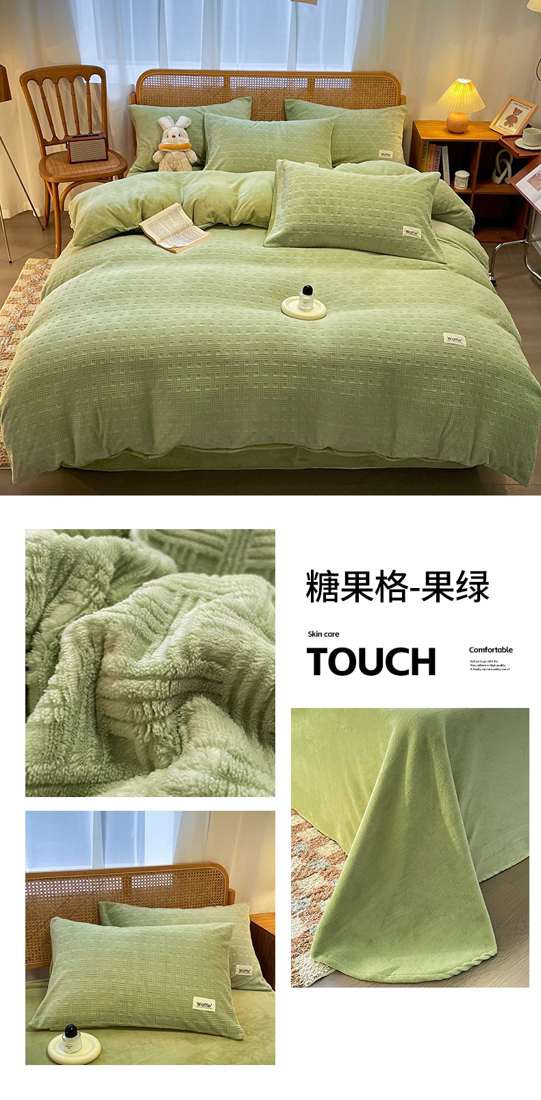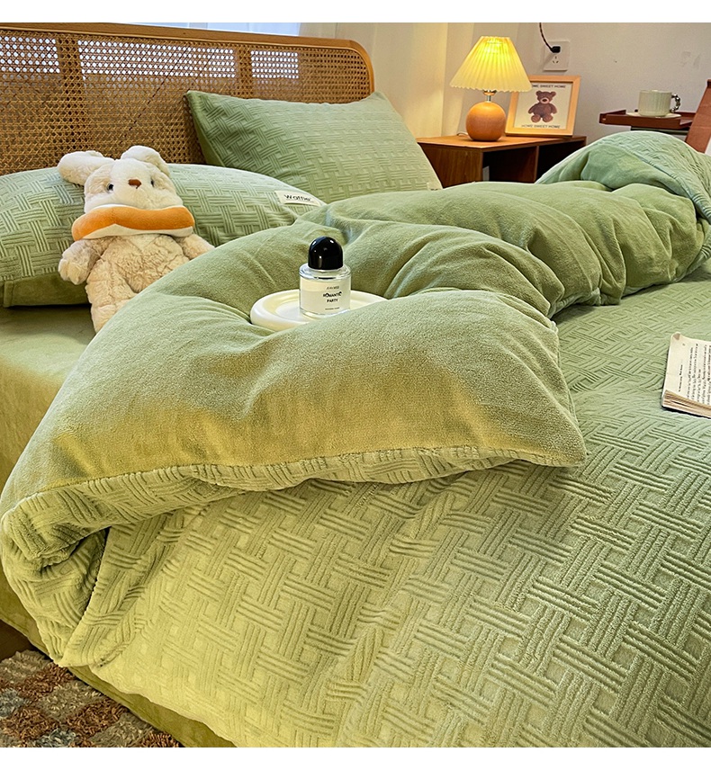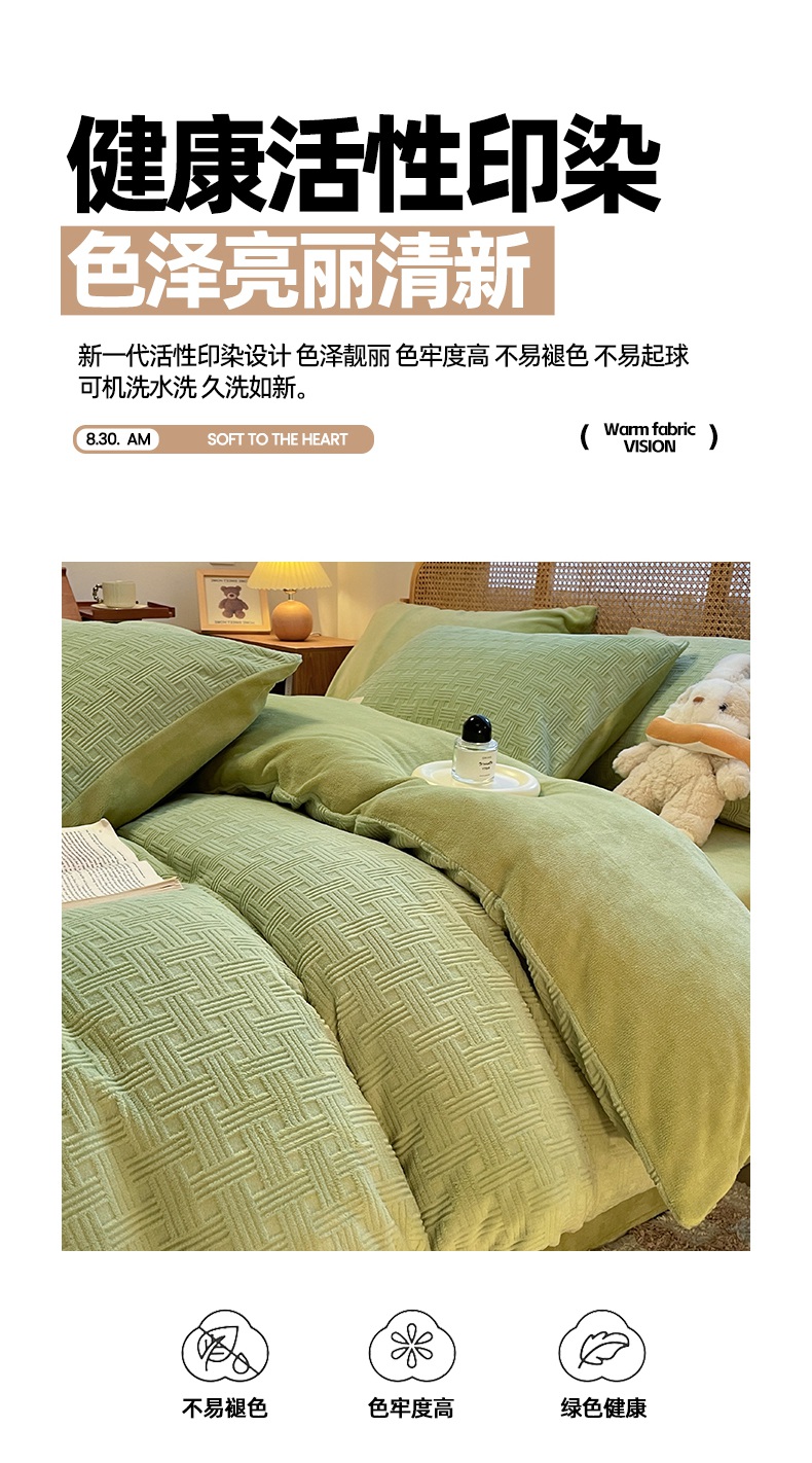 当前位置: 91家纺网 > 商品网购 > 床品套件 > 四件套 > 牛奶绒四件套 > 莱茵家居 2024新款A类高克重雕花牛奶绒四件套-糖果格 糖果格-果绿
