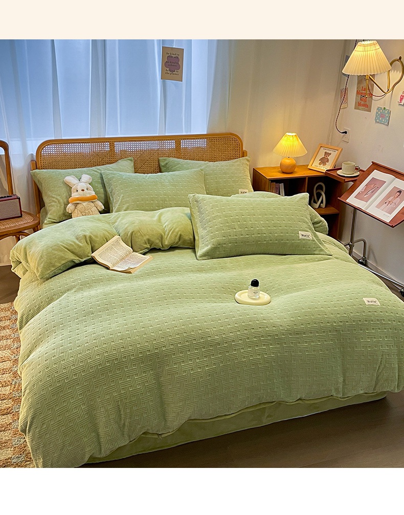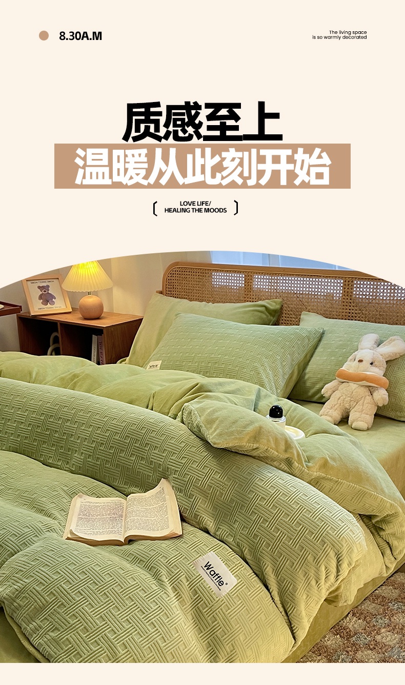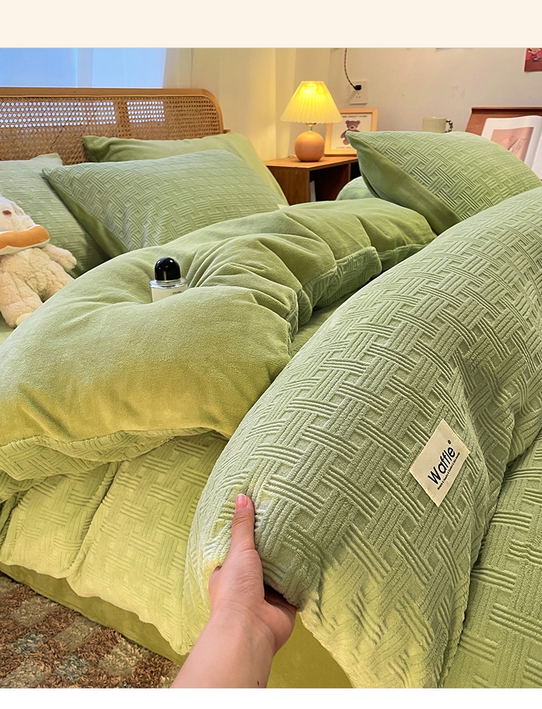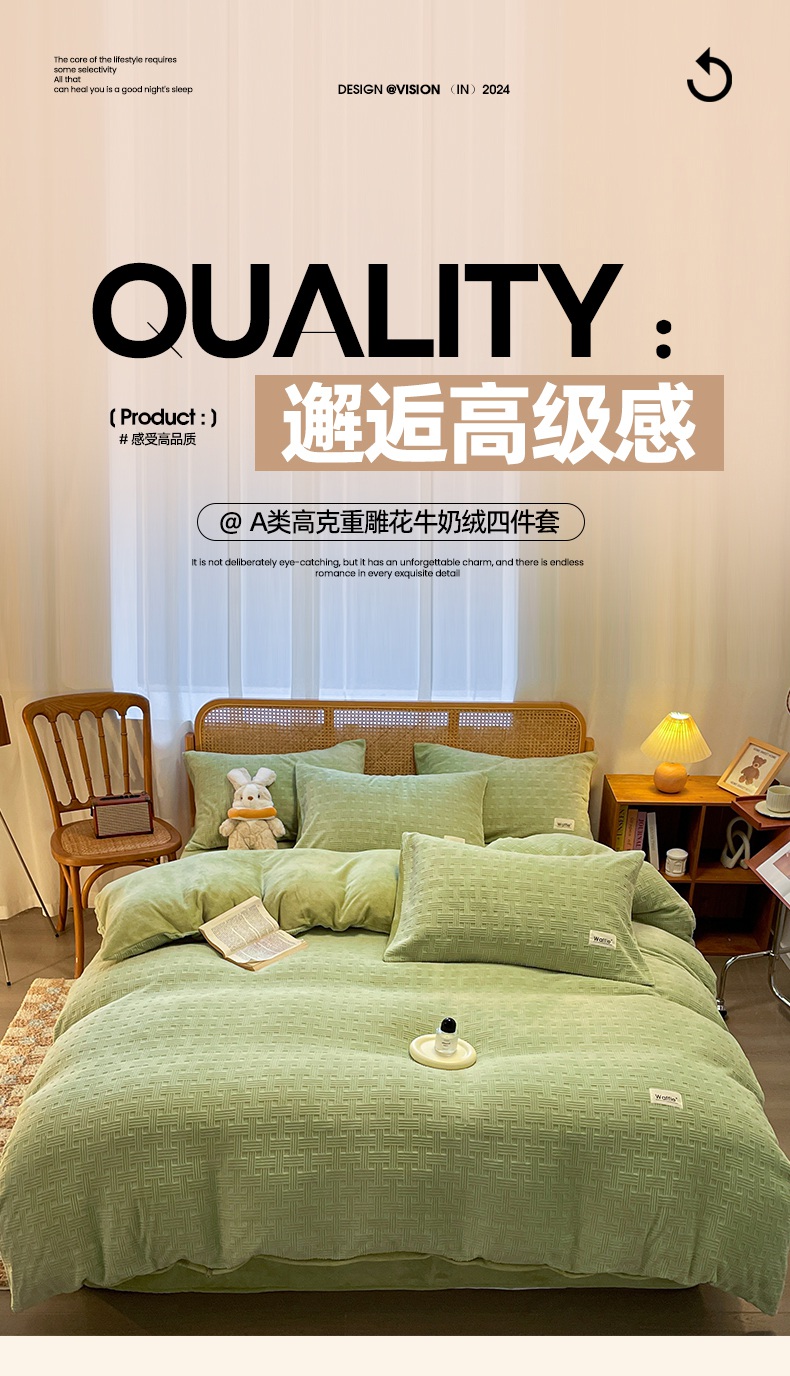 当前位置: 91家纺网 > 商品网购 > 床品套件 > 四件套 > 牛奶绒四件套 > 莱茵家居 2024新款A类高克重雕花牛奶绒四件套-糖果格 糖果格-果绿