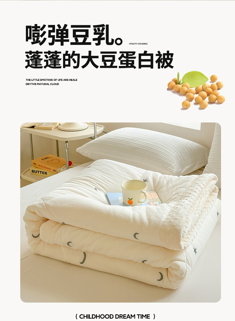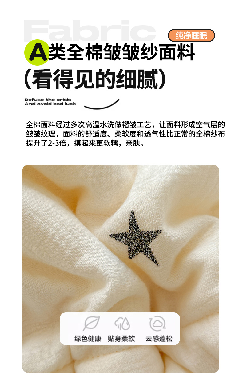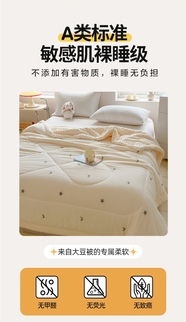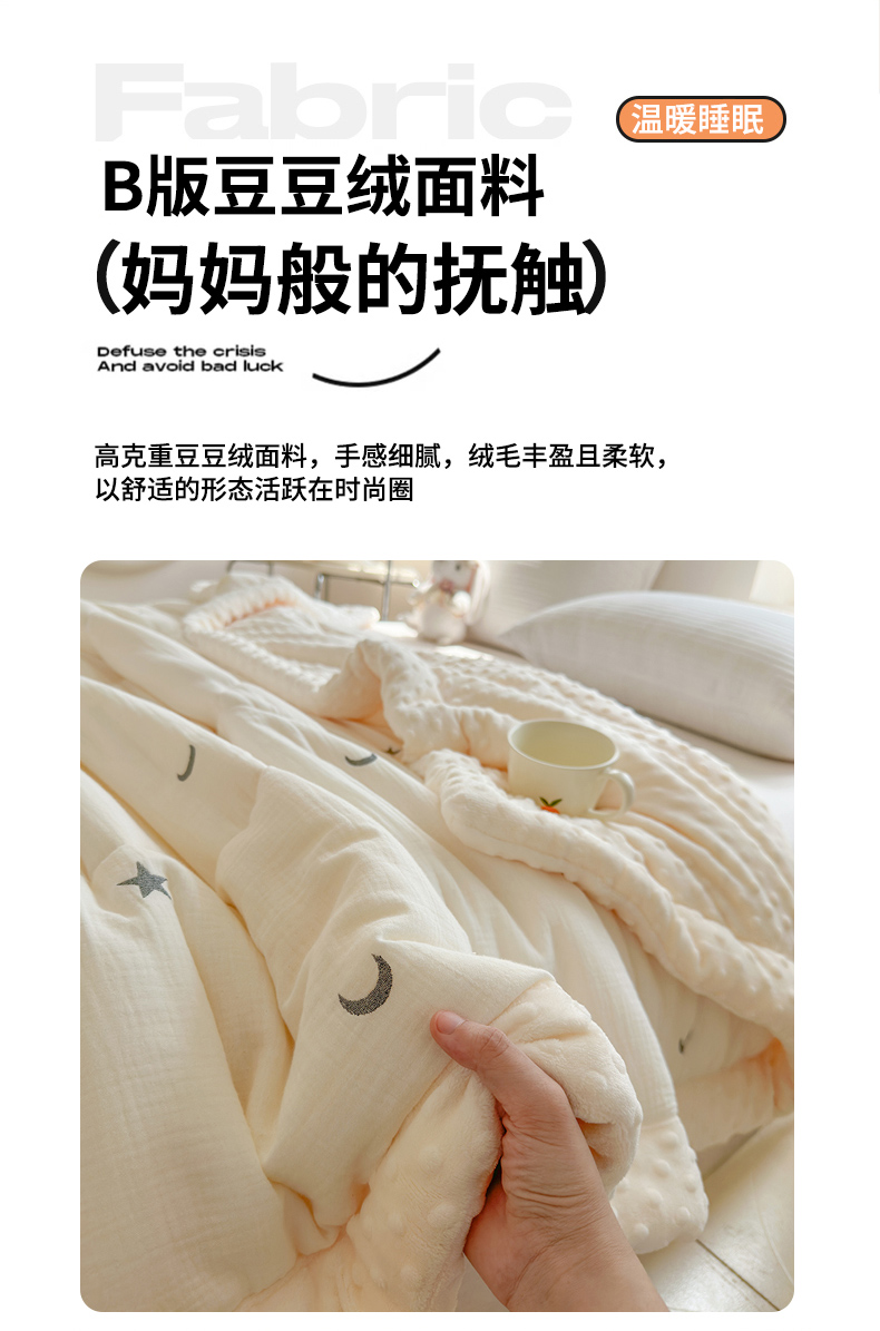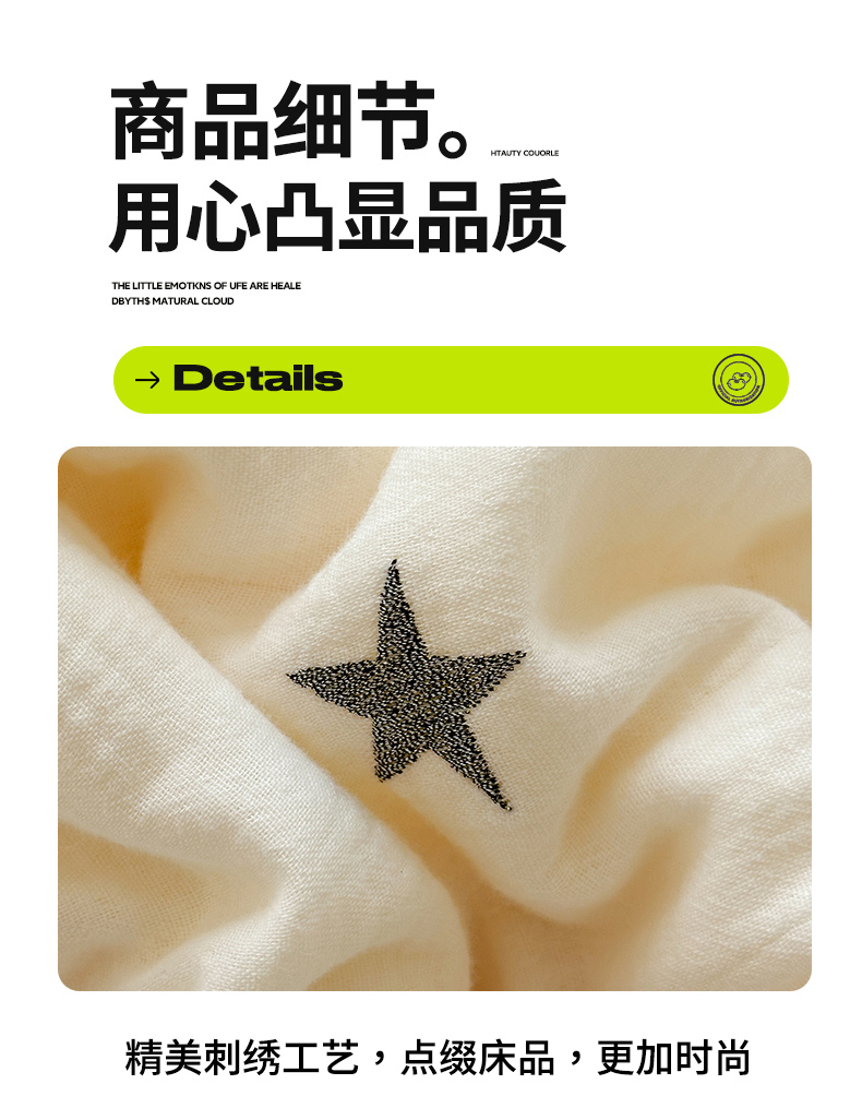 商品名称:木楌家居 2025新款全棉A类皱皱纱刺绣手包边豆豆被 星柔