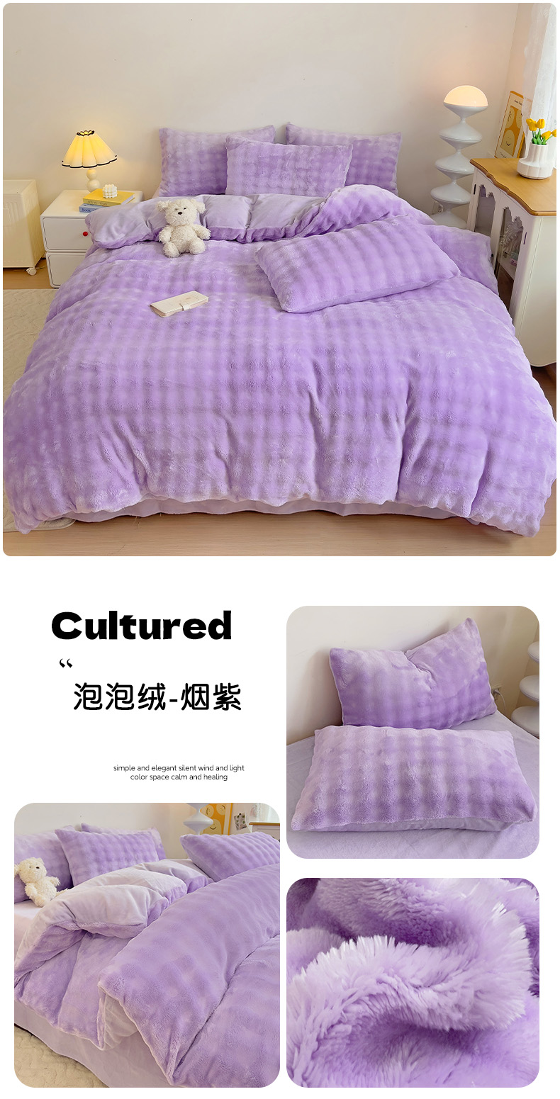商品名称:金梦拉家纺 2024直播爆款牛奶绒大泡泡渐变纯色四件套 泡泡绒-烟紫