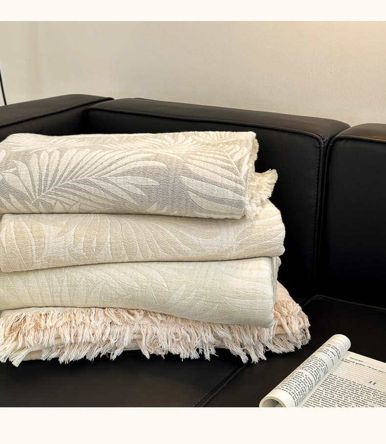 商品名称:淑女公社家纺 2024新款色织全棉双股提花流苏盖毯 雾咖