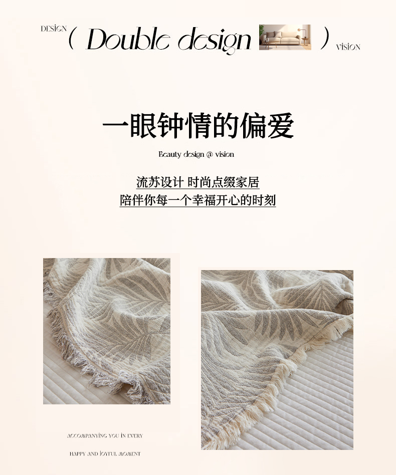 淑女公社家纺 2024新款色织全棉双股提花流苏盖毯 雾咖