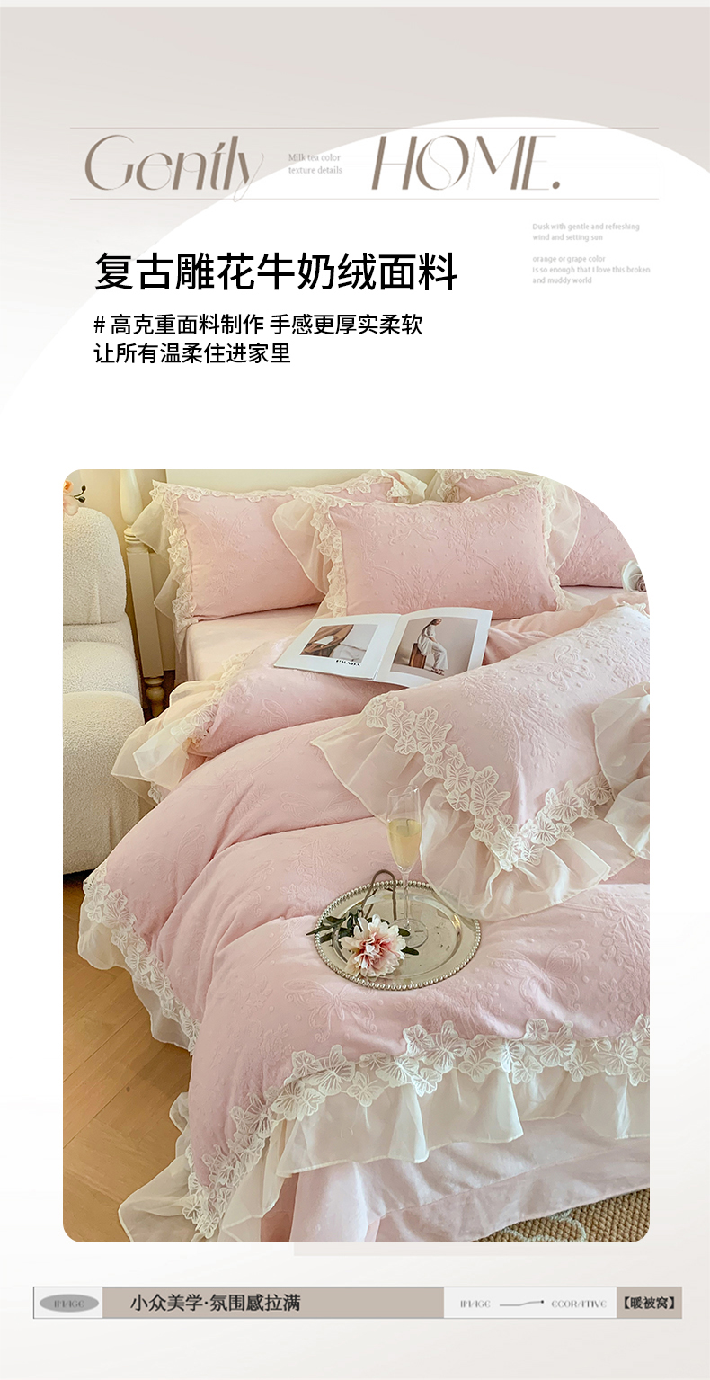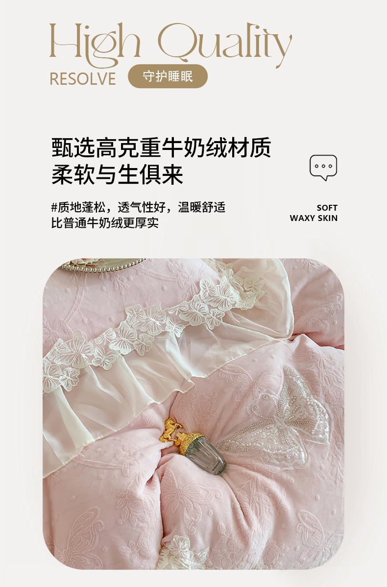 (总)吾欢心 2025新款法式蕾丝款加厚皮草绒四件套,艾莉薇,蝴蝶结,美拉德,梦幻蝶舞,莫奈香颂,索菲亚