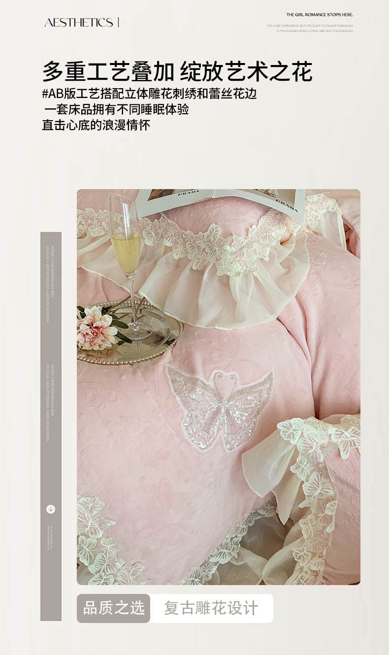 (总)吾欢心 2025新款糯小棉立体蝴蝶花边四件套-蝶恋花系列,蝶恋花白,蝶恋花粉,蝶恋花黄,蝶恋花咖,蝶恋花蓝,蝶恋花绿,蝶恋花紫