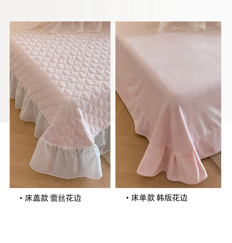 (总)吾欢心 2025新款公主风雪纺边四季通用夹棉床盖,床盖白,床盖粉,床盖黄,床盖咖,床盖绿,床盖抹茶绿,床盖紫