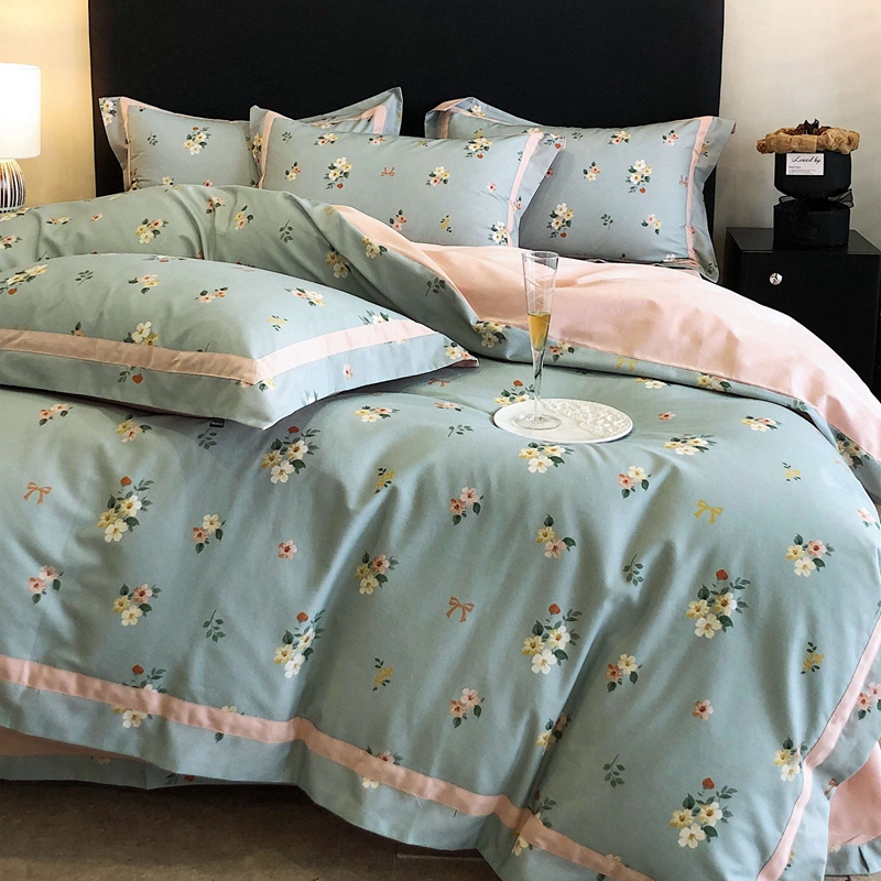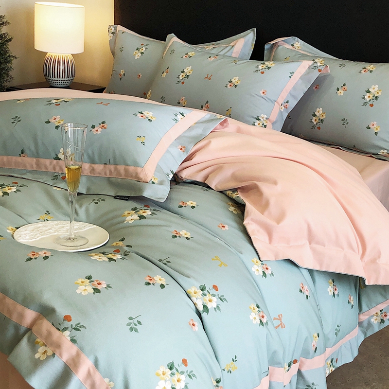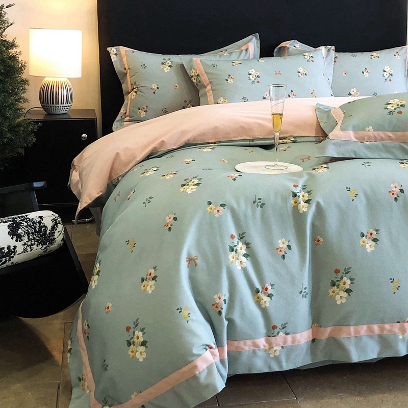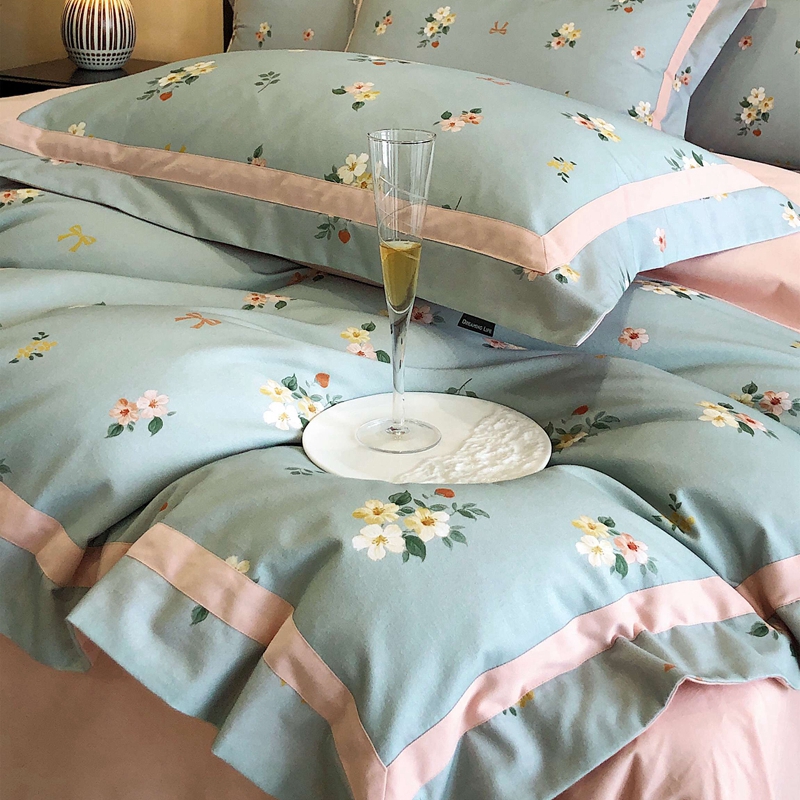 商品名称:薏思家纺 2025新款全棉生态磨毛数码印花高奢撞色四件套-繁花系列Blossoms 花季蓝