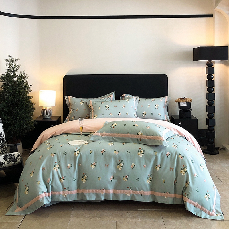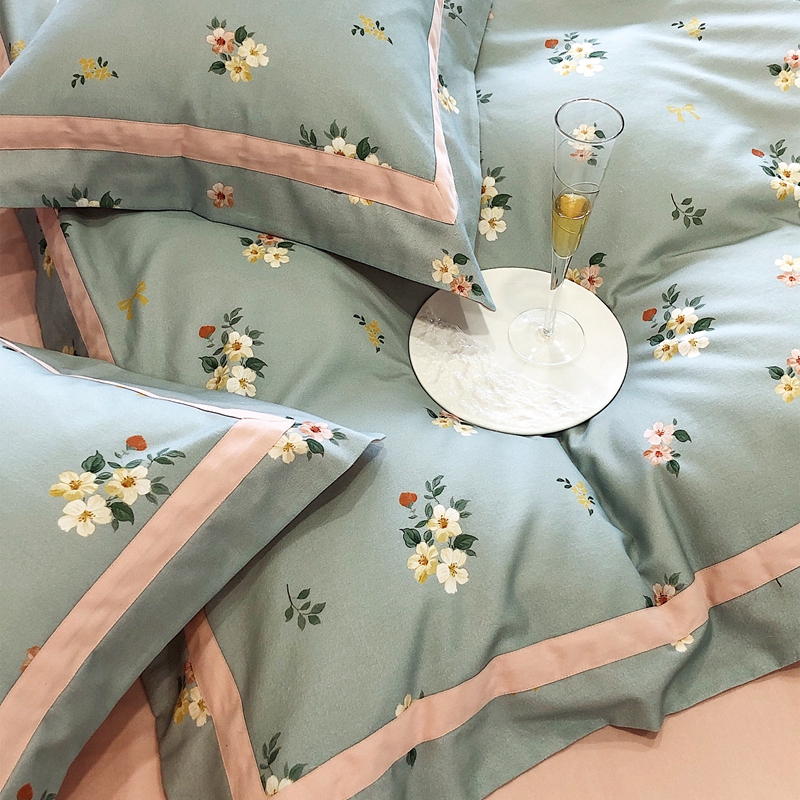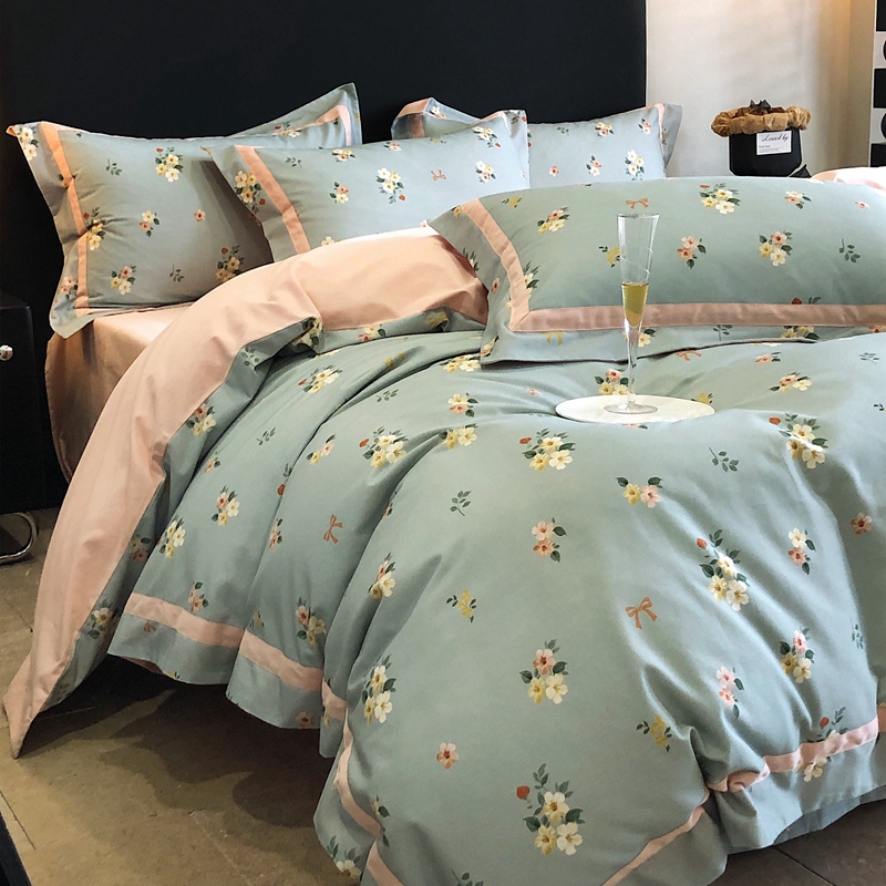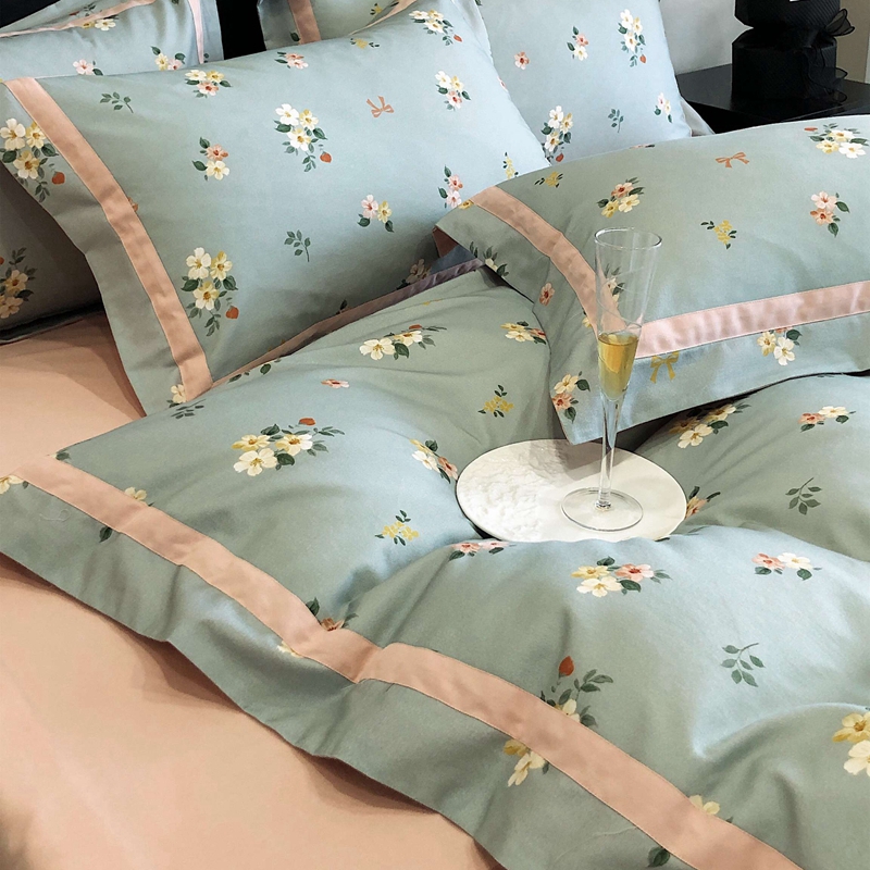 (总)薏思家纺 2025新款全棉100支数码印花生态磨毛轻奢款四件套-花边系列,橘子海,向云端,寻野-绿