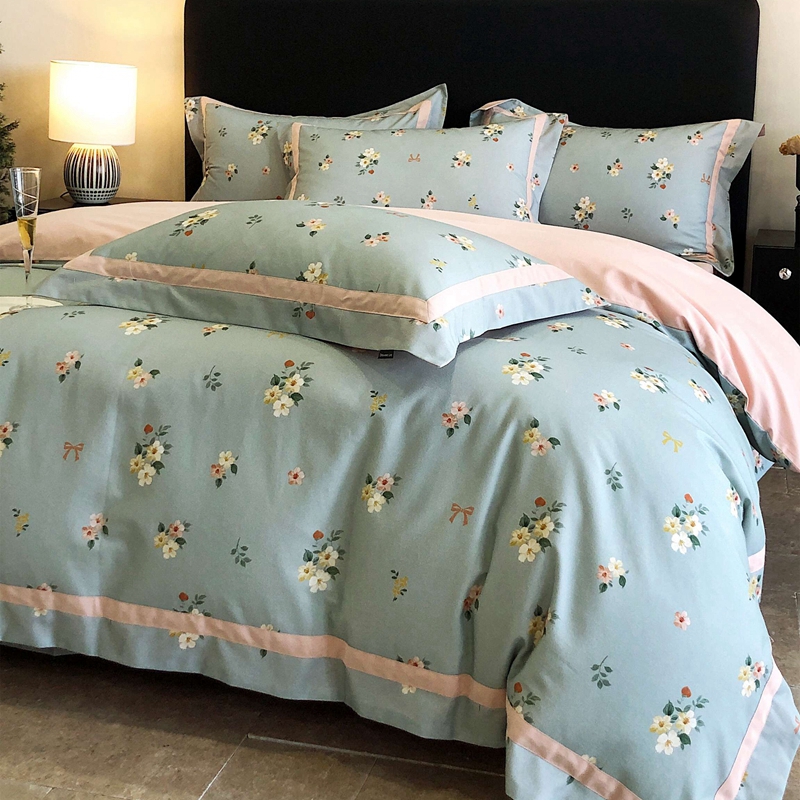 薏思家纺 2025新款全棉生态磨毛数码印花高奢撞色四件套-繁花系列Blossoms 花季蓝